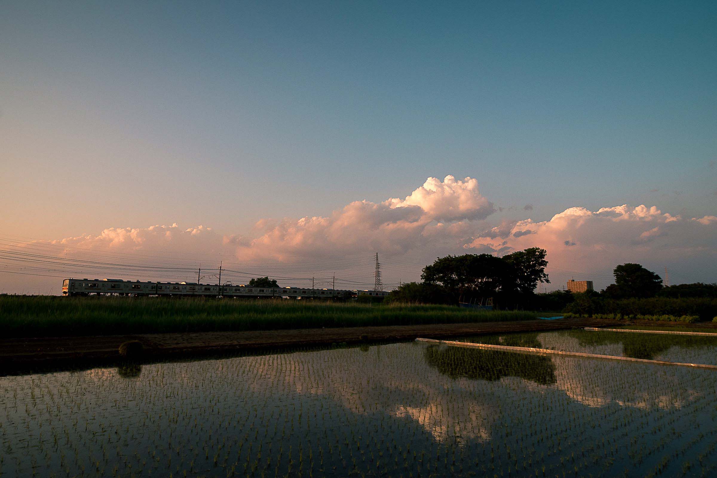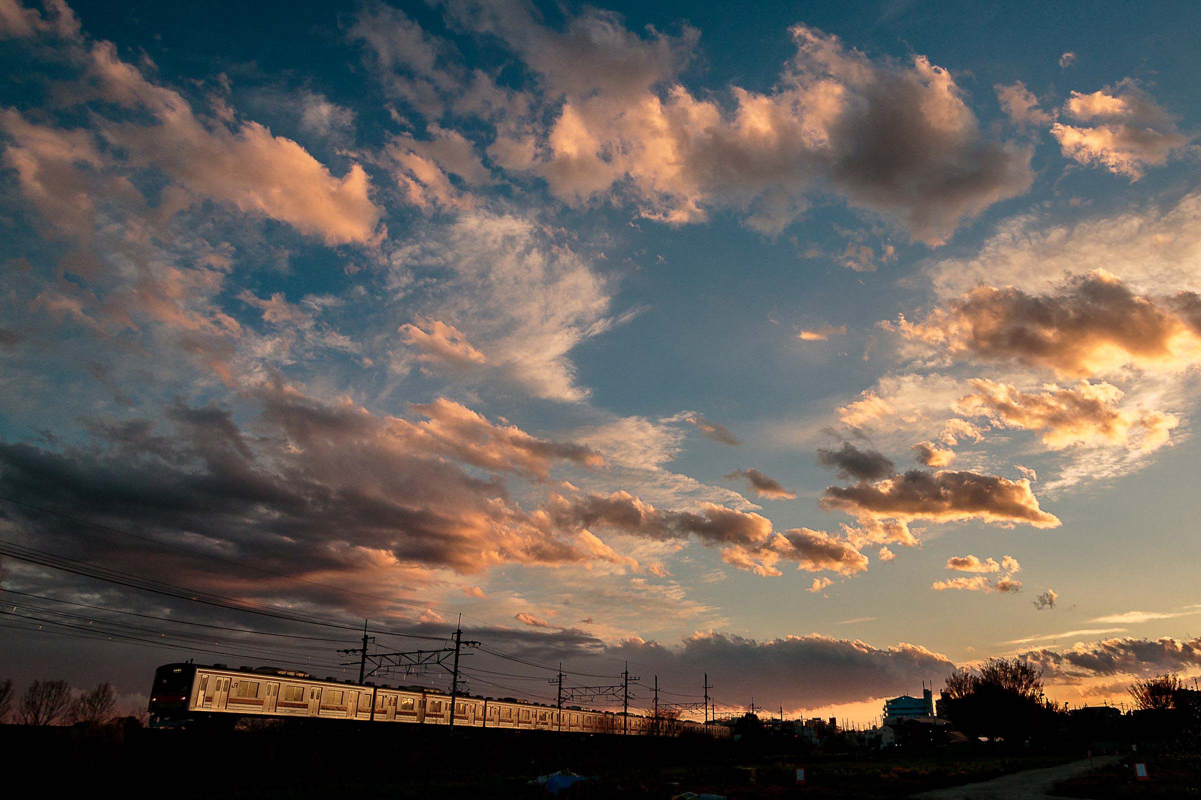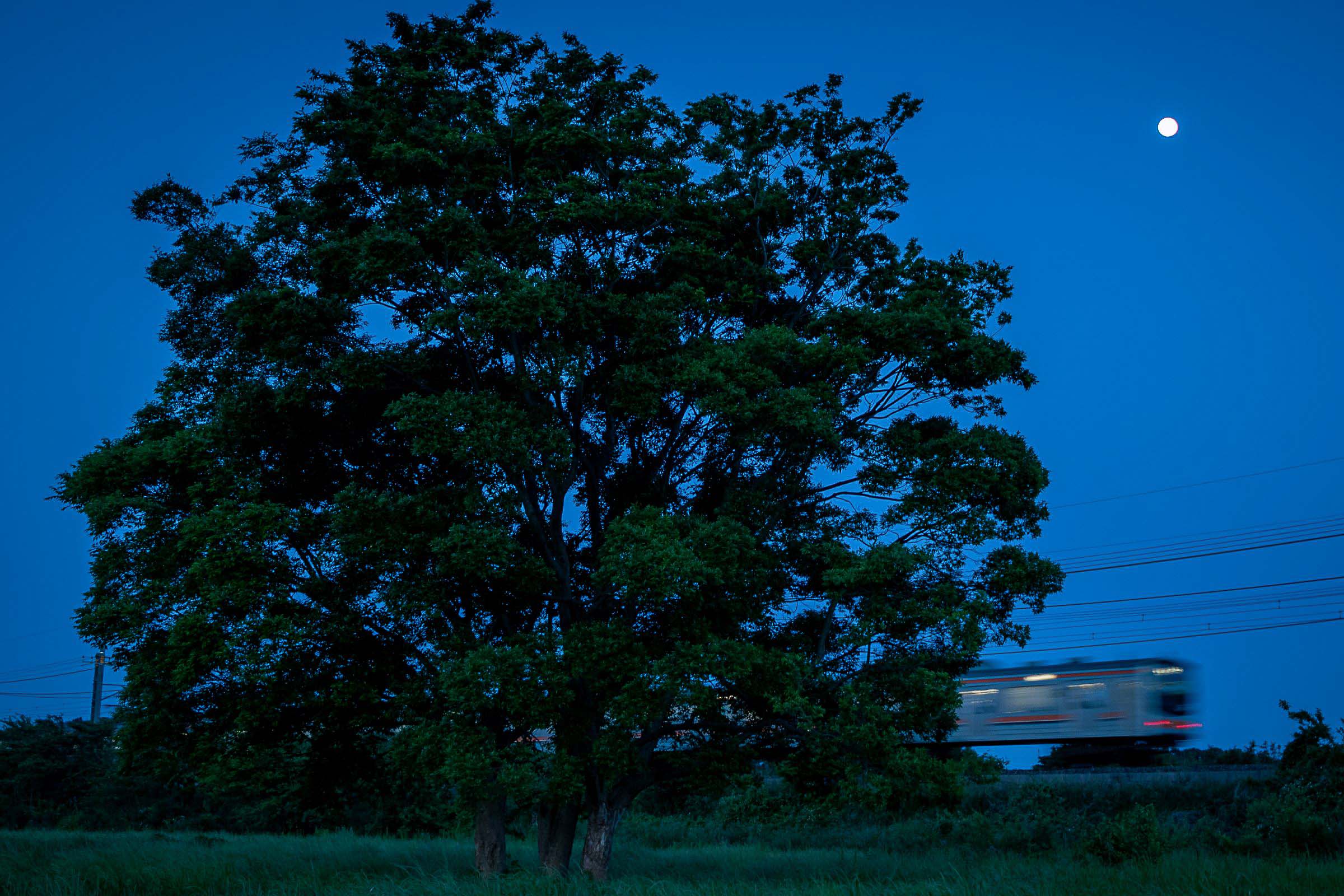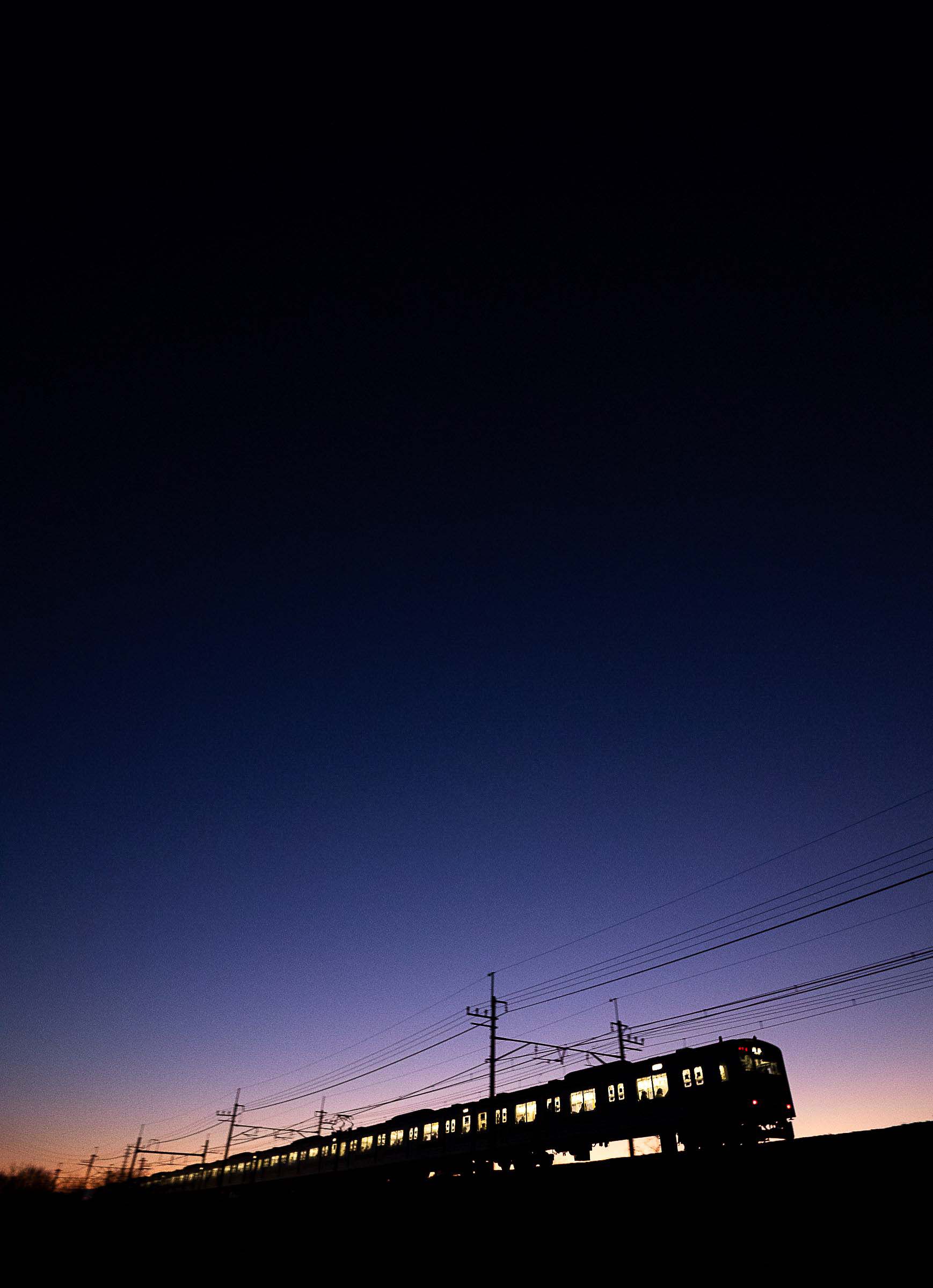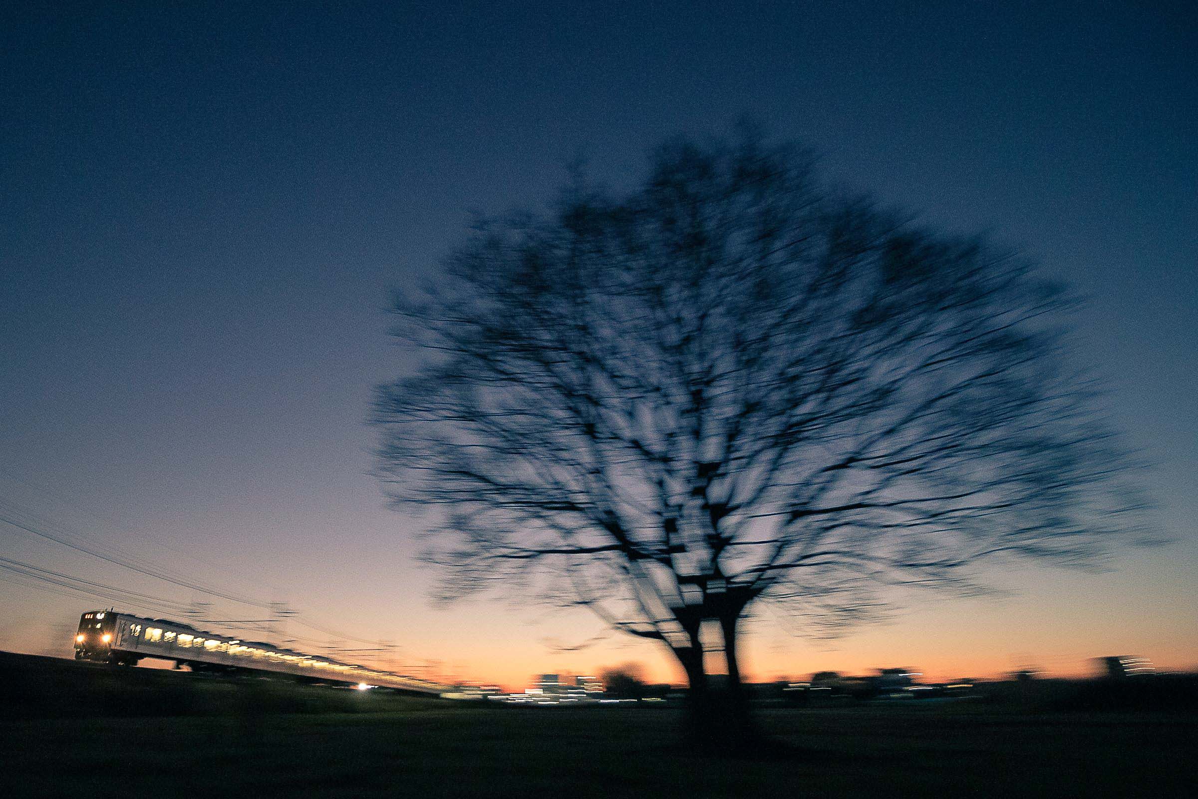 砂利道に三脚を構え、列車が通り過ぎる毎にシャッターを押しては、刻一刻と空の色が変わってゆくのを感じる。