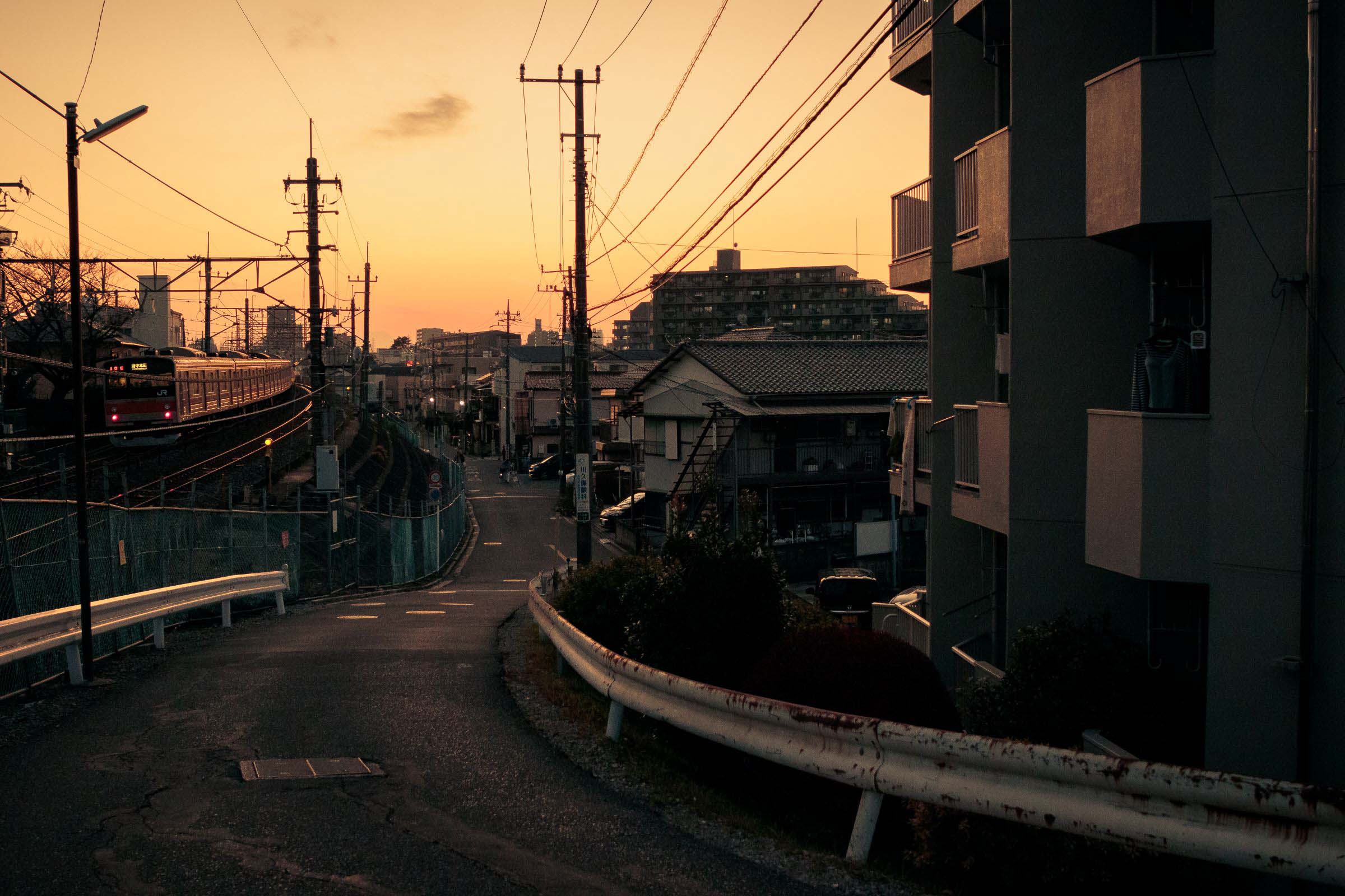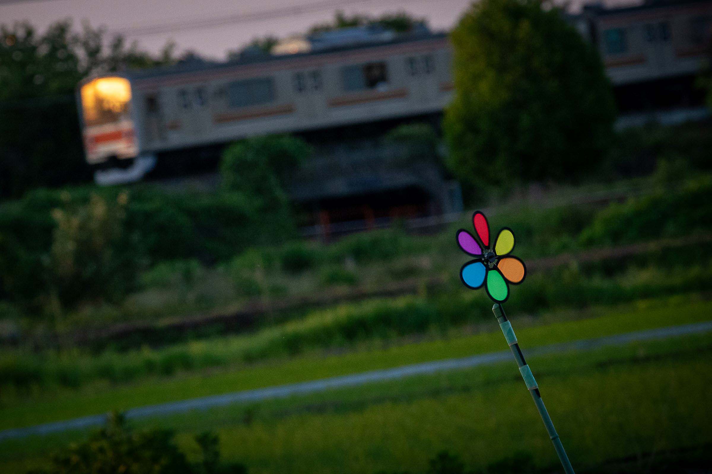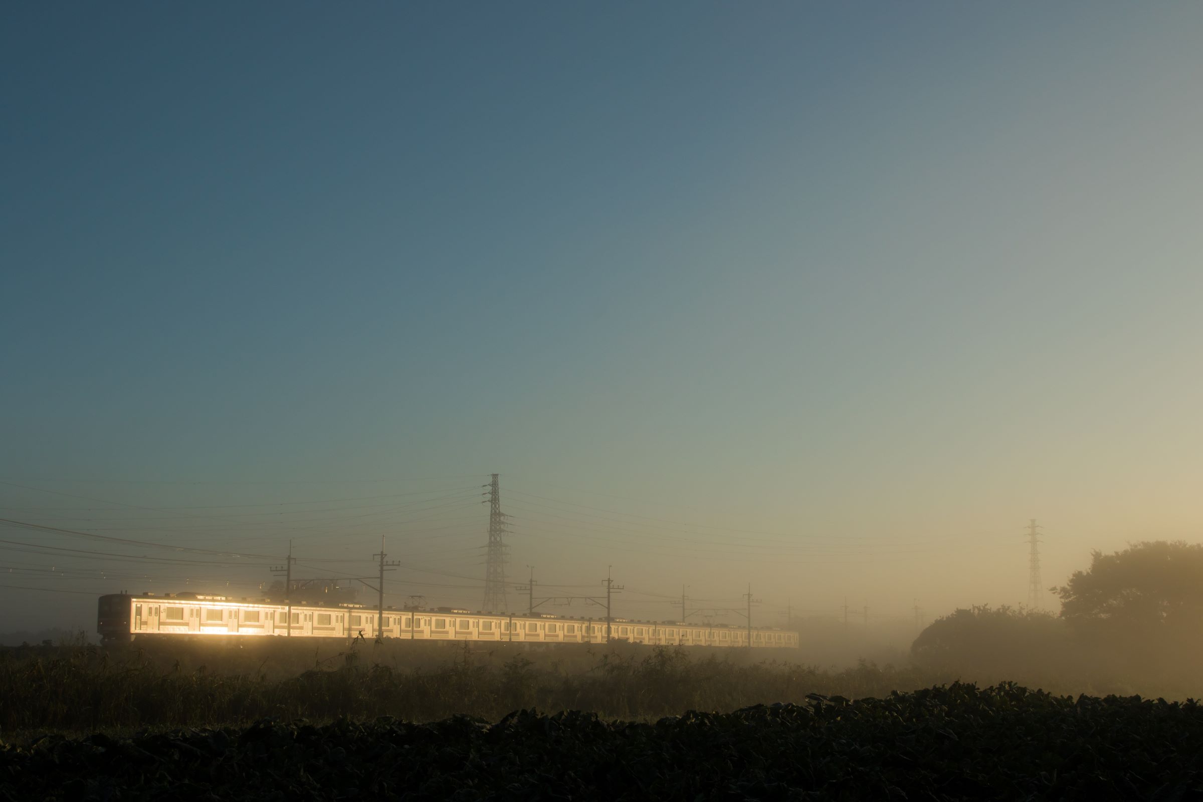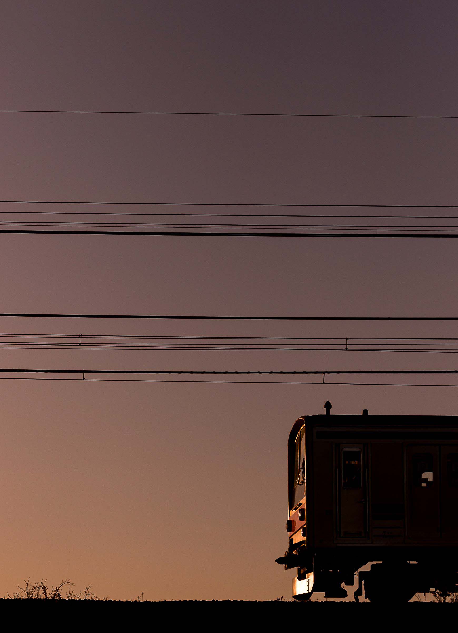 砂利道に三脚を構え、列車が通り過ぎる毎にシャッターを押しては、刻一刻と空の色が変わってゆくのを感じる。