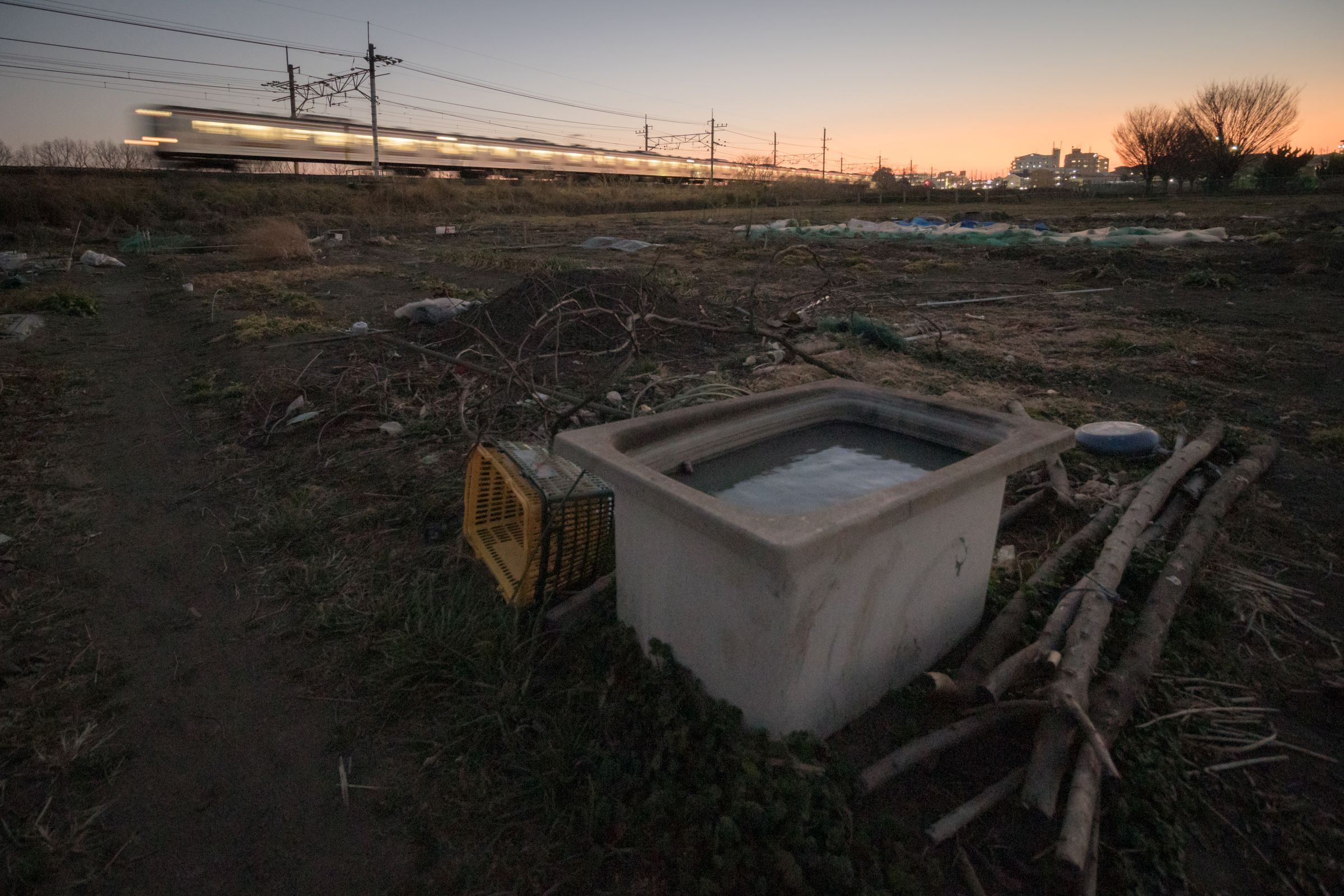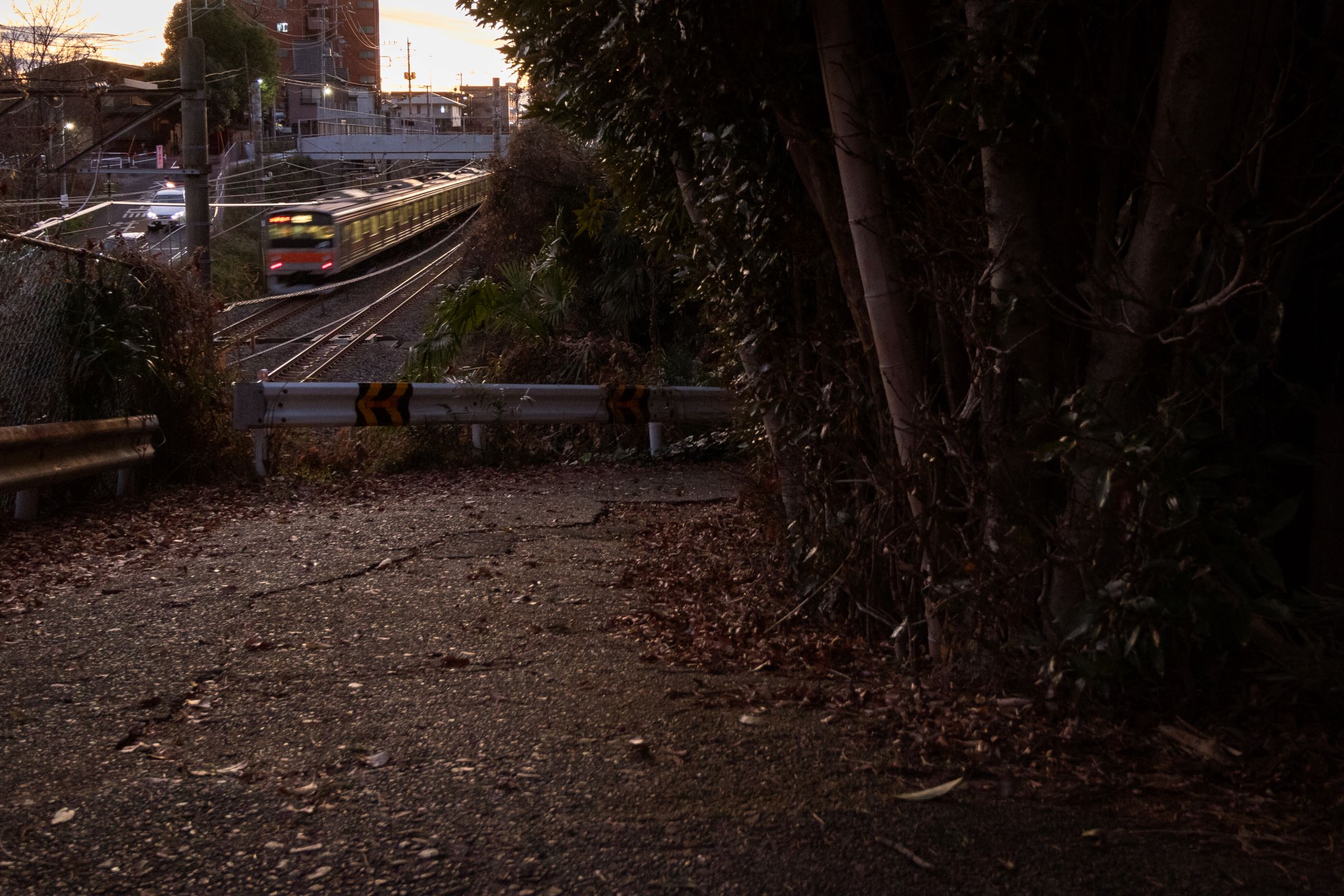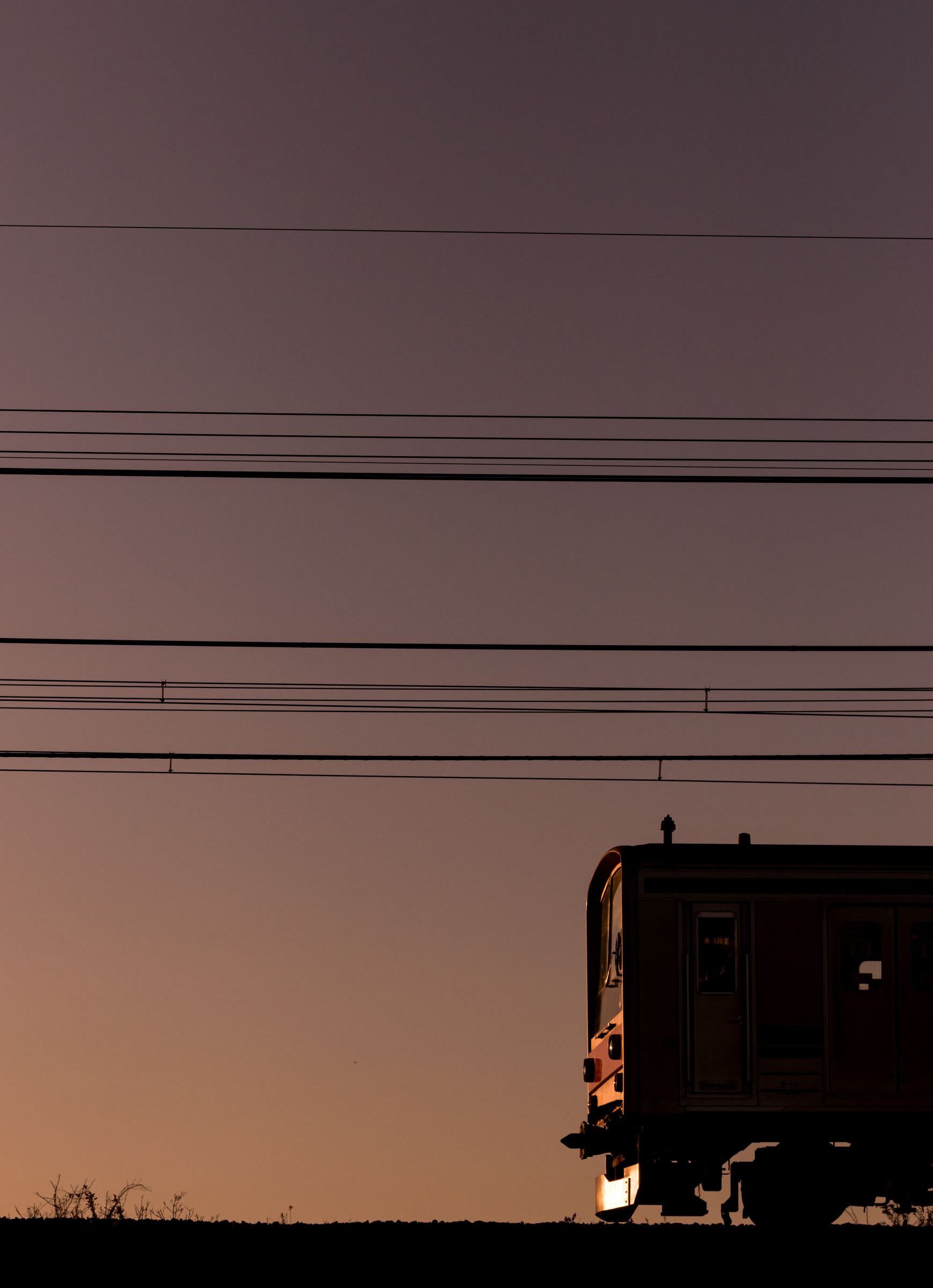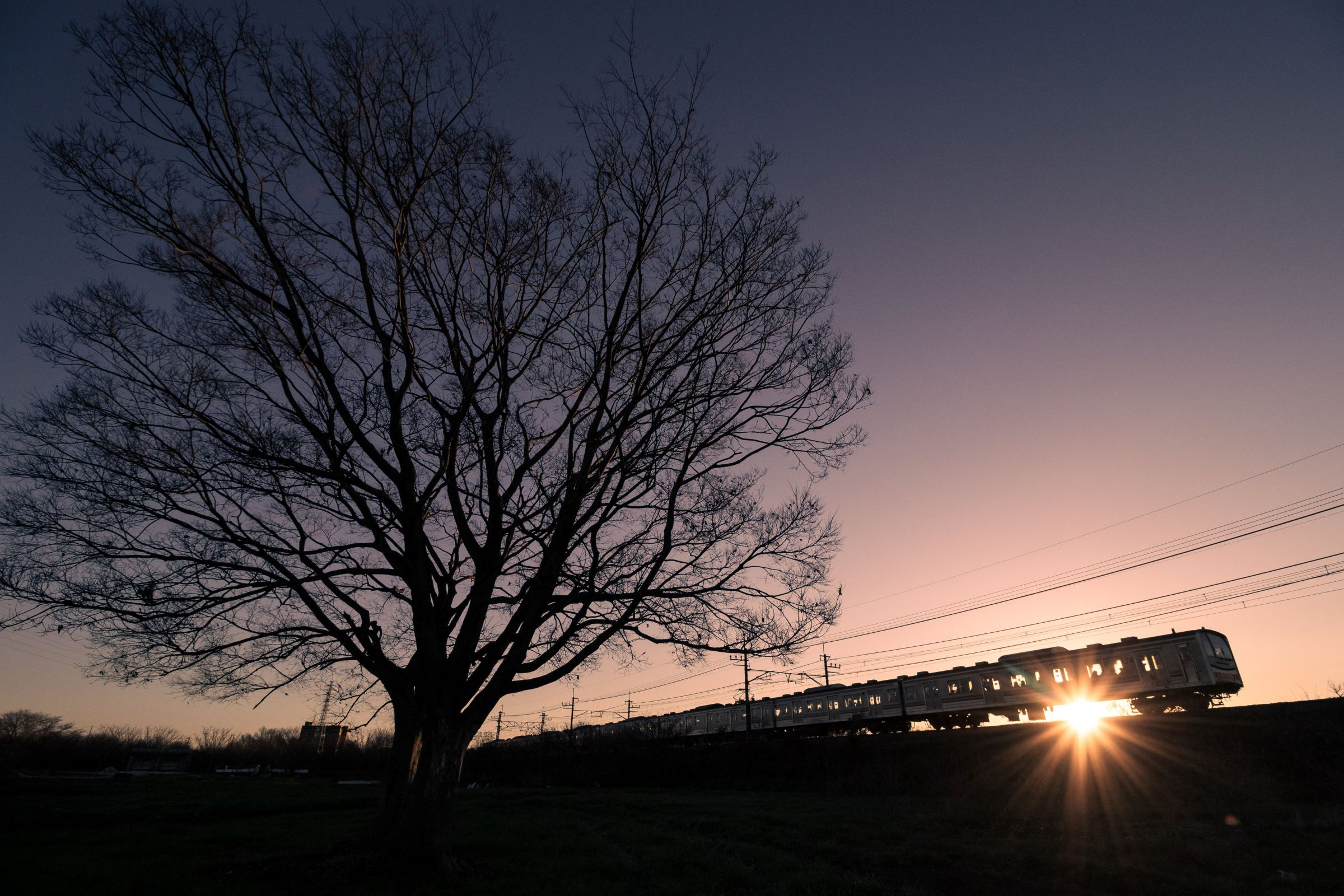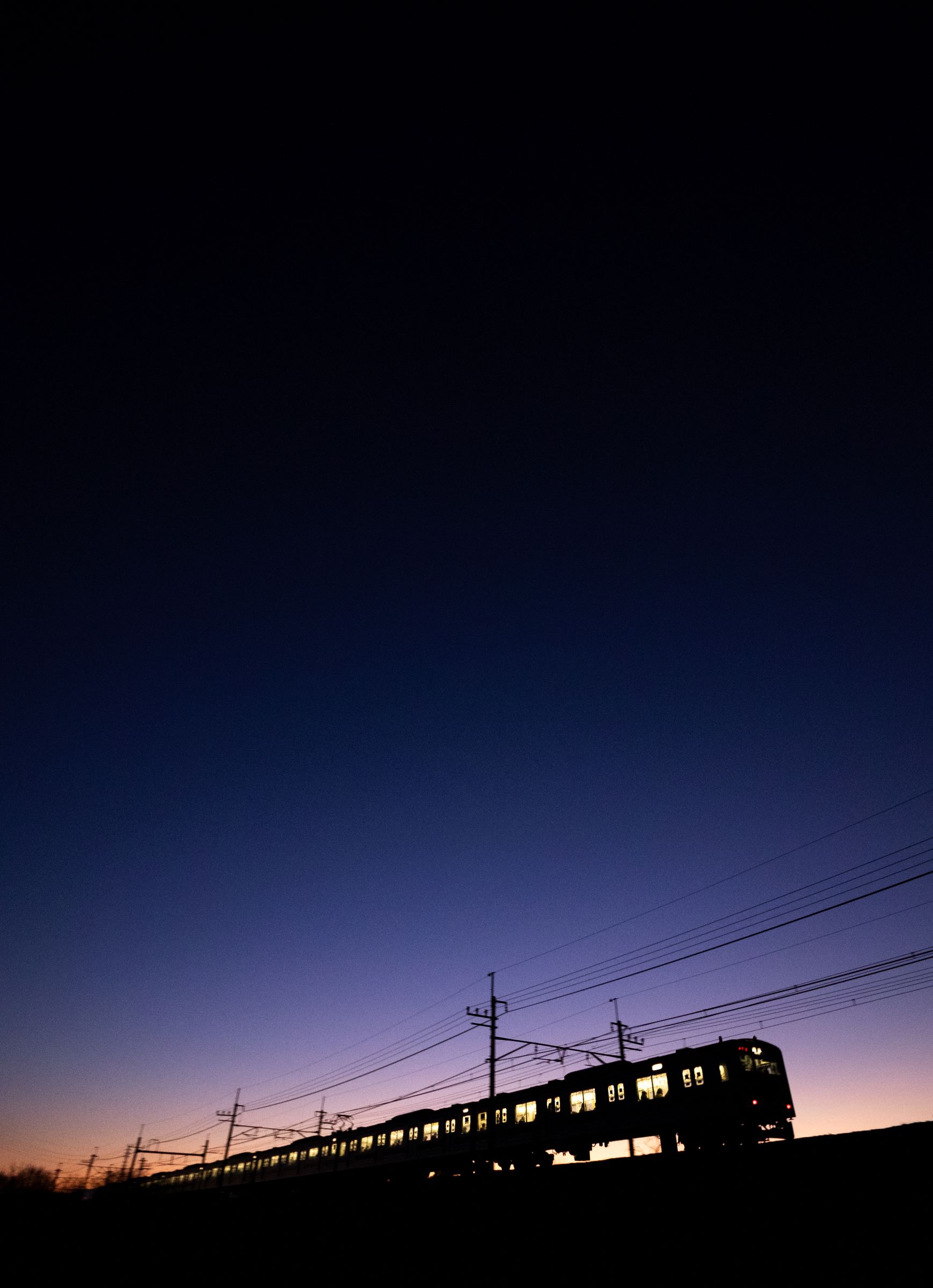 砂利道に三脚を構え、列車が通り過ぎる毎にシャッターを押しては、刻一刻と空の色が変わってゆくのを感じる。