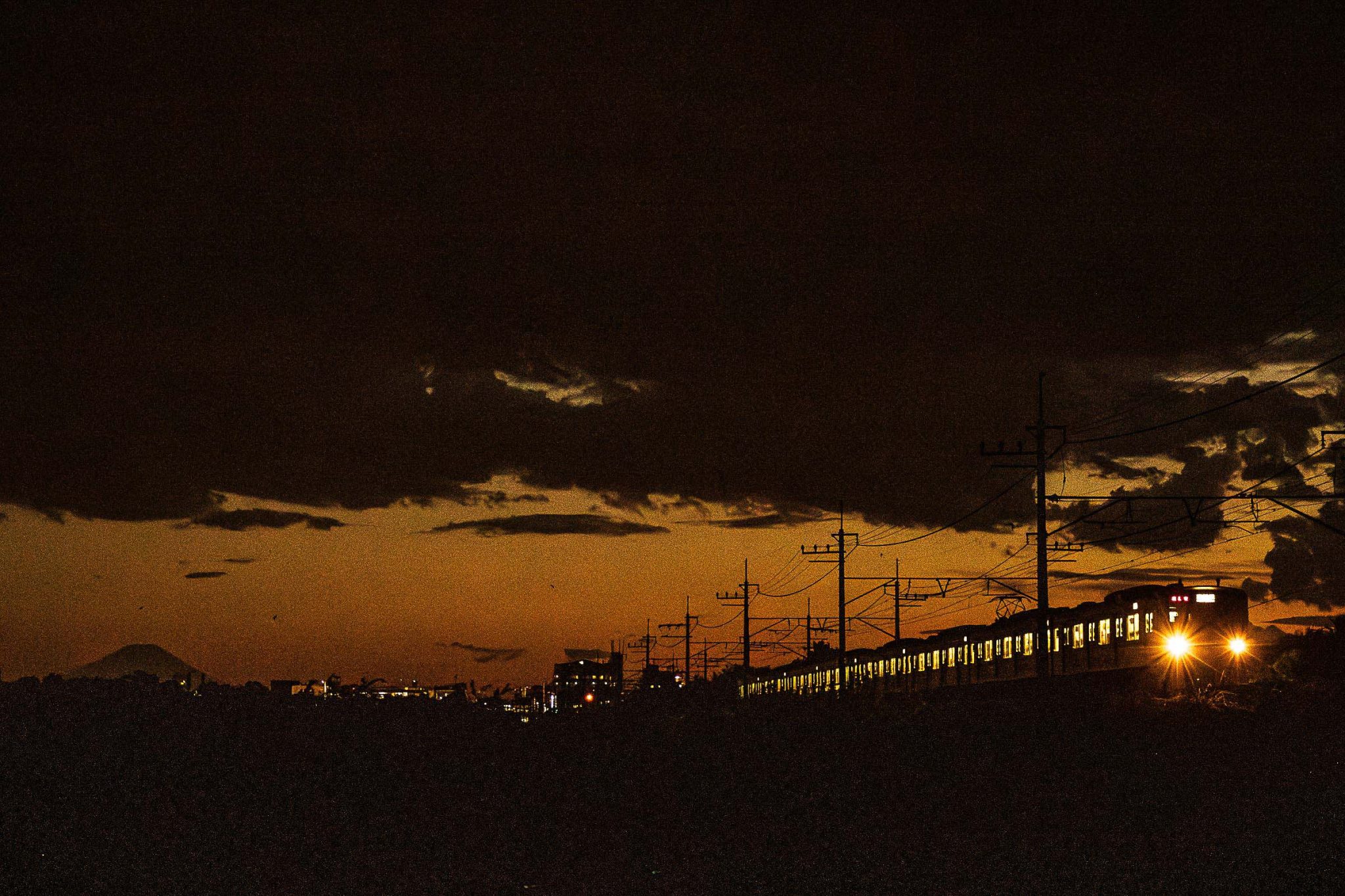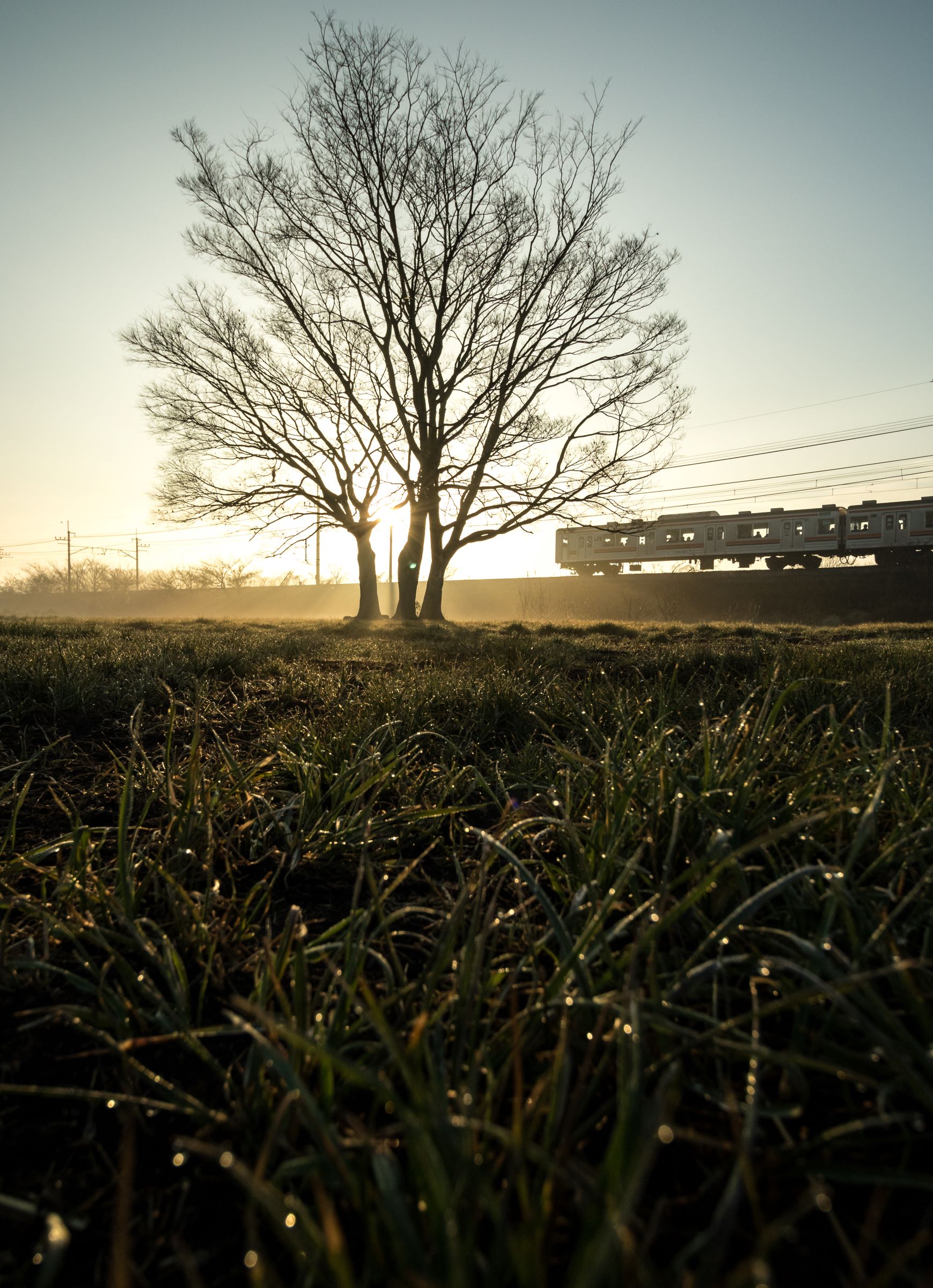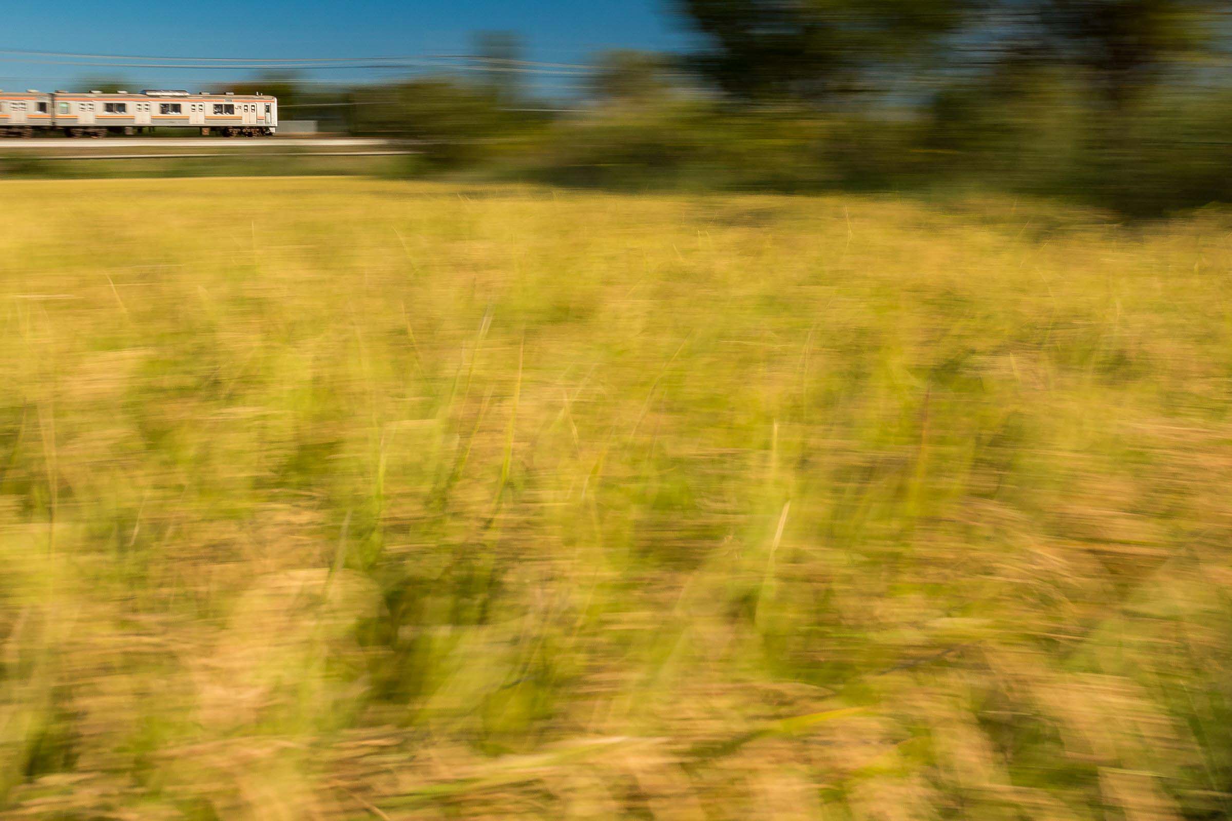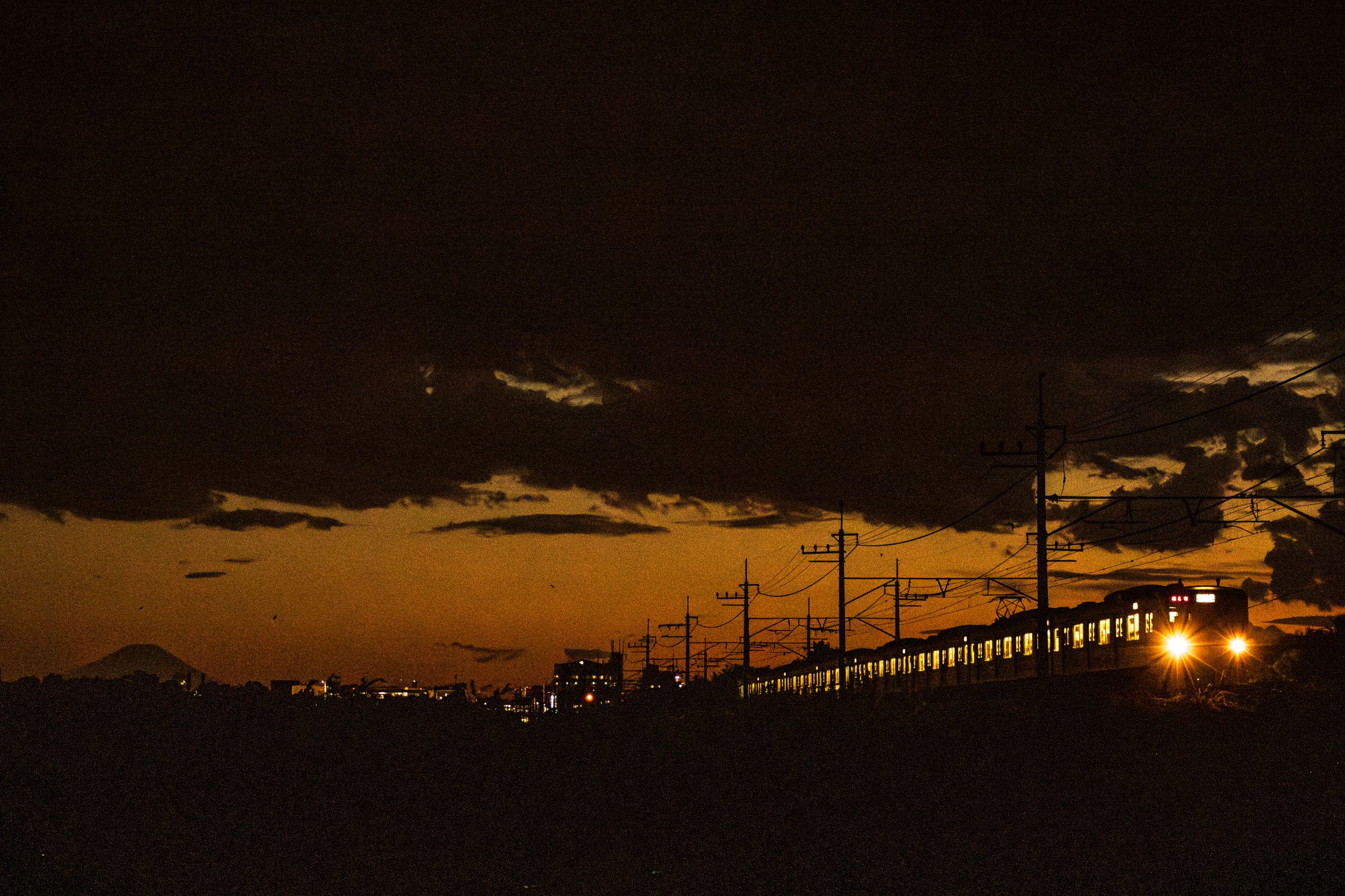 砂利道に三脚を構え、列車が通り過ぎる毎にシャッターを押しては、刻一刻と空の色が変わってゆくのを感じる。