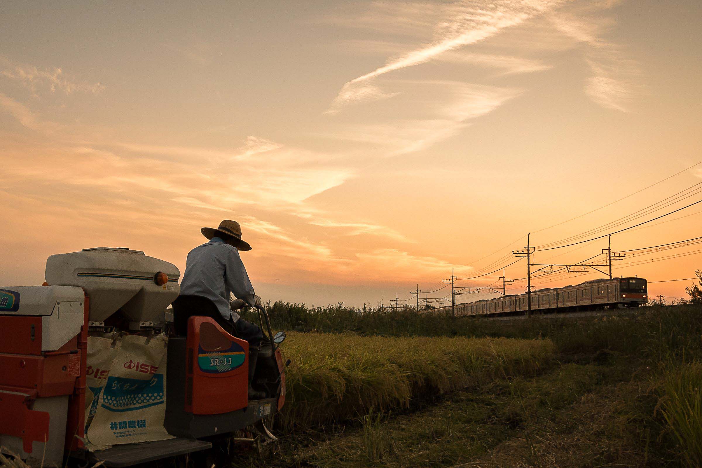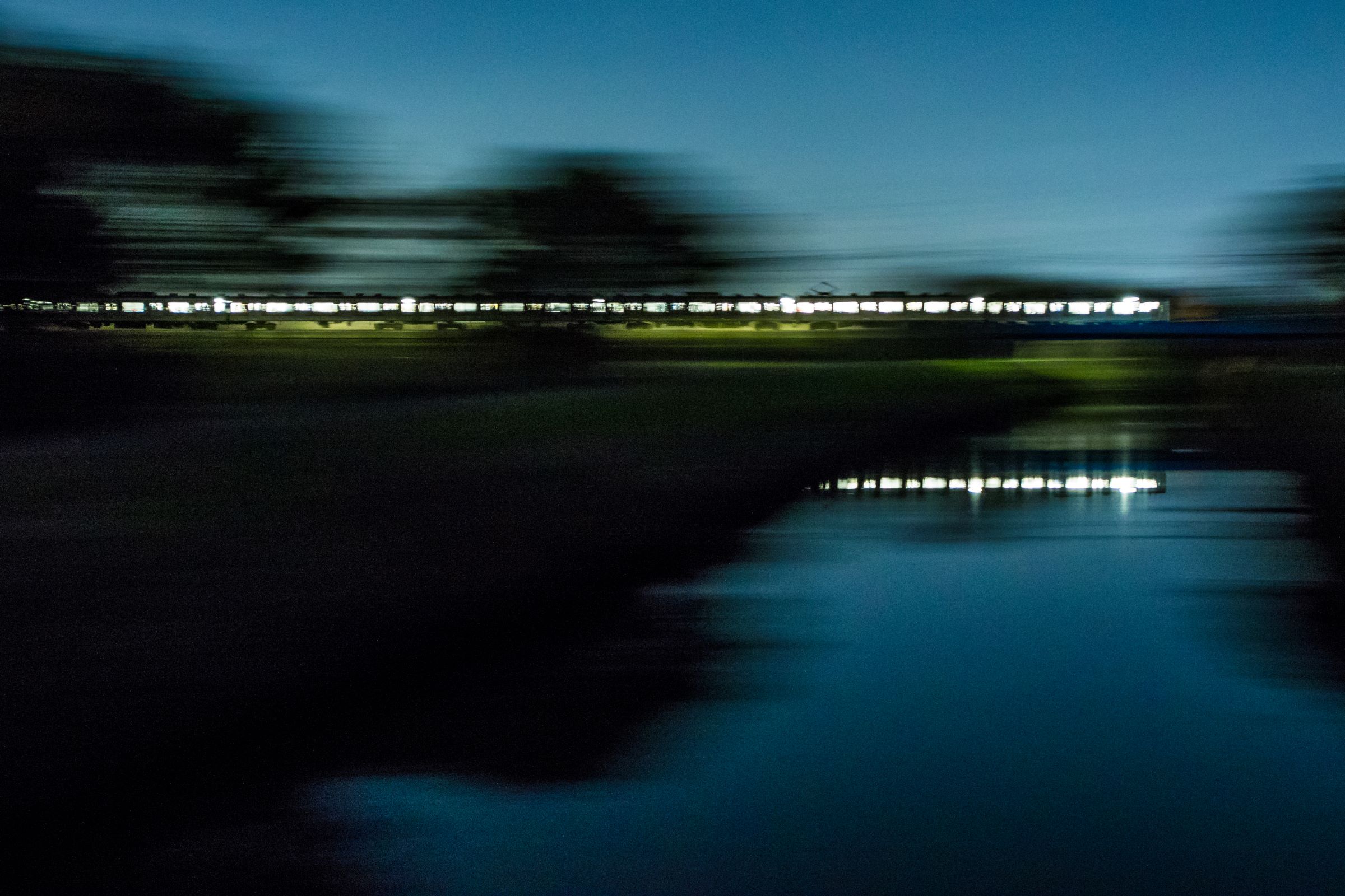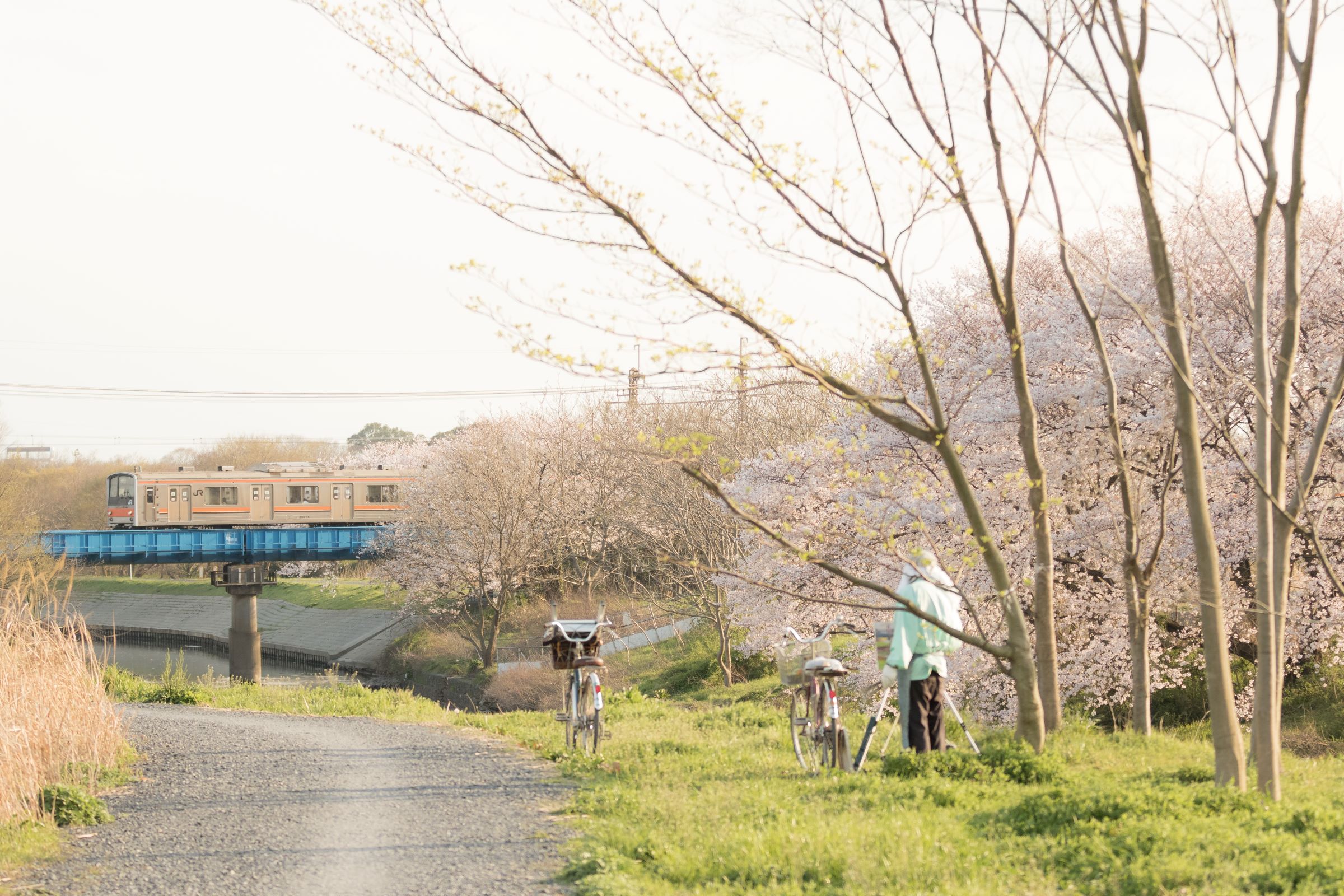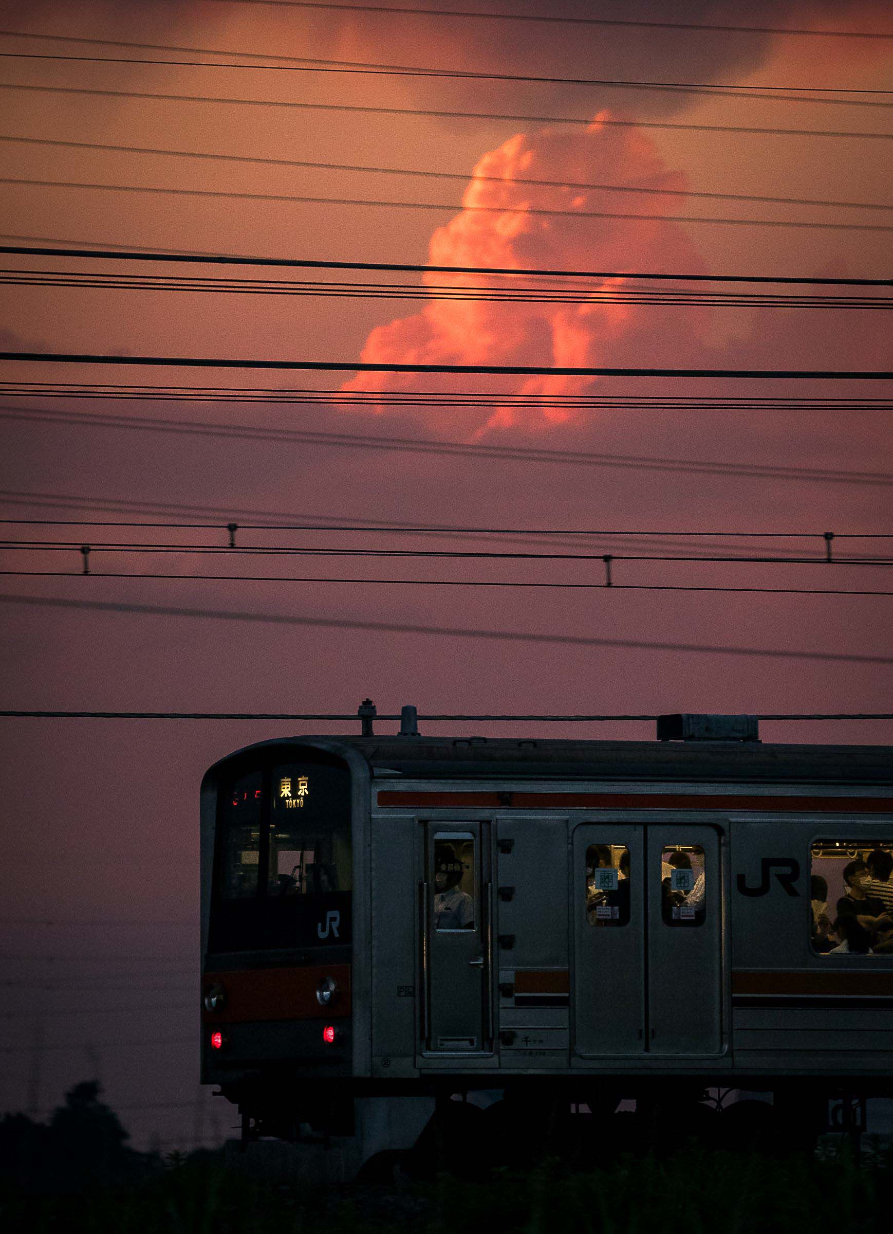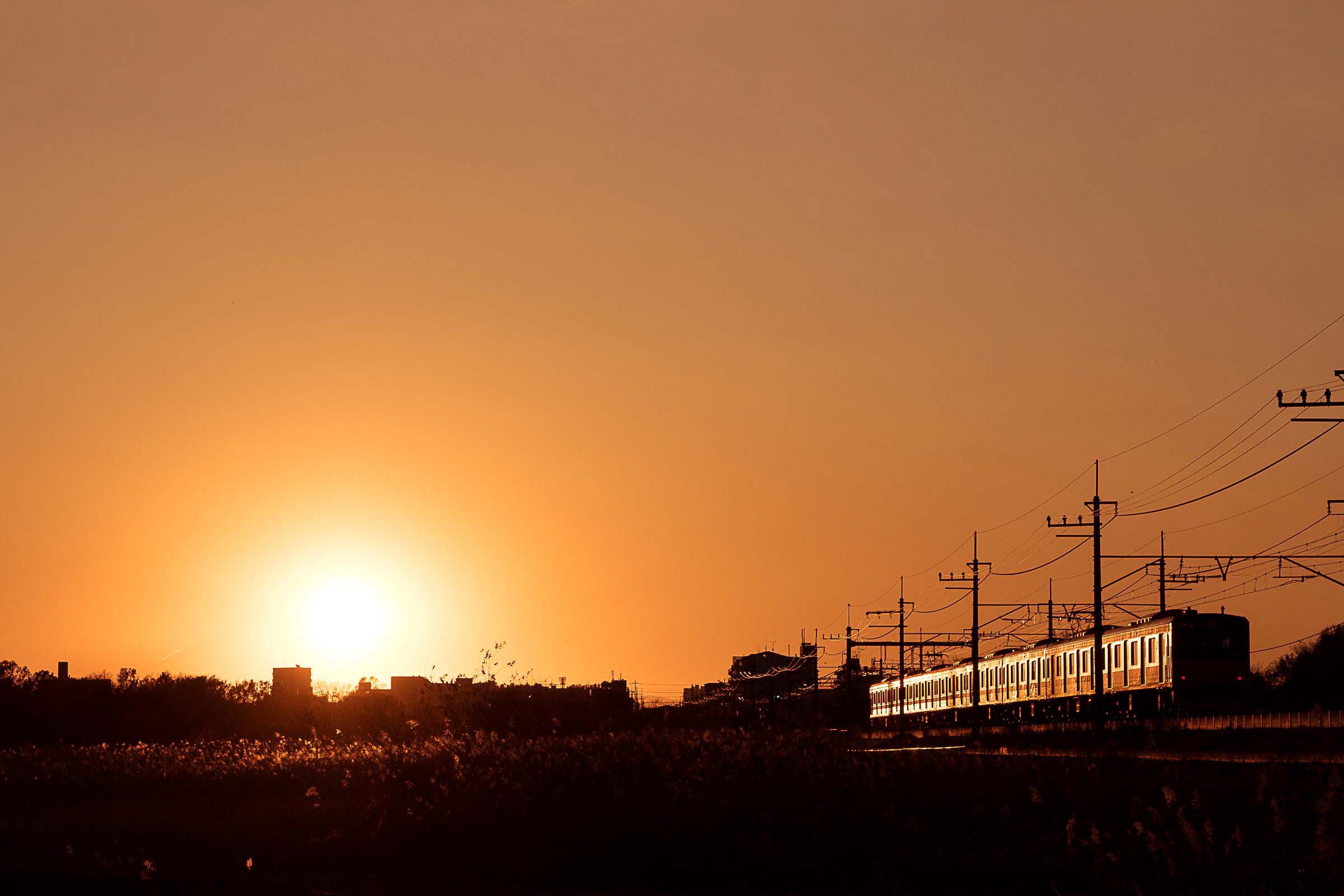 砂利道に三脚を構え、列車が通り過ぎる毎にシャッターを押しては、刻一刻と空の色が変わってゆくのを感じる。