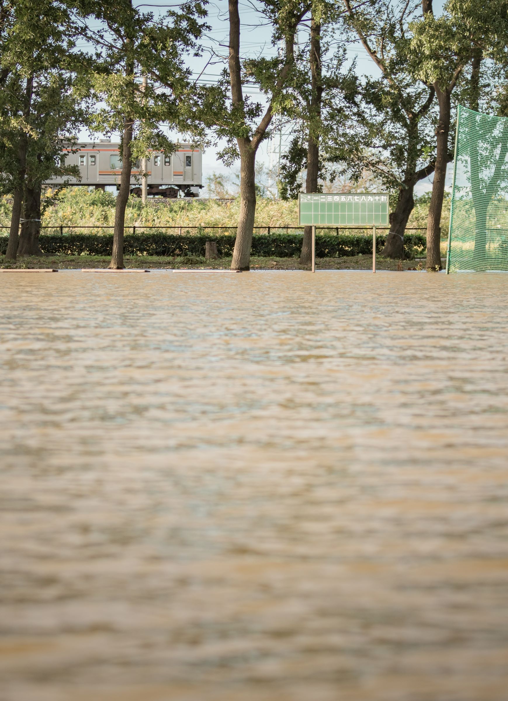 グラウンドも水に浸かっていた。