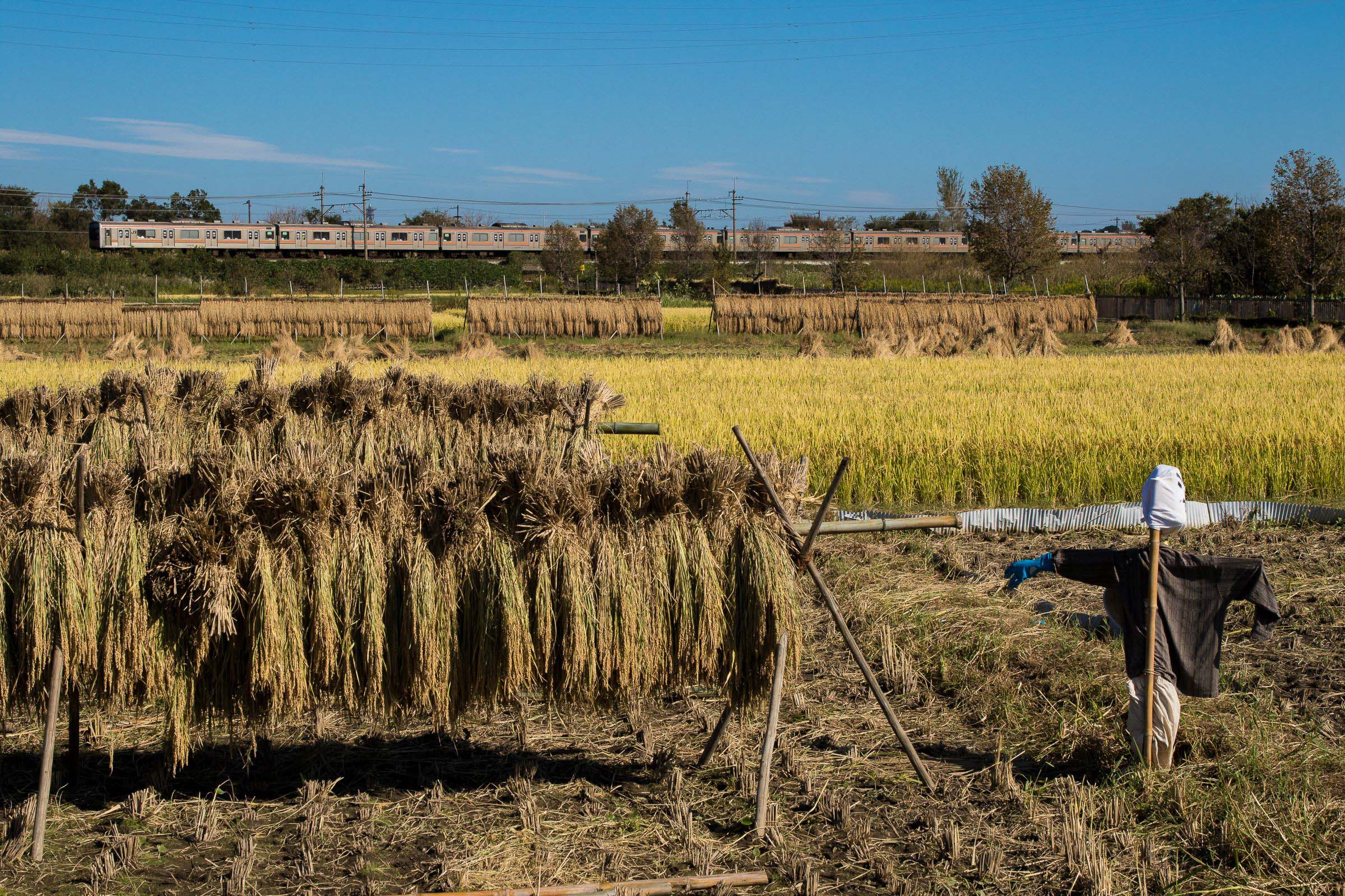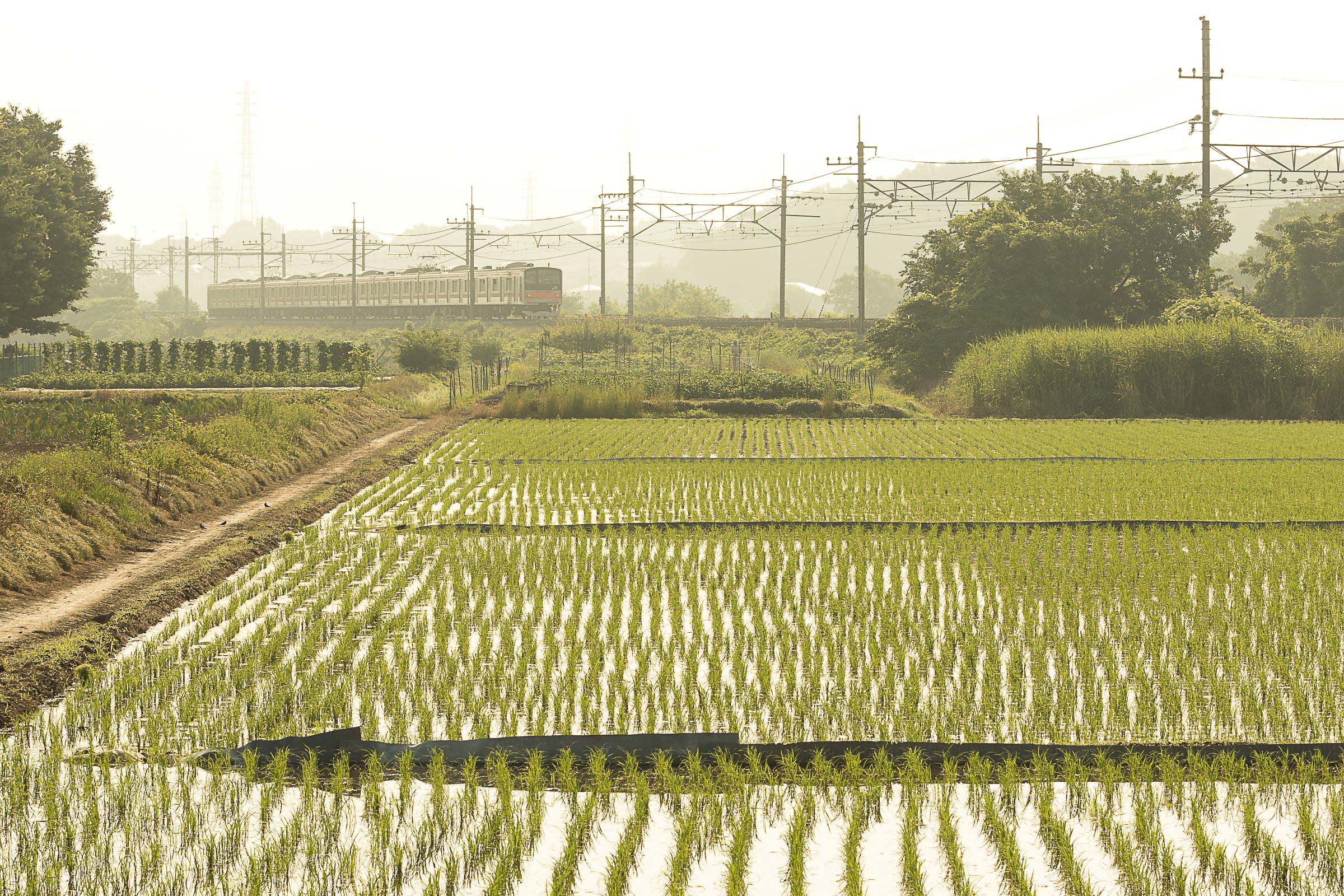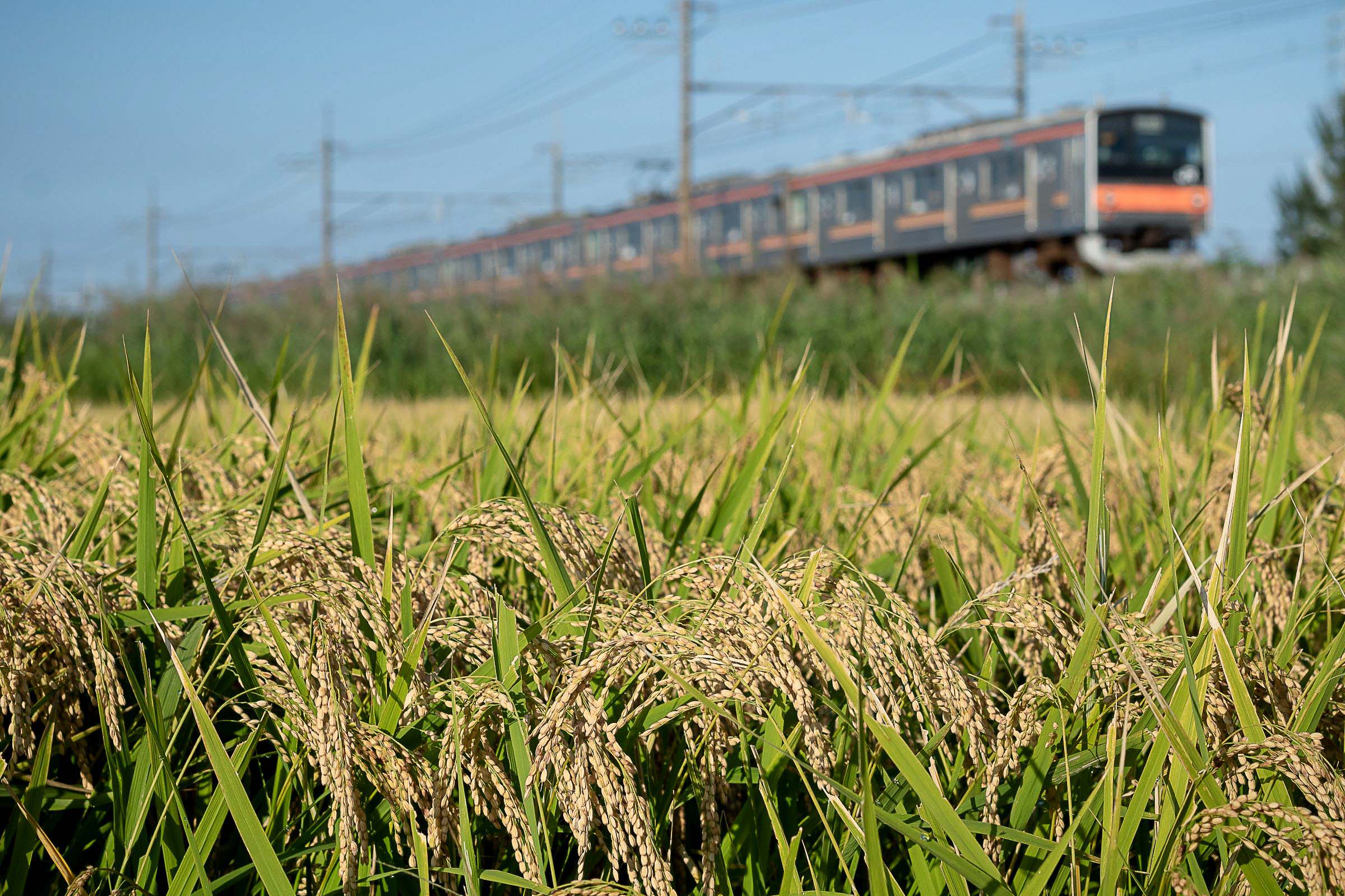 東浦和を発車すると、突然車窓は長閑な田園風景に変わる。約1.3kmにわたって続くこの区間は見沼田んぼと呼ばれており、東京都心から20~30kmの距離に残された数少ない大規模緑地である。田んぼや畑、雑木林、見沼代用水や芝川が織りなすこの風景は、地域の人々に身近な自然として親しまれている。
