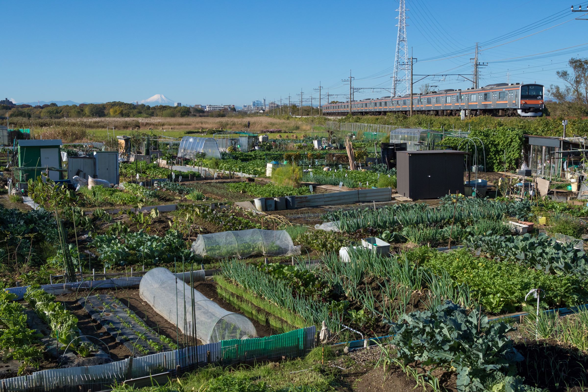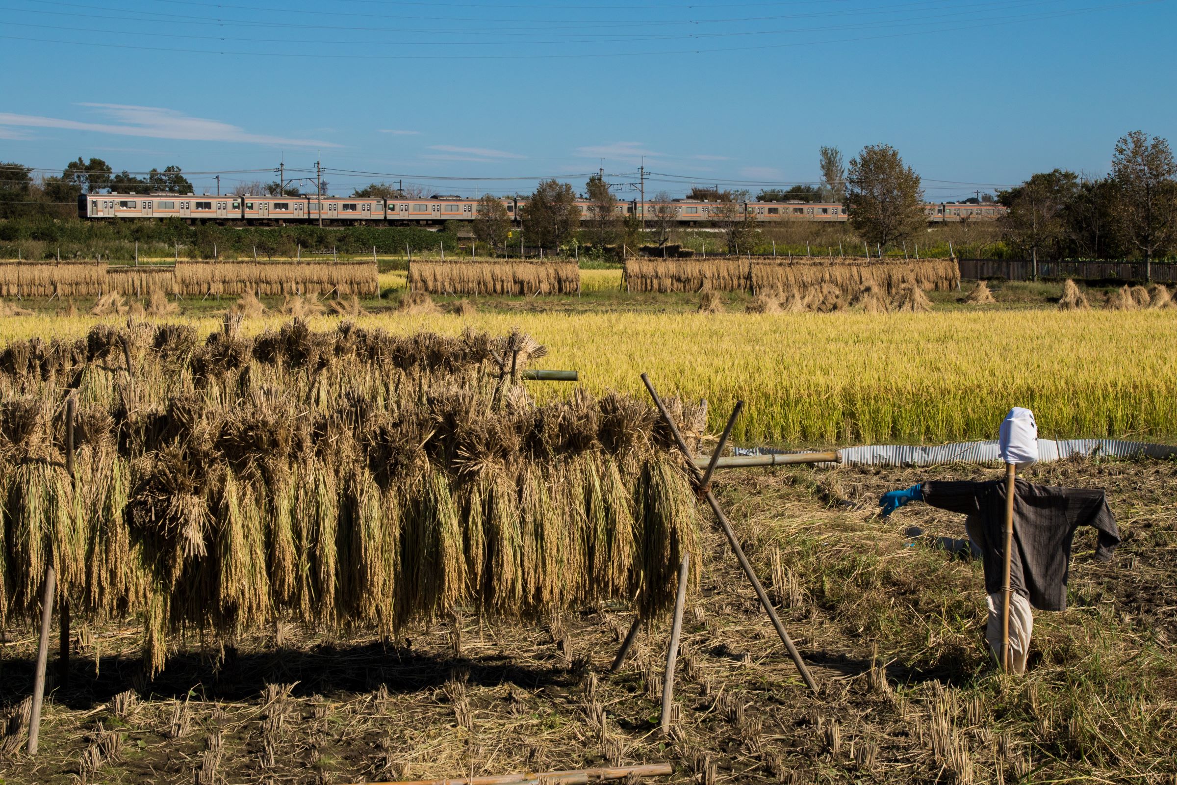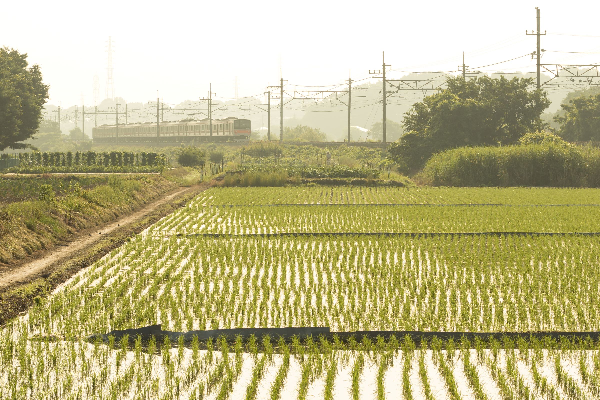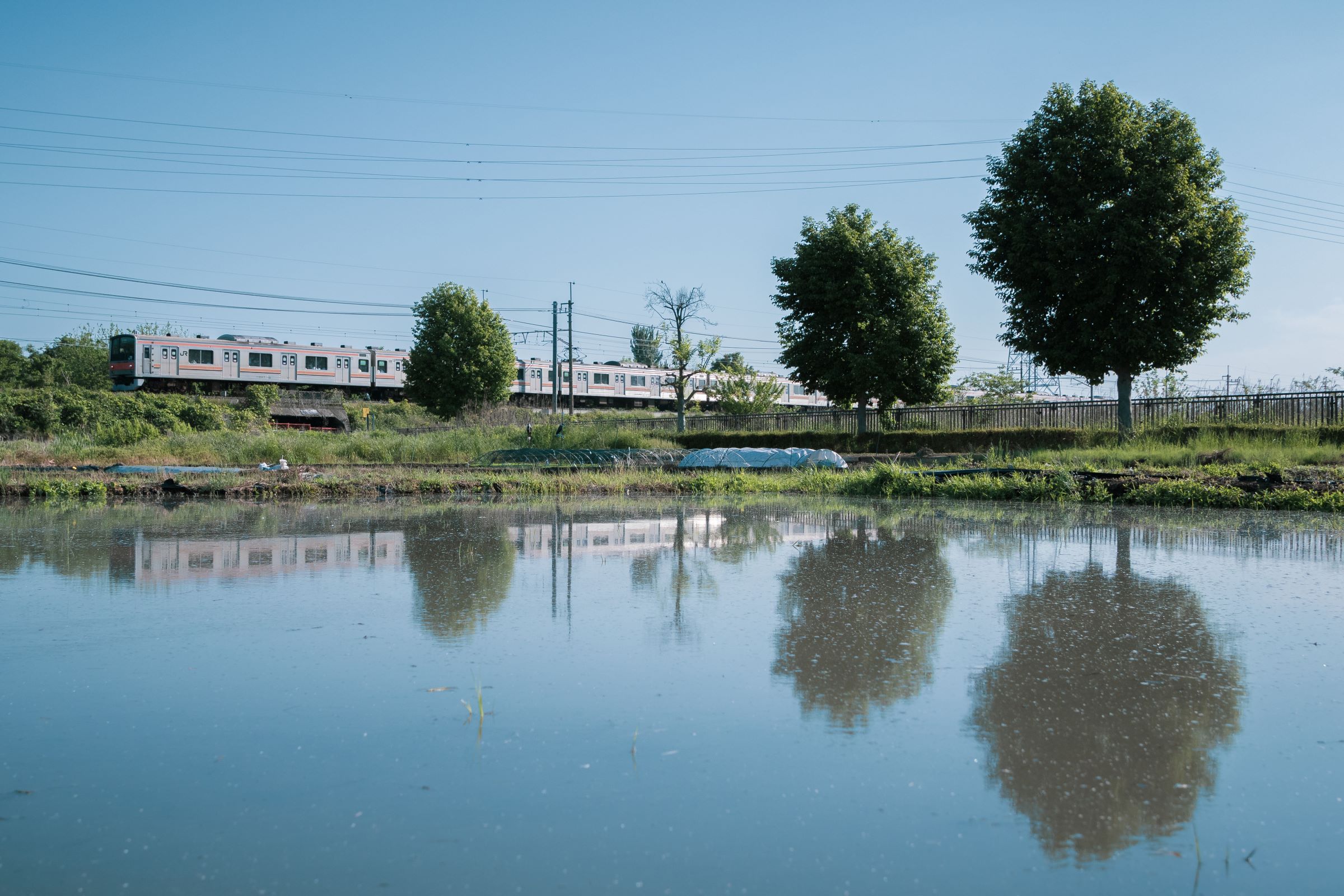 東浦和を発車すると、突然車窓は長閑な田園風景に変わる。約1.3kmにわたって続くこの区間は見沼田んぼと呼ばれており、東京都心から20~30kmの距離に残された数少ない大規模緑地である。田んぼや畑、雑木林、見沼代用水や芝川が織りなすこの風景は、地域の人々に身近な自然として親しまれている。