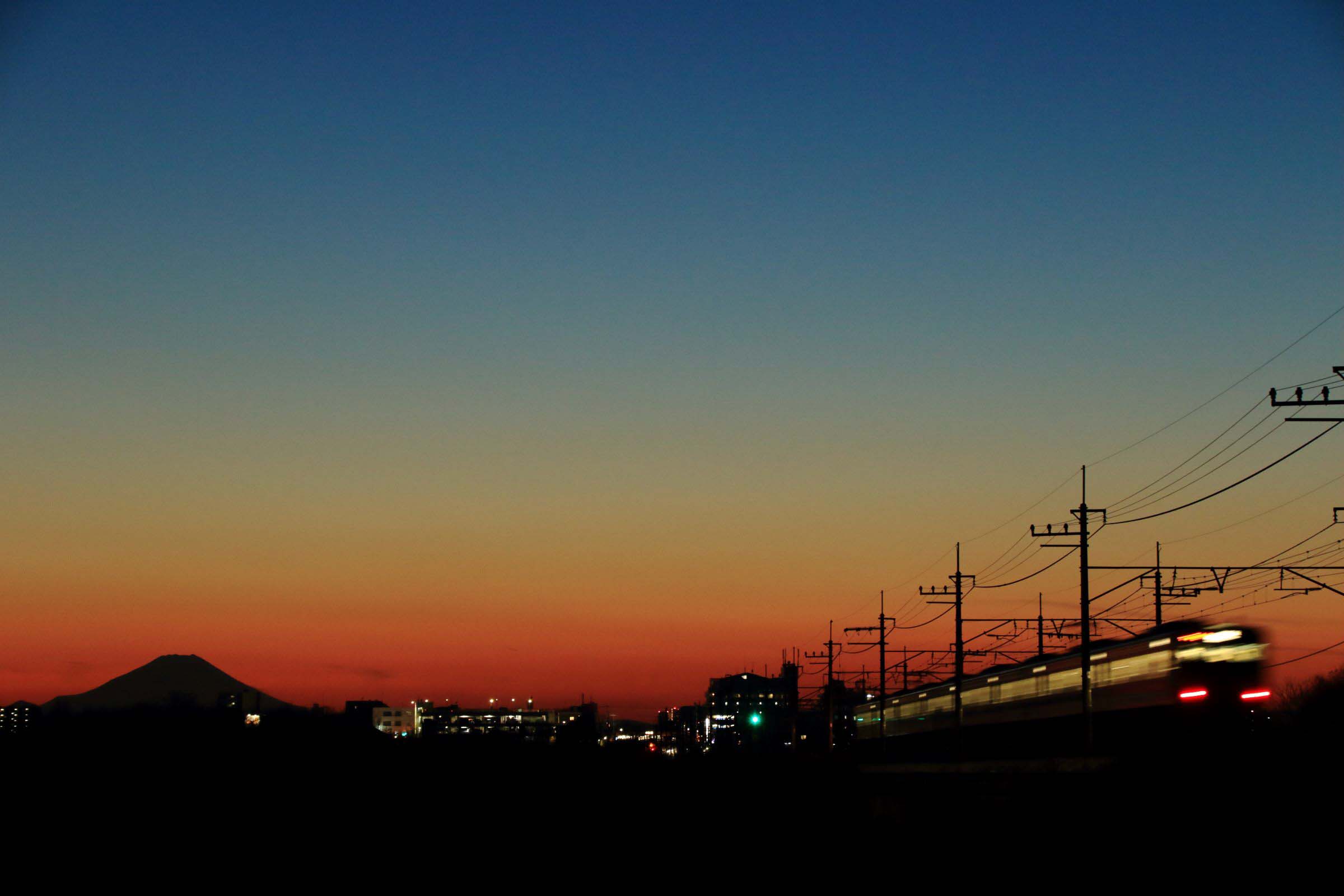 真冬の時期、日が没して間もなくすると、ポッと西の空に富士山が現れる。