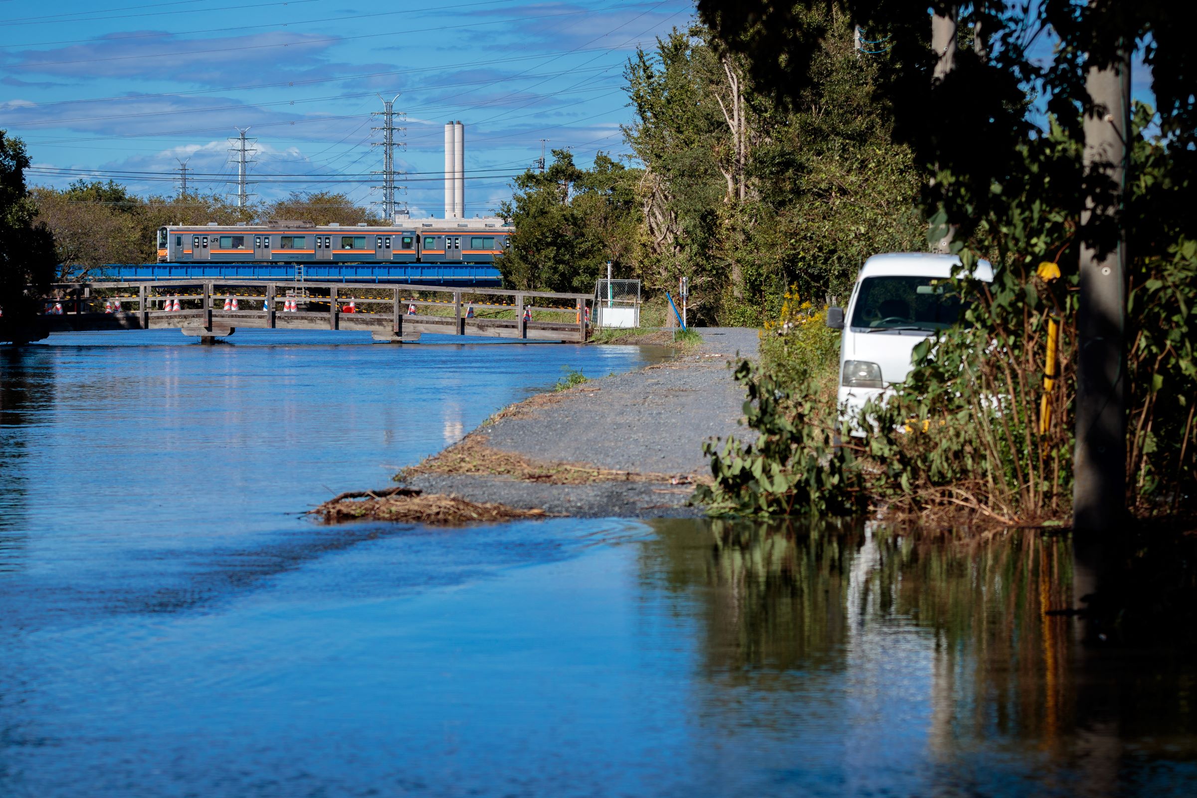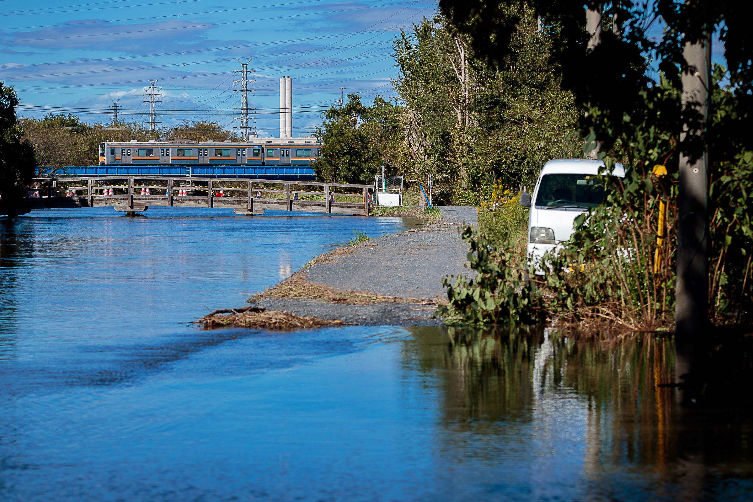 2019年10月12日、大型の台風が襲った。ヒガウラを流れる芝川は氾濫した。13日の午後にようやく武蔵野線は運転を再開した。