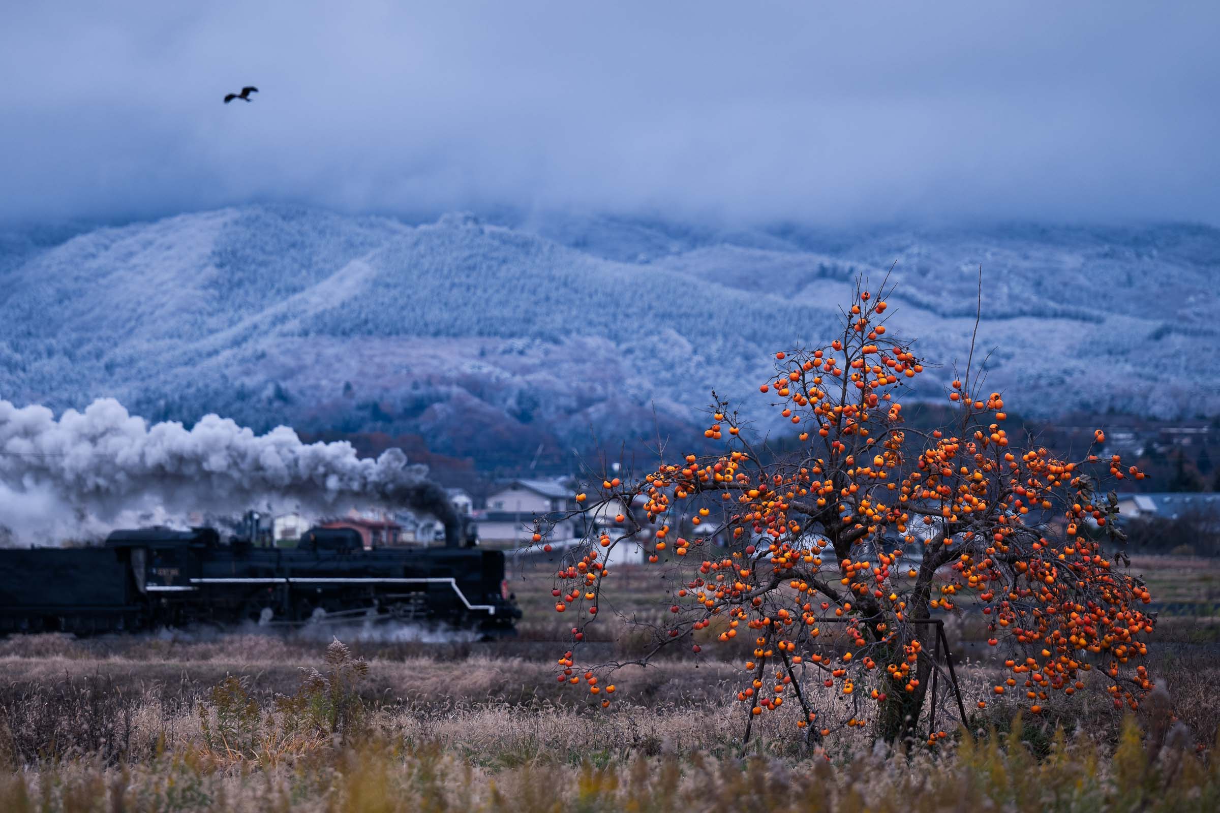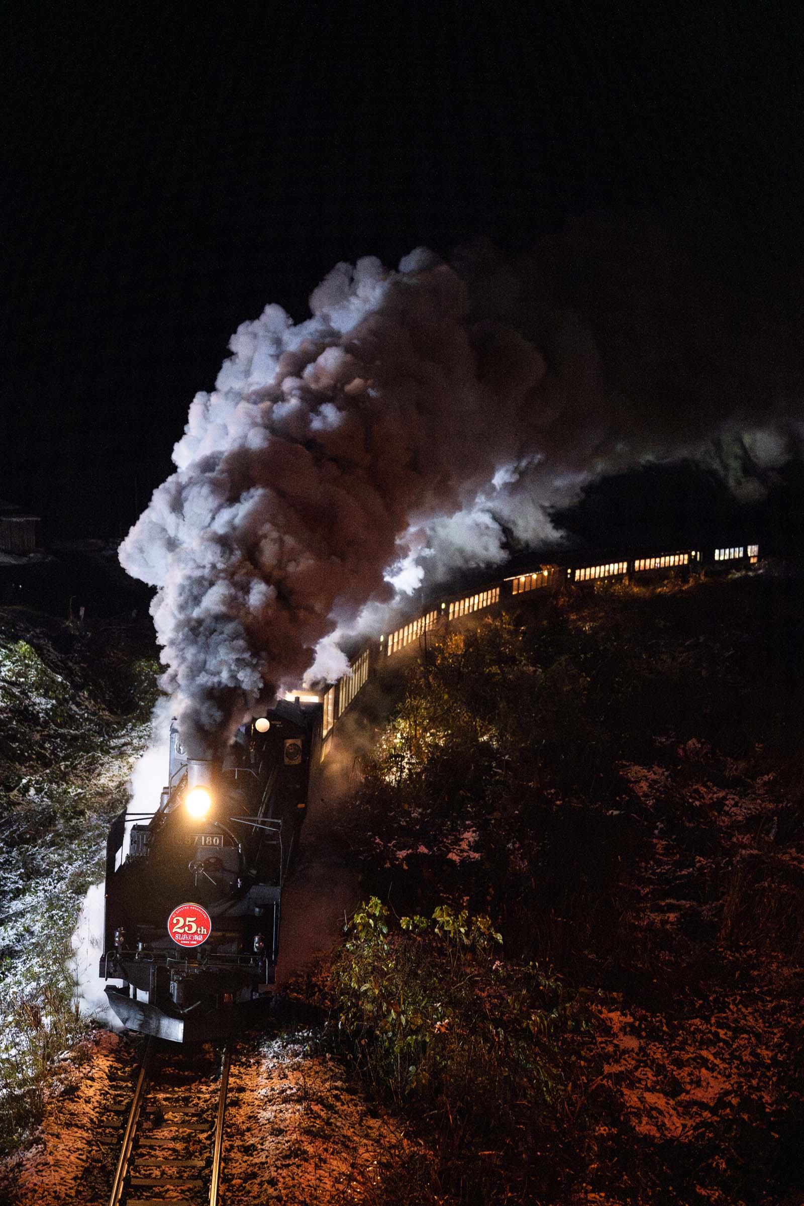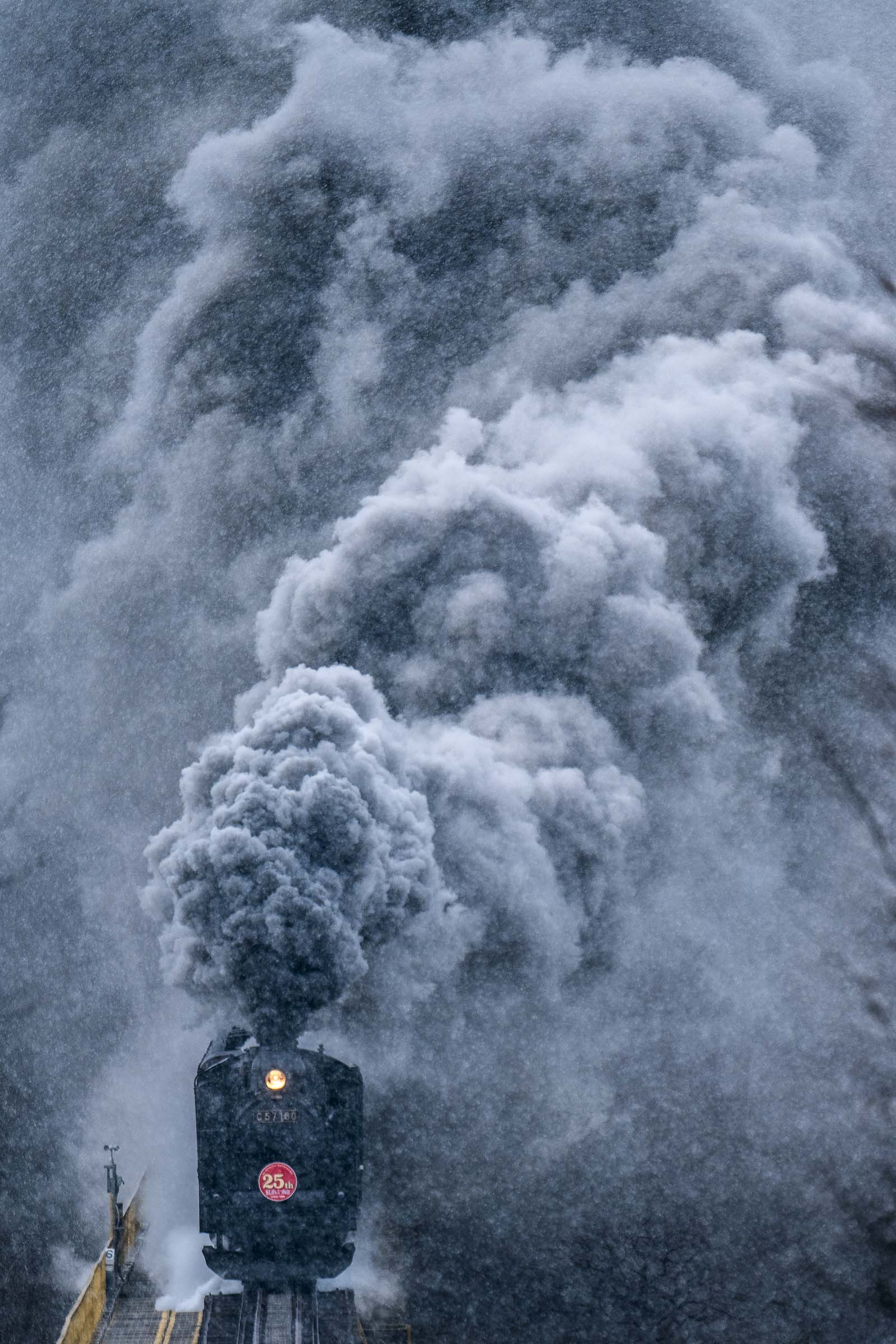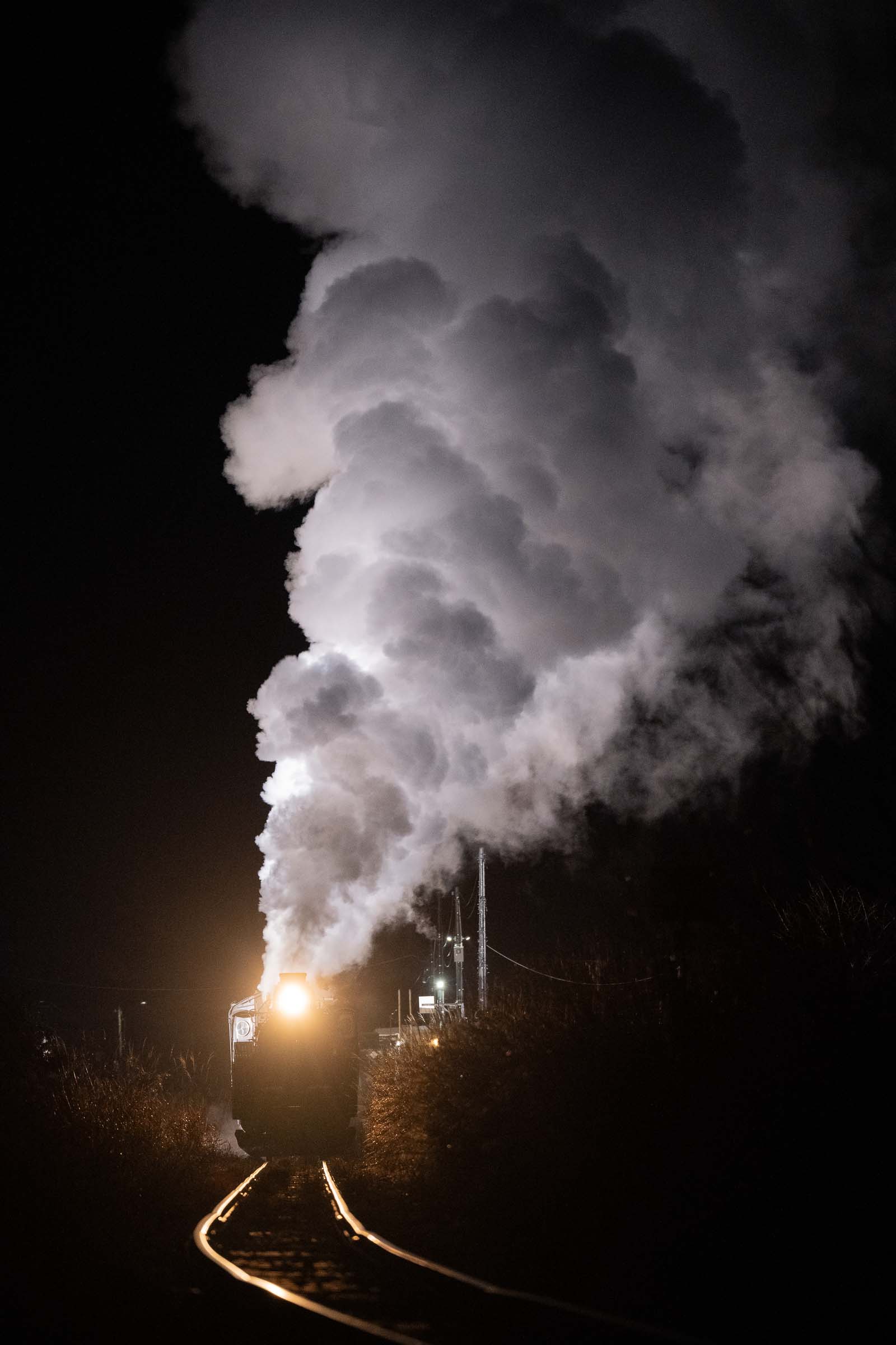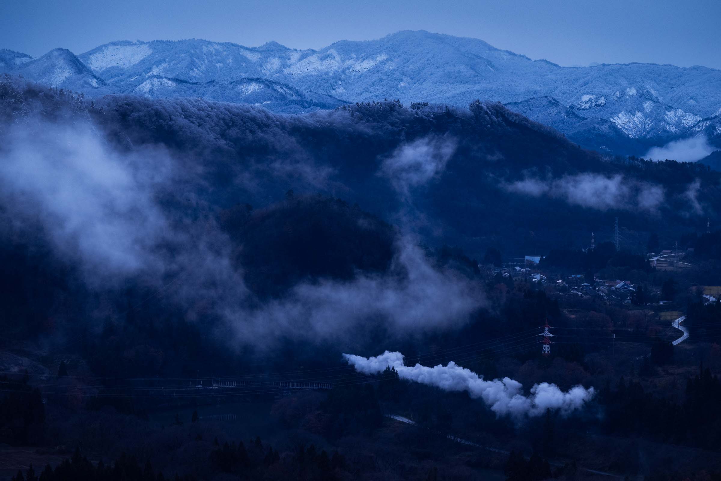 12月7, 8日、阿賀町と西会津町の天気予報は雪だった。この土日は、SLばんえつ物語が運転される今シーズン最後の週末である。雪景色を走る蒸気が狙えるかもしれない!期待を胸に、半年ぶりの磐越西線へと向かった。撮影日:2024年12月7日 朝は若松口の只見線を撮影し、ロケハンをしつつ、五十島・三川界隈にやってきた。沿線には既に多くの撮り鉄が待機していた。特に五十島ストレートでは見たこともないような数の三脚があった。雪の積もり具合はこの辺りが一番ベターであるようだ。あとは迫力ある煙に期待したい。 三川ー津川 ただ、棚引く煙だけ。 三川ー津川 雪は変わらず降っているものの、津川から先はほとんど積雪がなくなった。津川の停車時間中に雪を払ったのか、ヘッドマークは”一円玉”ではなくなっていた。モノトーンの風景に真っ赤なヘッドマークが誇らしげに見えた。 津川ー鹿瀬 大爆発。 山都ー喜多方 秋と冬の境。 堂島ー会津若松 立ち位置は一面の雪景色。しかし、150m下の線路際に雪が積もることはなかった。秋から冬へ⸺明日、雪はどこまで降りてくるのだろう。 荻野ー尾登 日出谷ー鹿瀬 三川ー五十島 新津 新津 美しく、迫力のある煙に魅せられた一日だった。 2024年12月14日 公開 コメントはこちらのフォームからお願いします。https://docs.google.com/forms/d/e/1FAIpQLScZlvipEWPbhr1_qISFoWCp0SsHxi8Mq3SNglA_cFm7kLI2iw/viewform?usp=sharing ワンショットに戻るフロントページに戻る