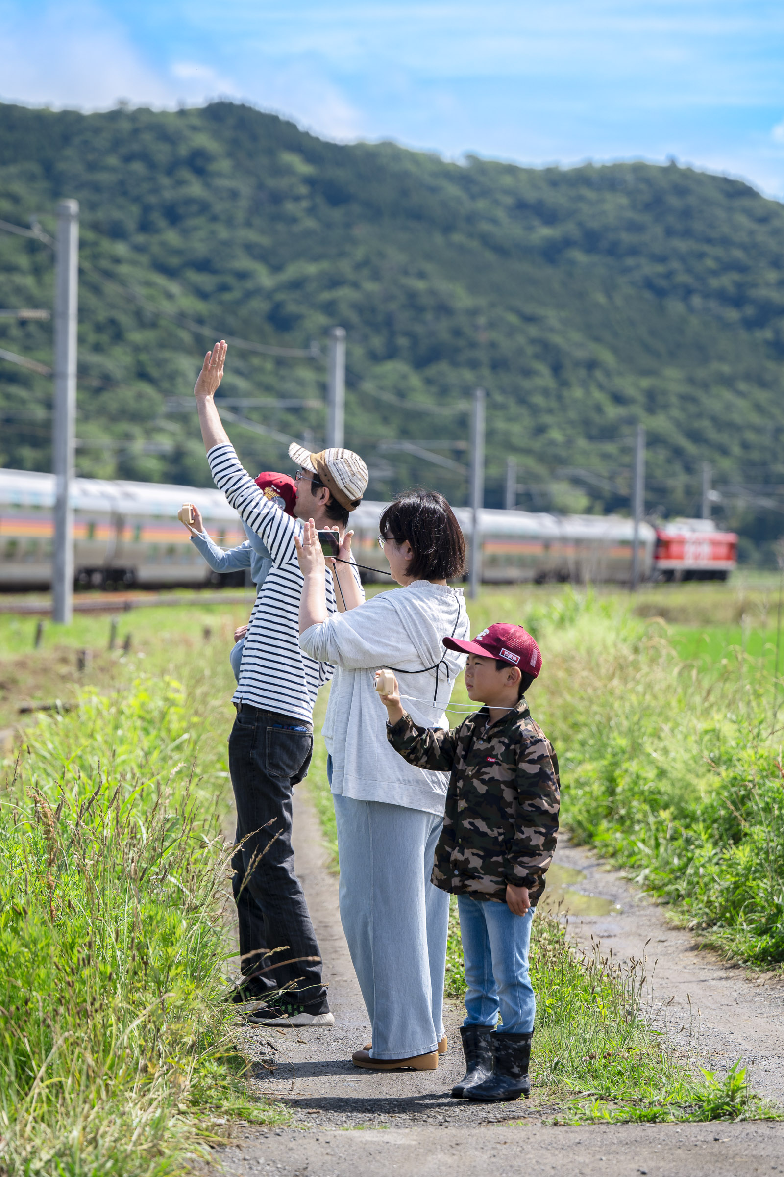 踏切待ちをしていると、近くにお見送りに来た家族連れの姿があった。