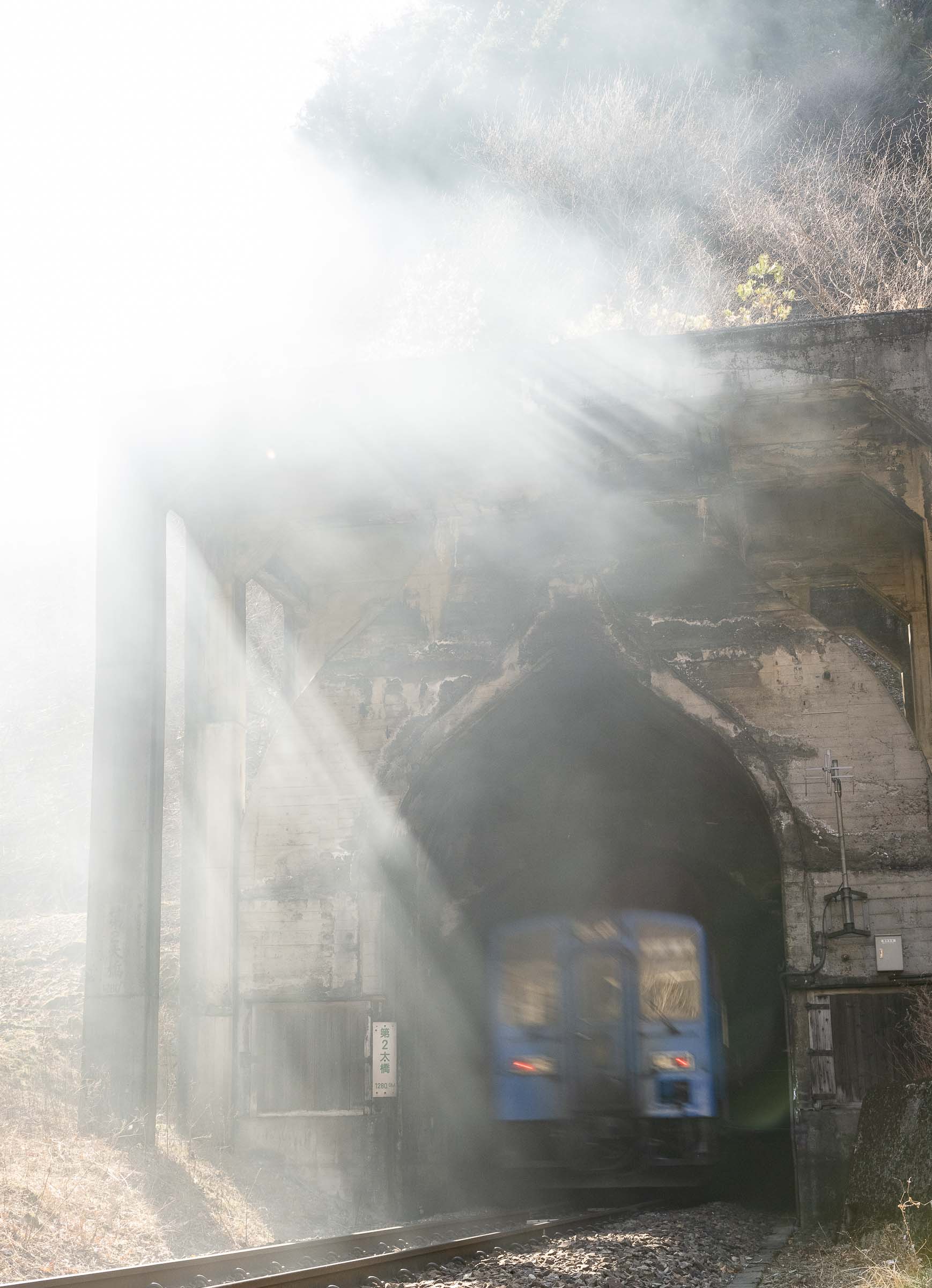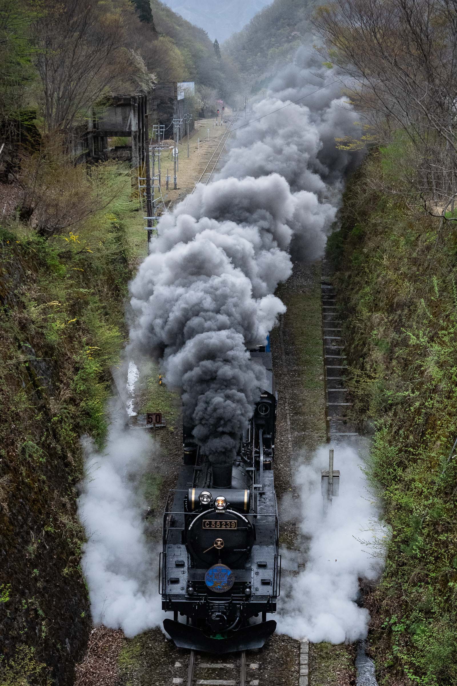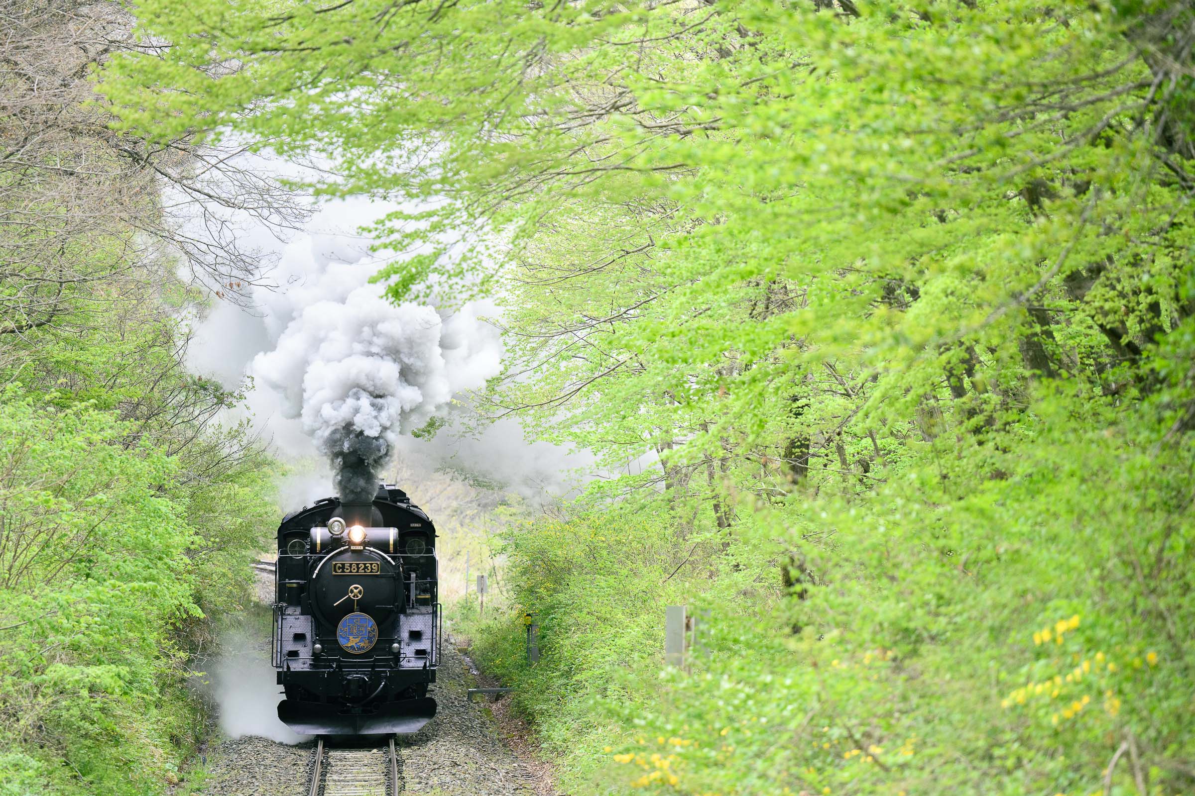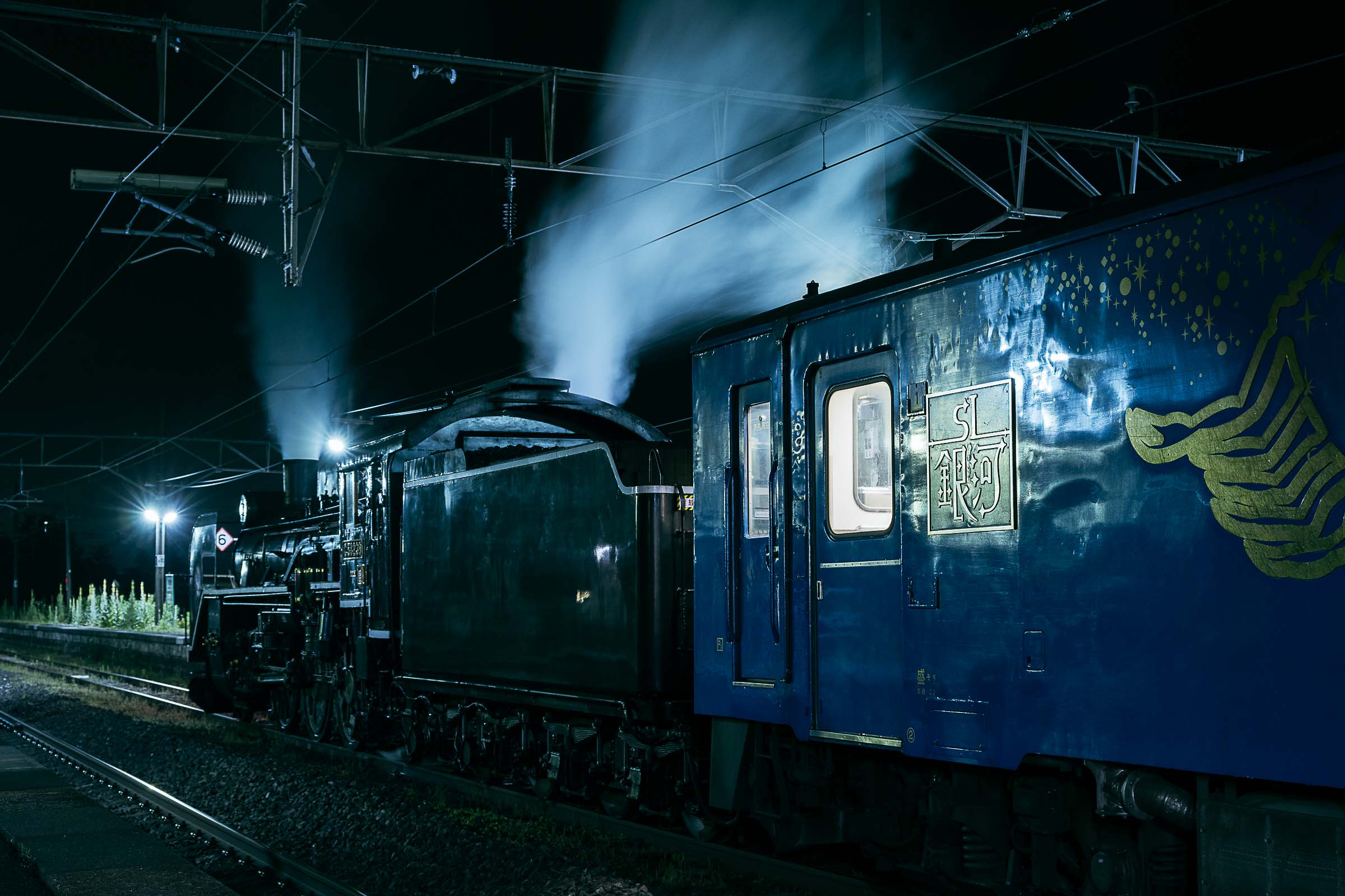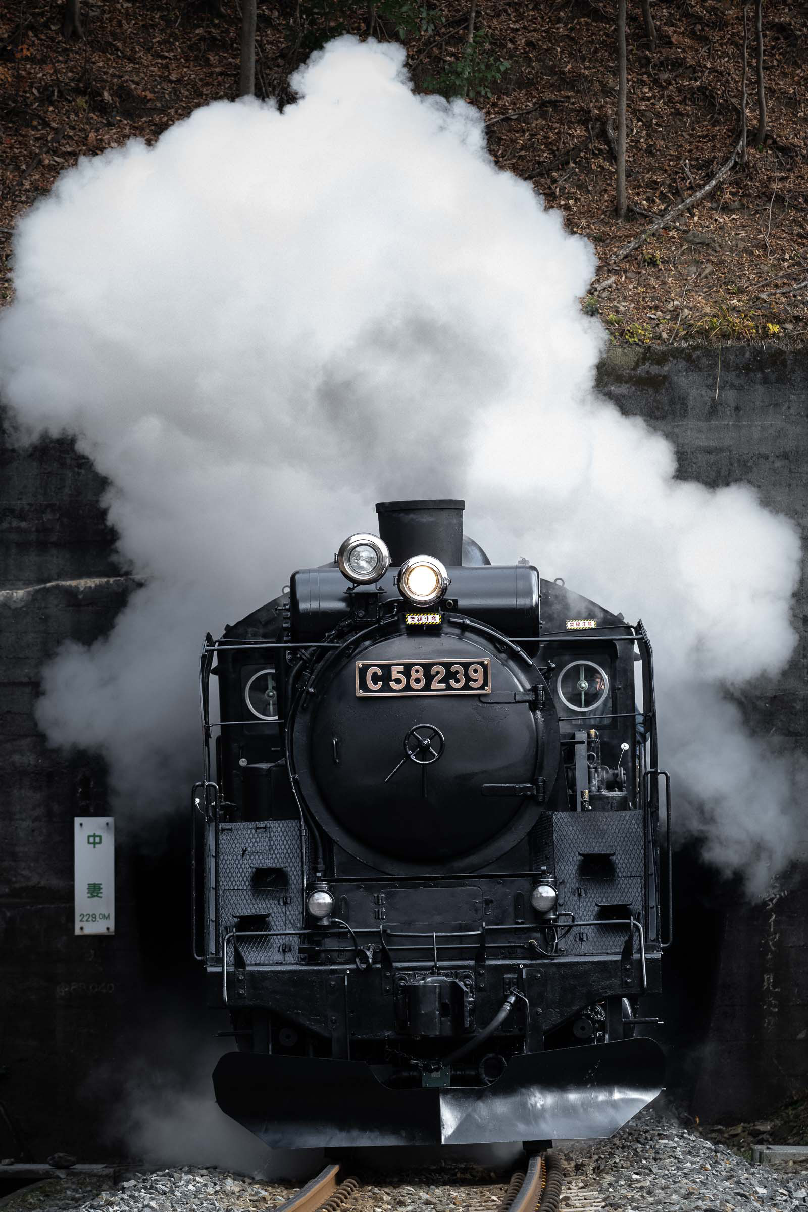 SL銀河の客車はキハ141系改造車(PDC)であり、動力をもった気動車である。大きな役割の一つとして、SLの負担軽減のための急勾配区間での後押しがある。トンネルが連続する仙人峠越えの最深部、SLの煙は控えめである。裏方でPDCは力いっぱい押している。