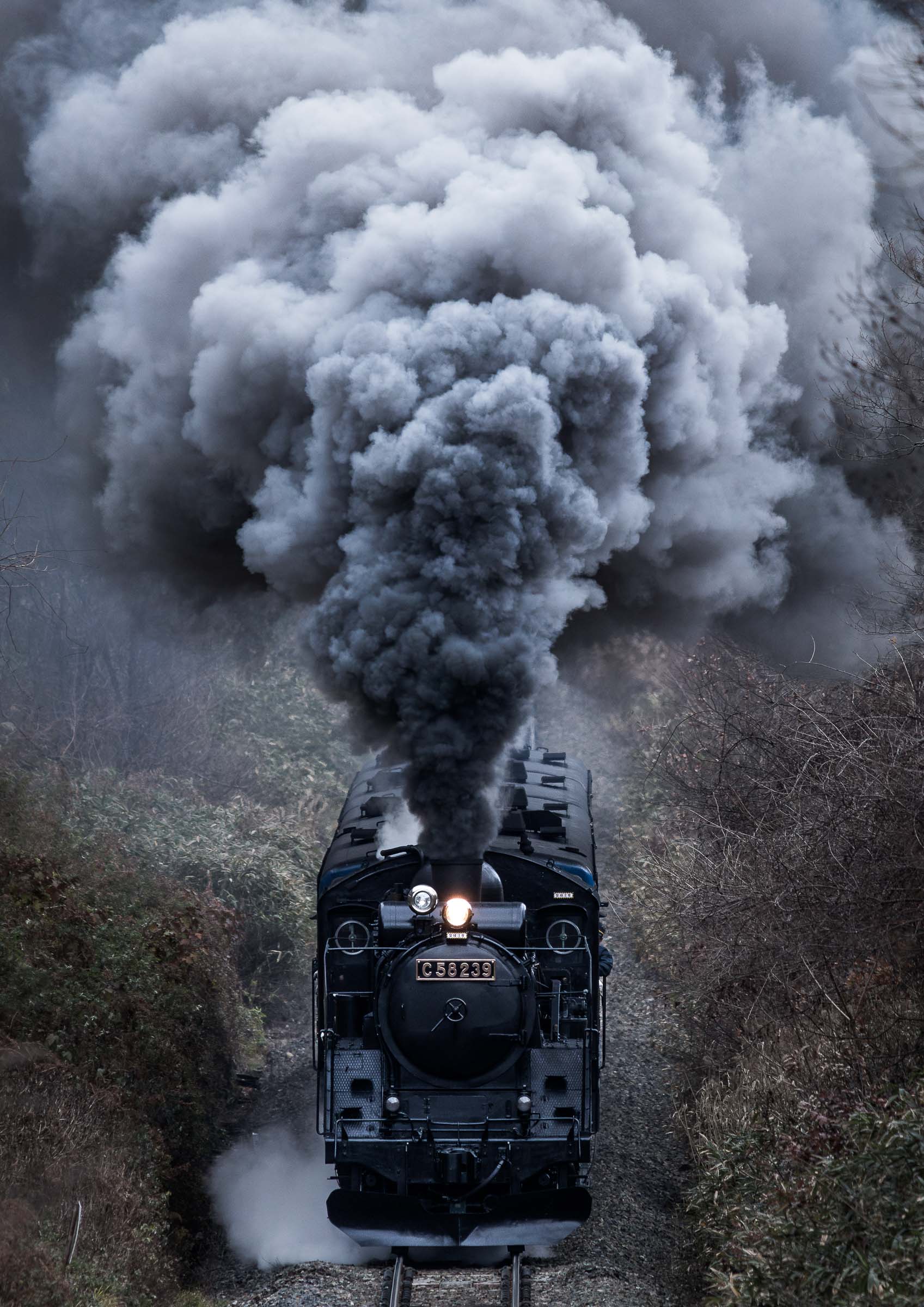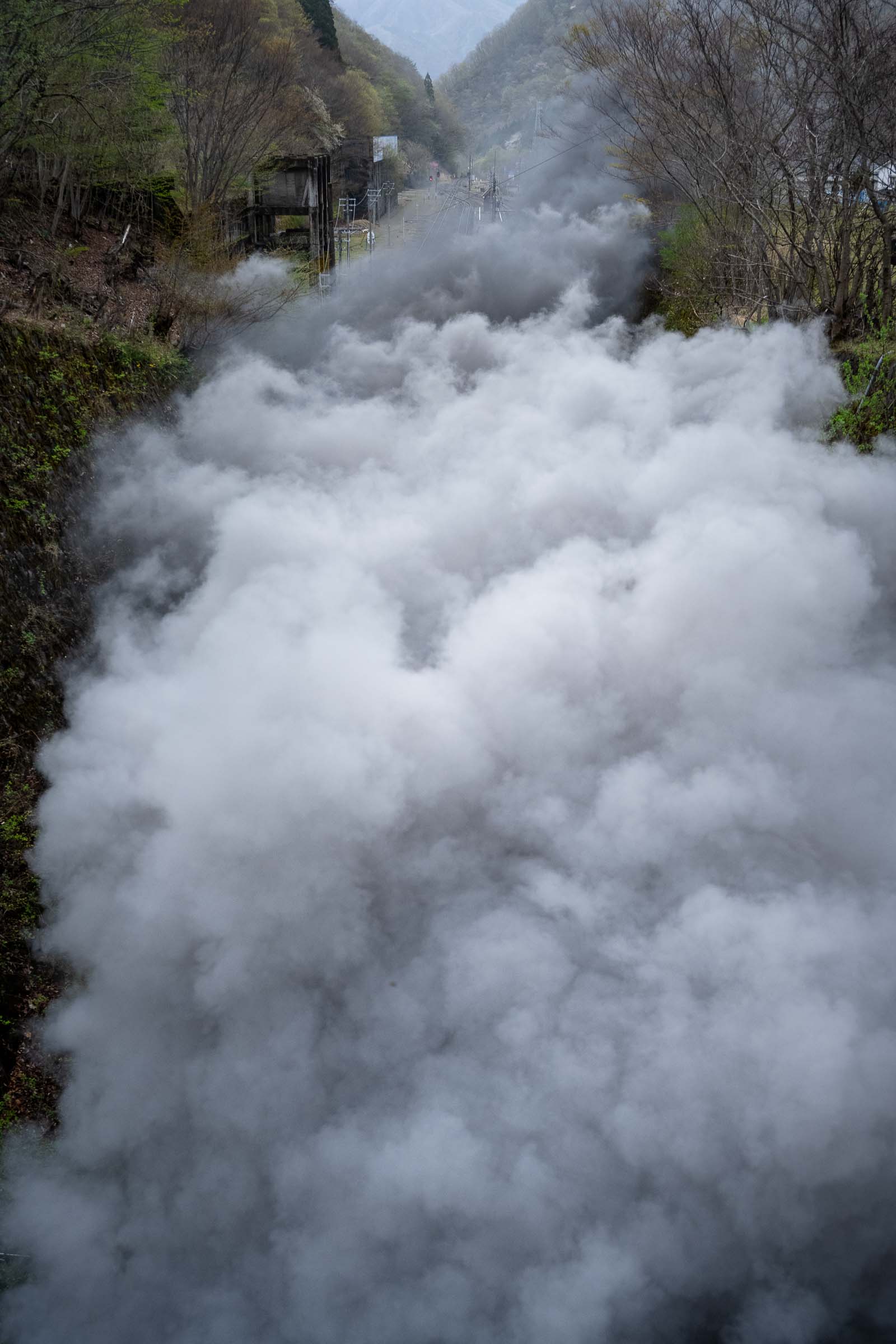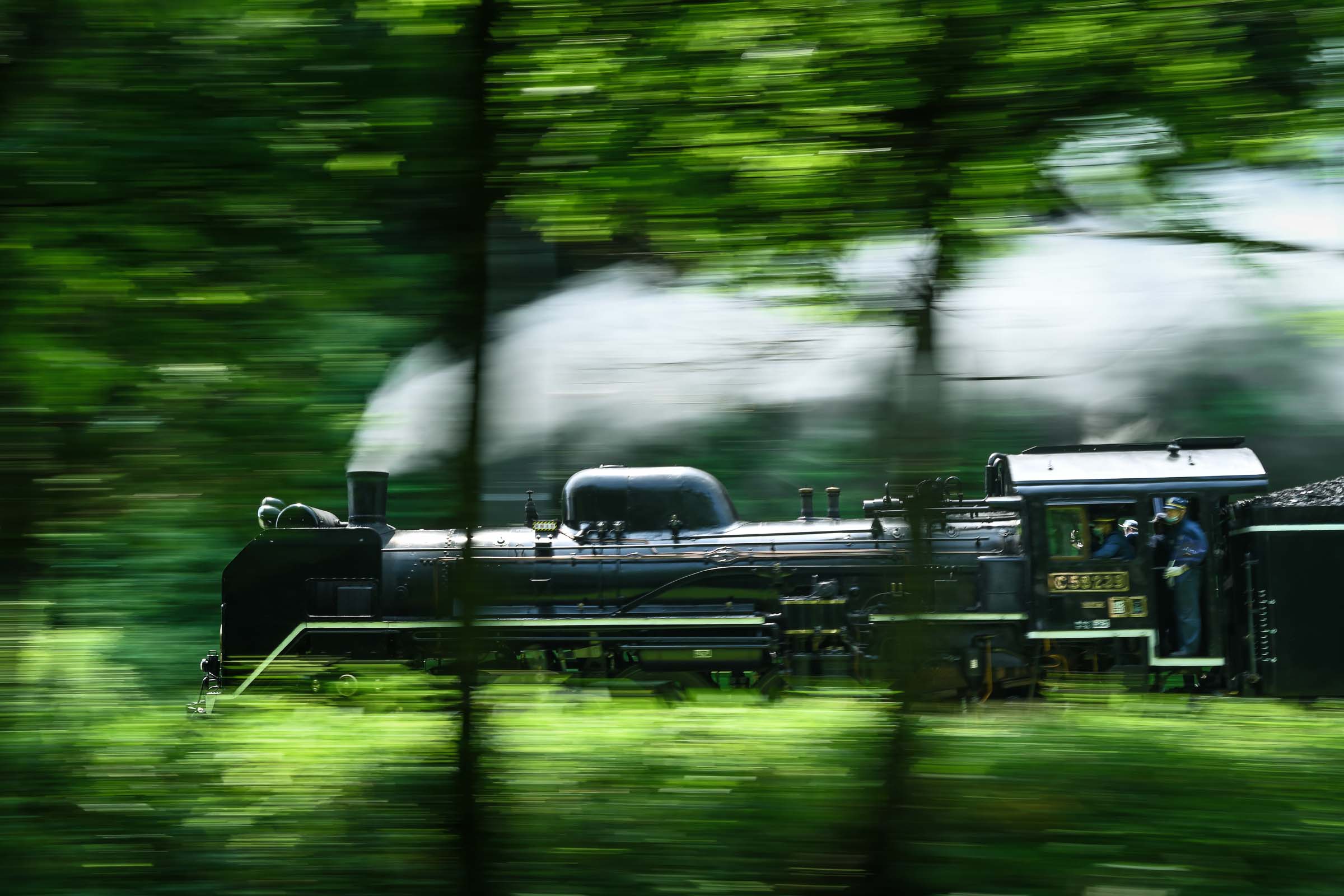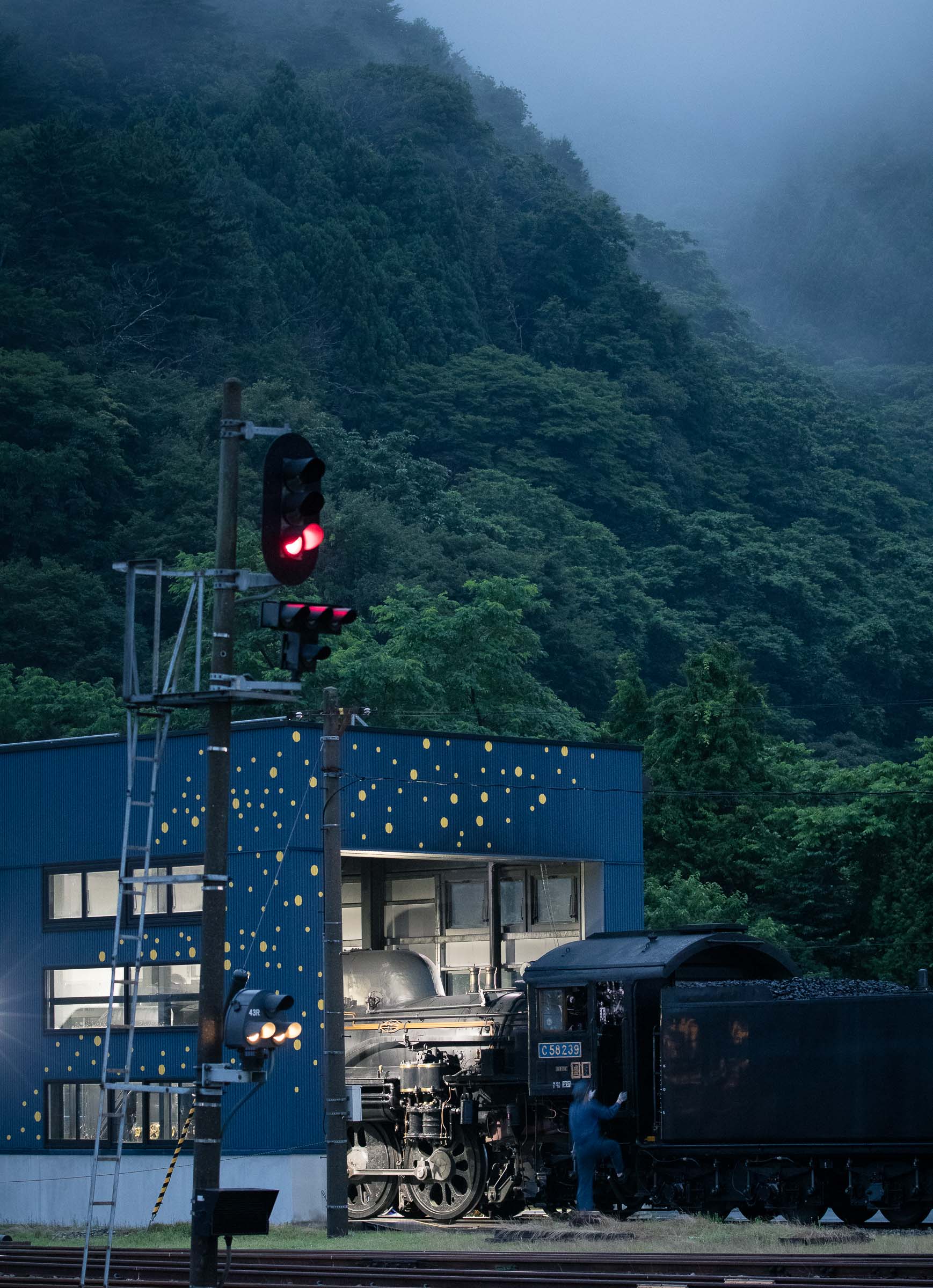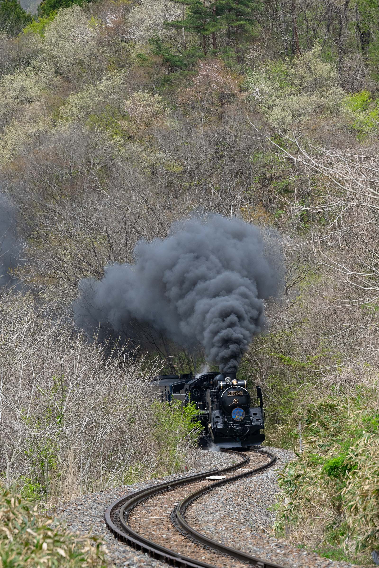 SL銀河の客車はキハ141系改造車(PDC)であり、動力をもった気動車である。大きな役割の一つとして、SLの負担軽減のための急勾配区間での後押しがある。トンネルが連続する仙人峠越えの最深部、SLの煙は控えめである。裏方でPDCは力いっぱい押している。