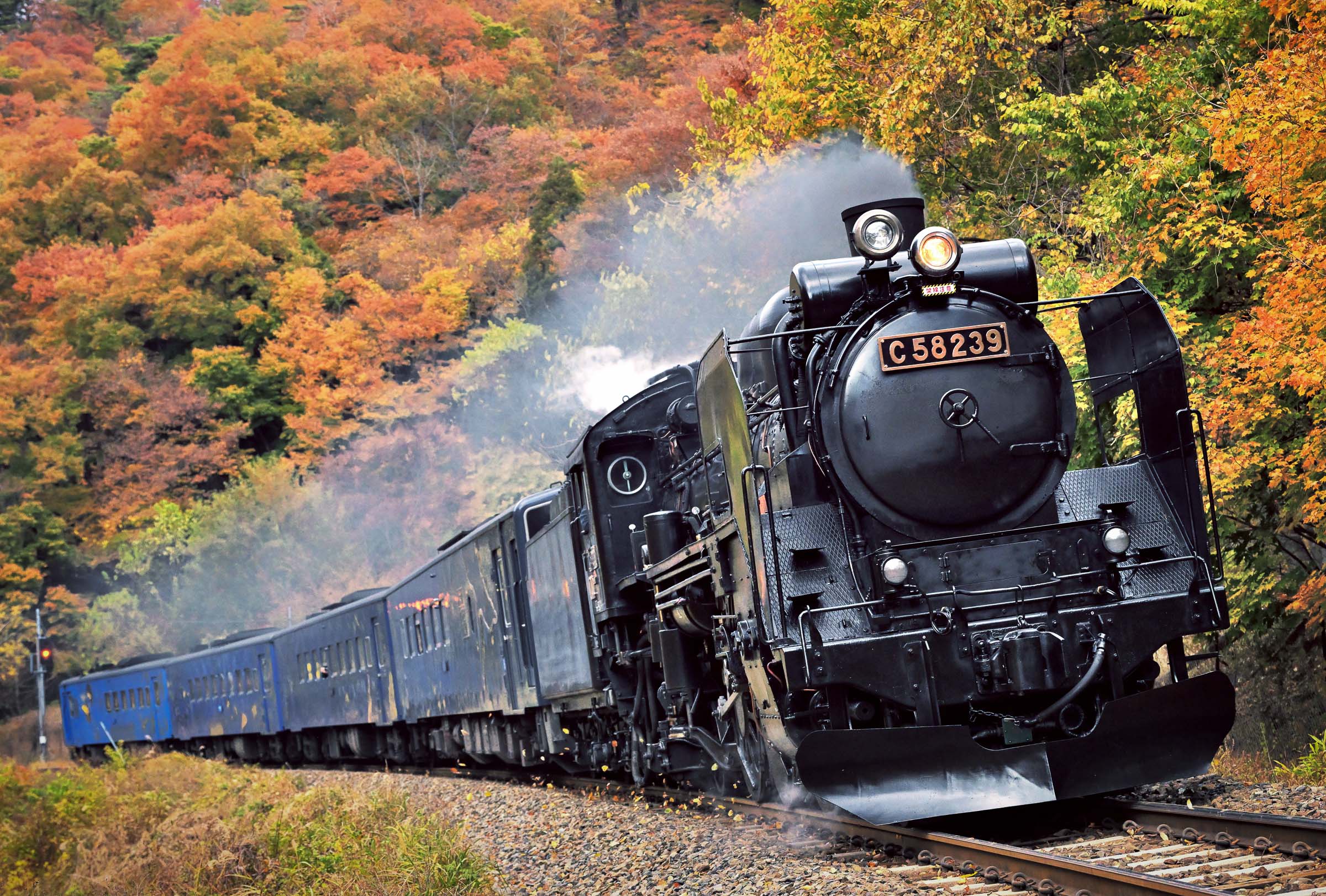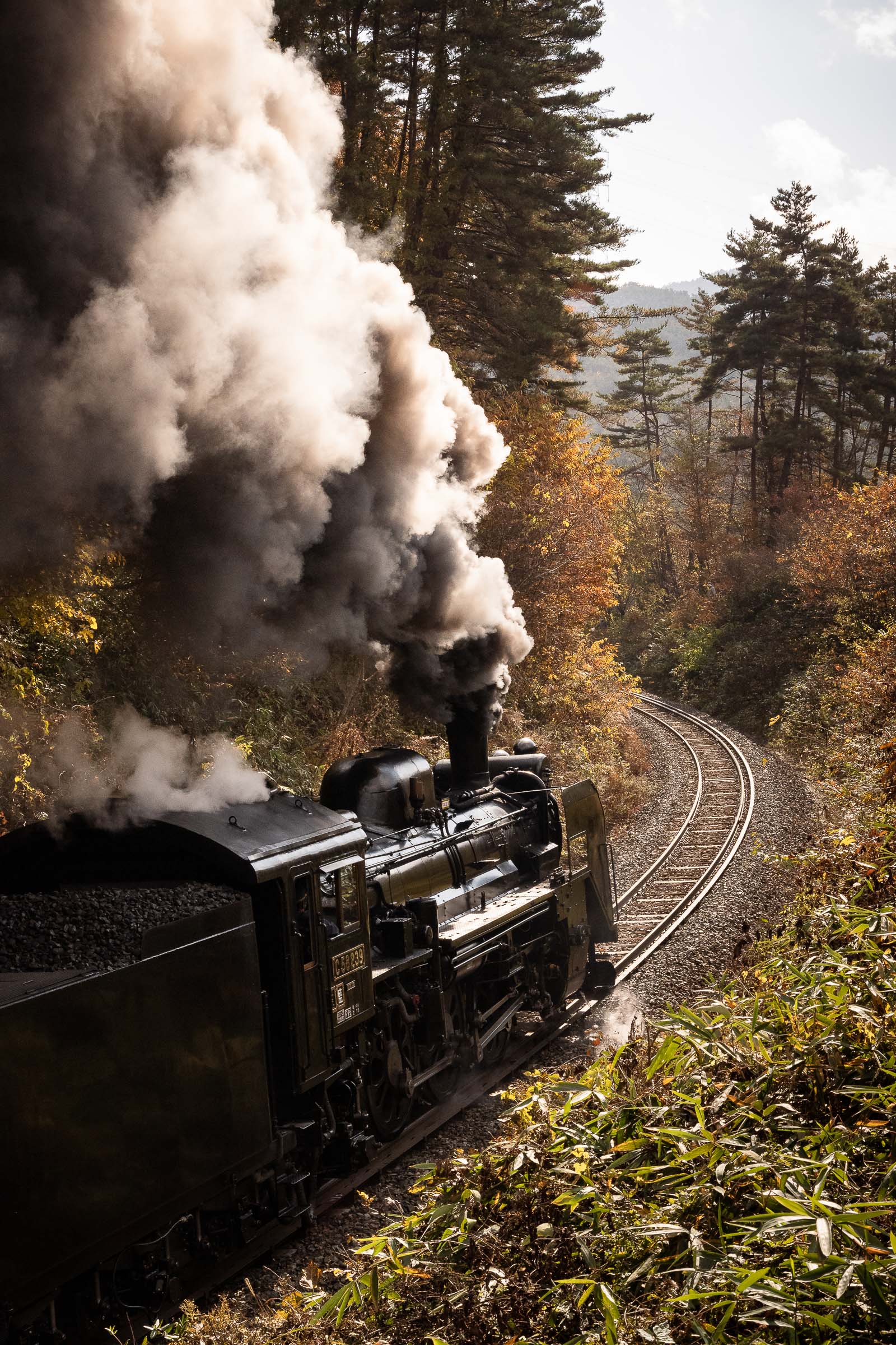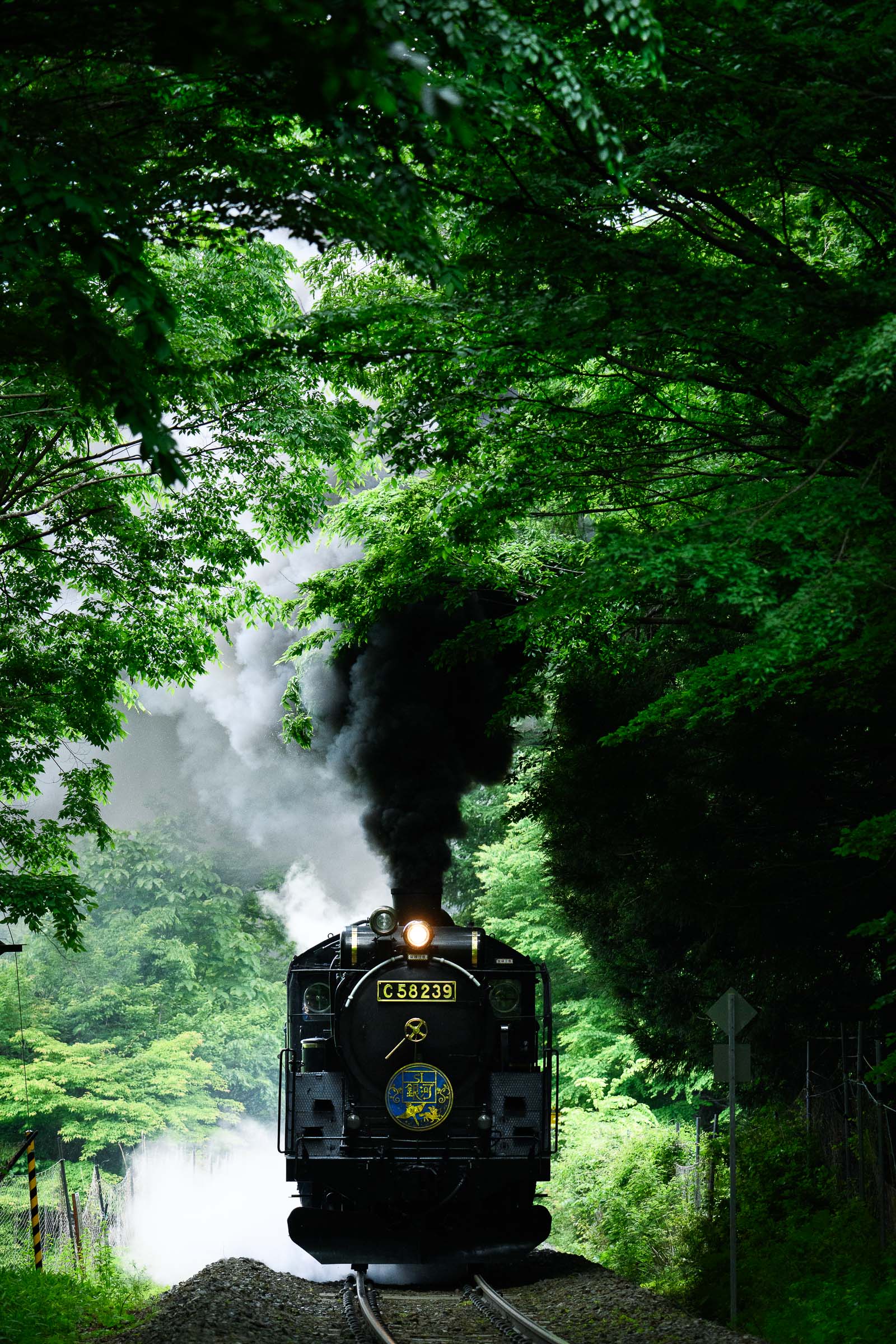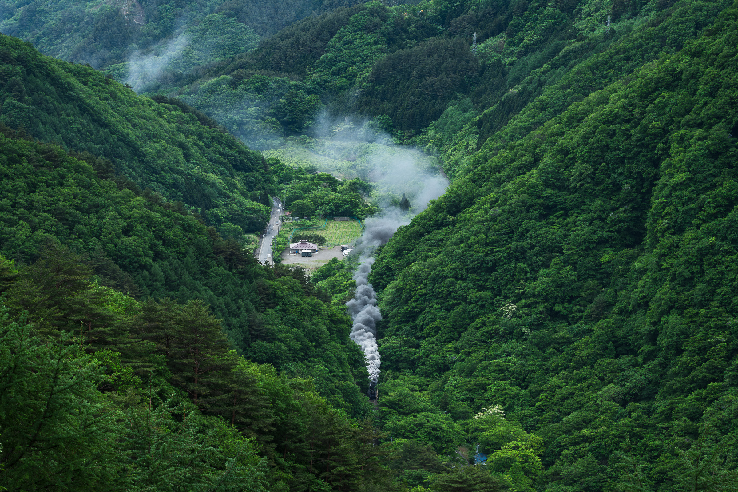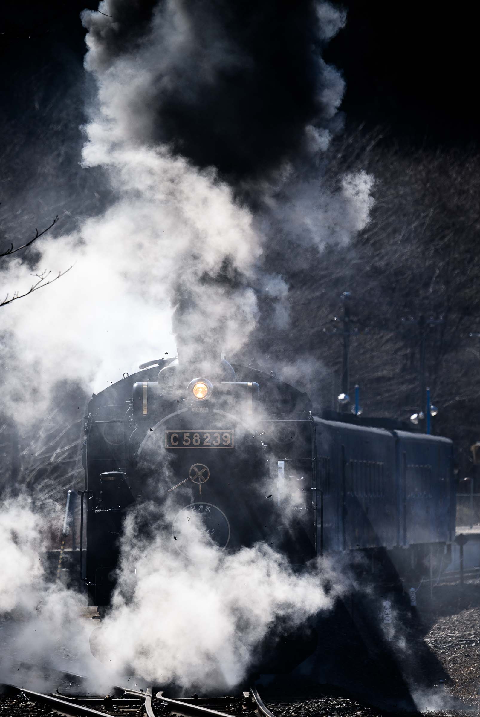 SL銀河の客車はキハ141系改造車(PDC)であり、動力をもった気動車である。大きな役割の一つとして、SLの負担軽減のための急勾配区間での後押しがある。トンネルが連続する仙人峠越えの最深部、SLの煙は控えめである。裏方でPDCは力いっぱい押している。