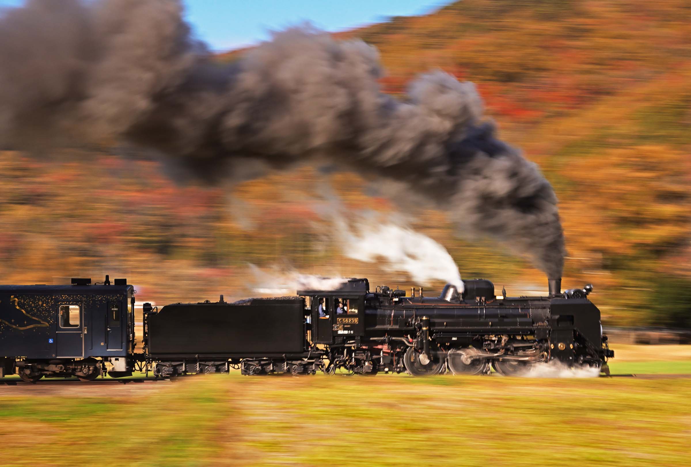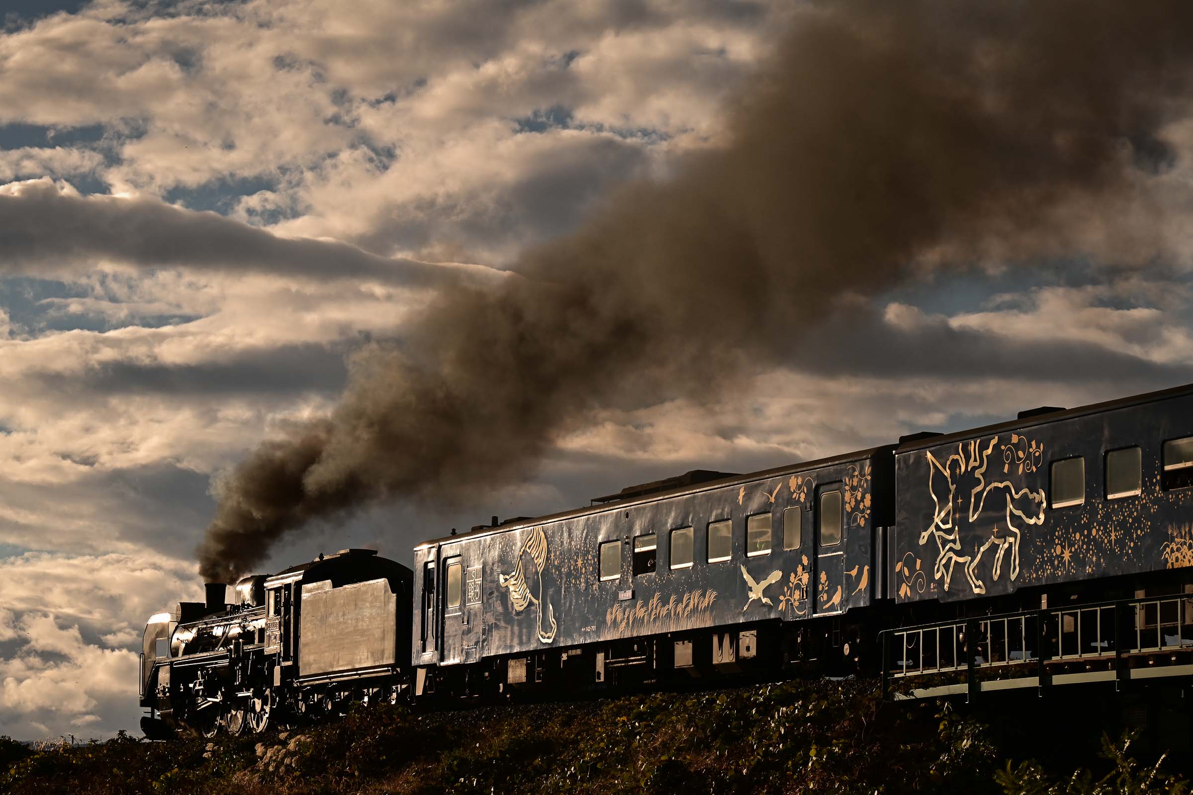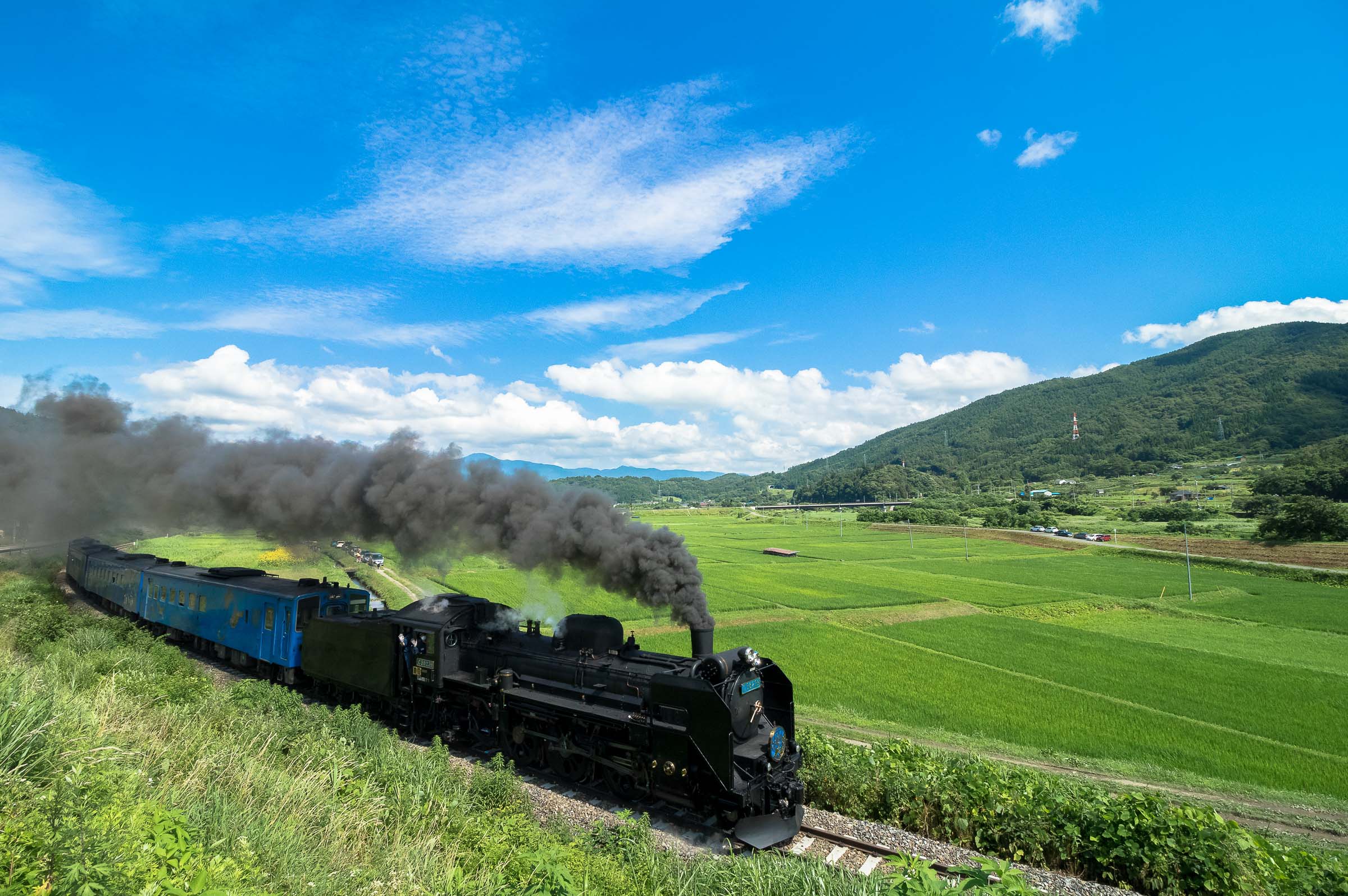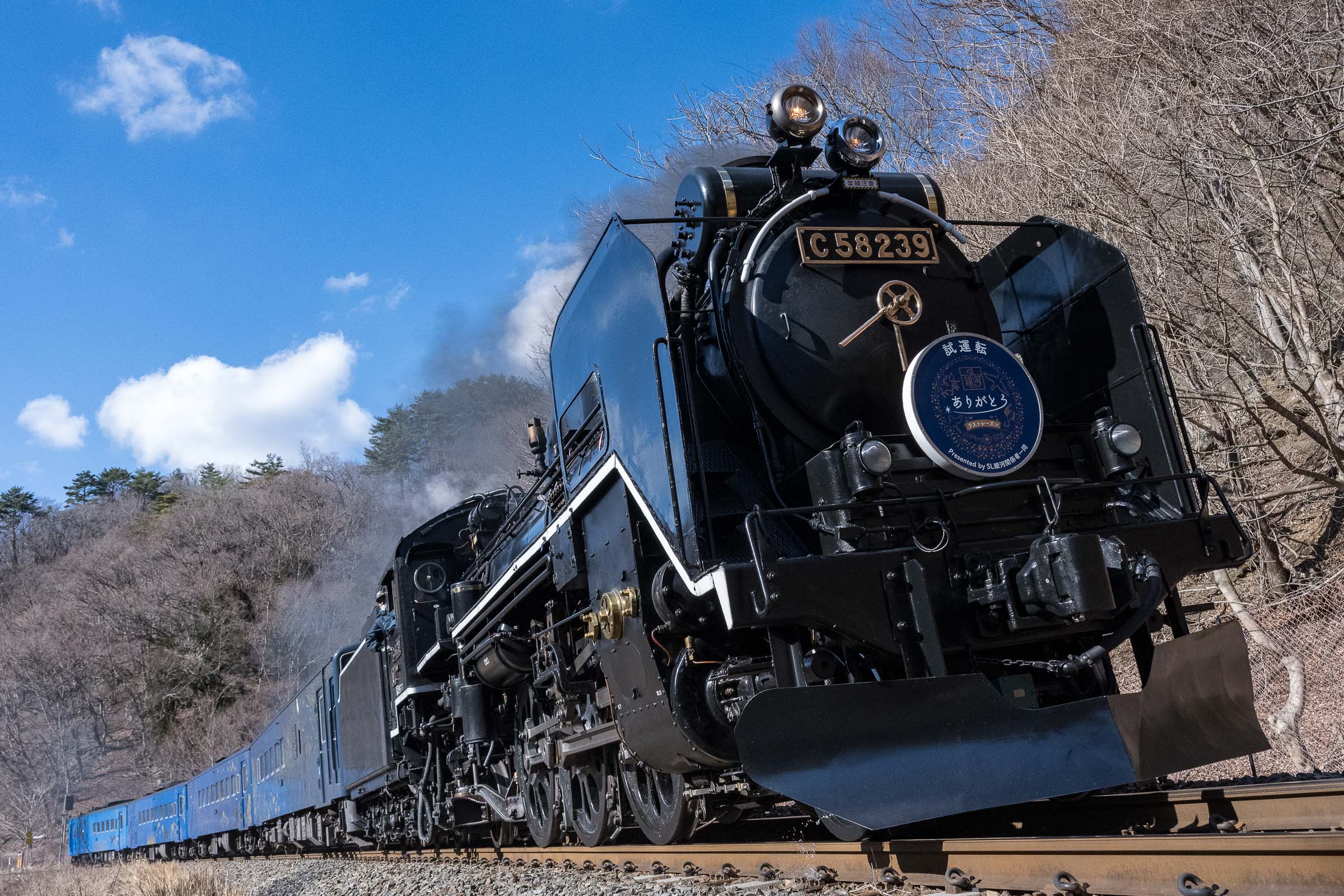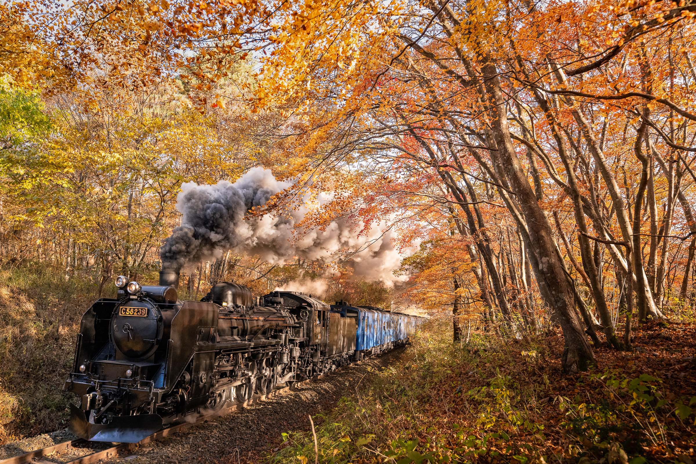 SL銀河の客車はキハ141系改造車(PDC)であり、動力をもった気動車である。大きな役割の一つとして、SLの負担軽減のための急勾配区間での後押しがある。トンネルが連続する仙人峠越えの最深部、SLの煙は控えめである。裏方でPDCは力いっぱい押している。