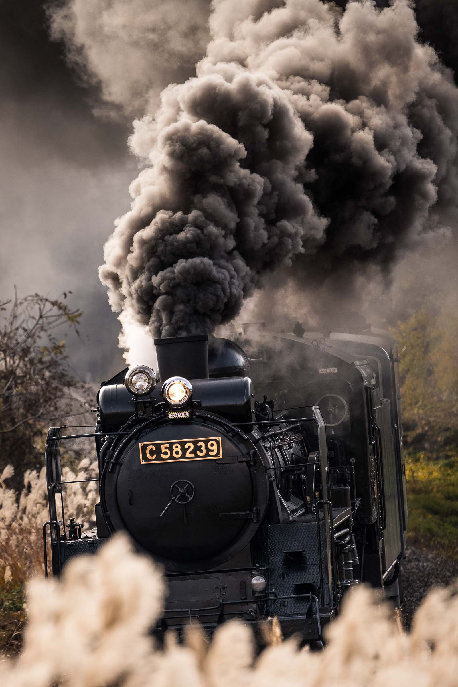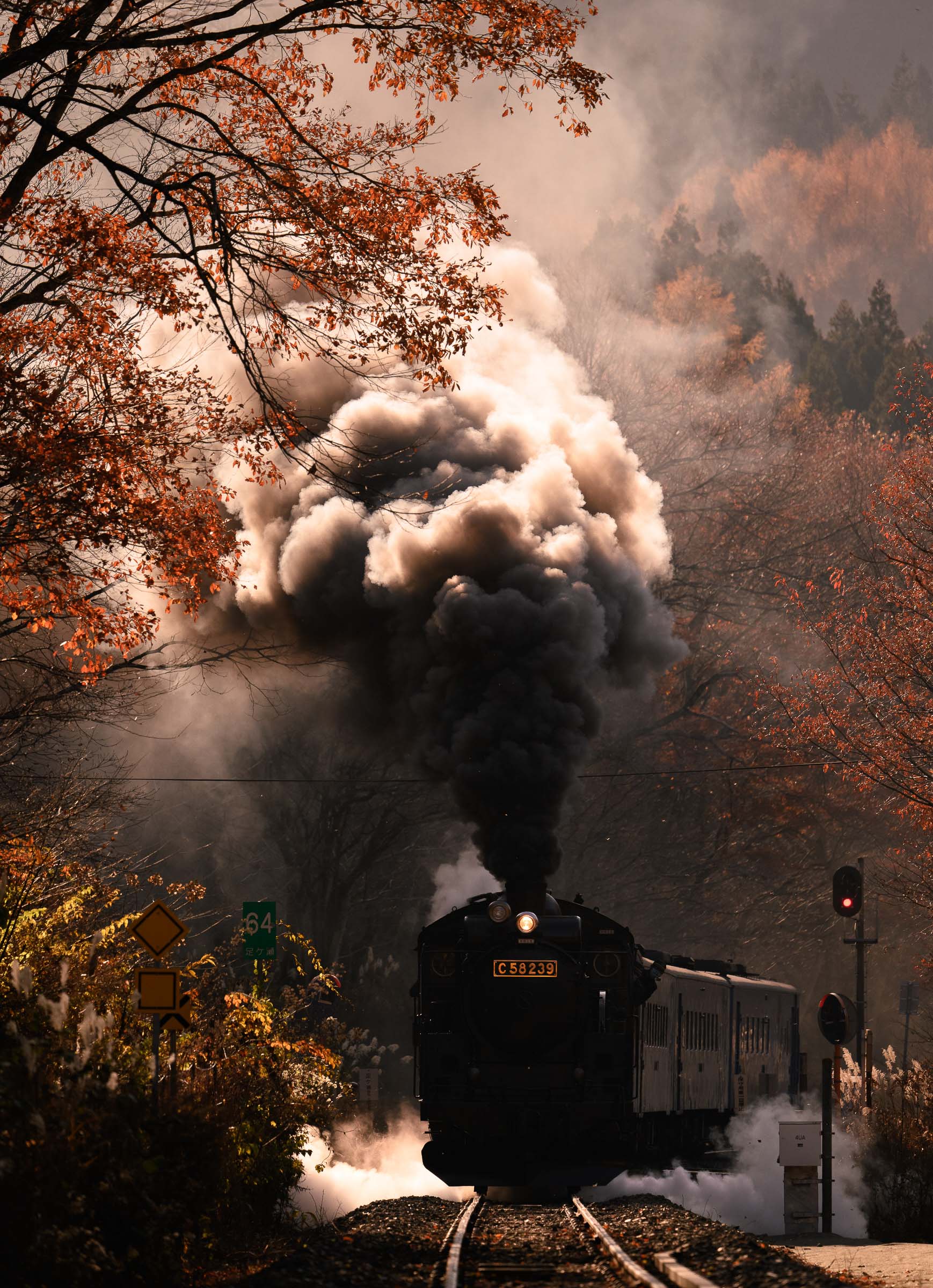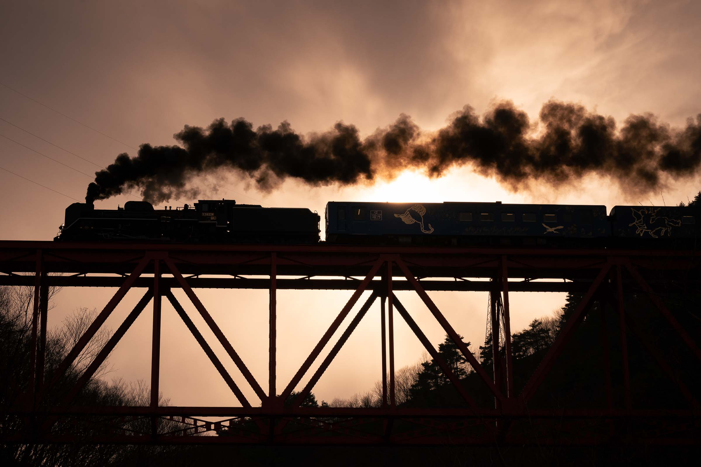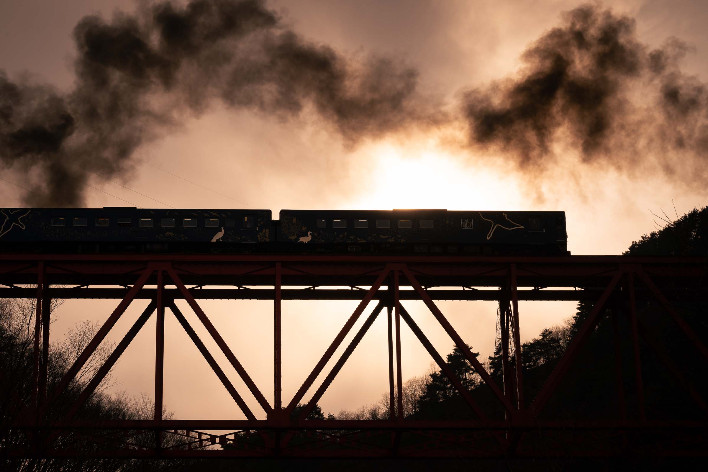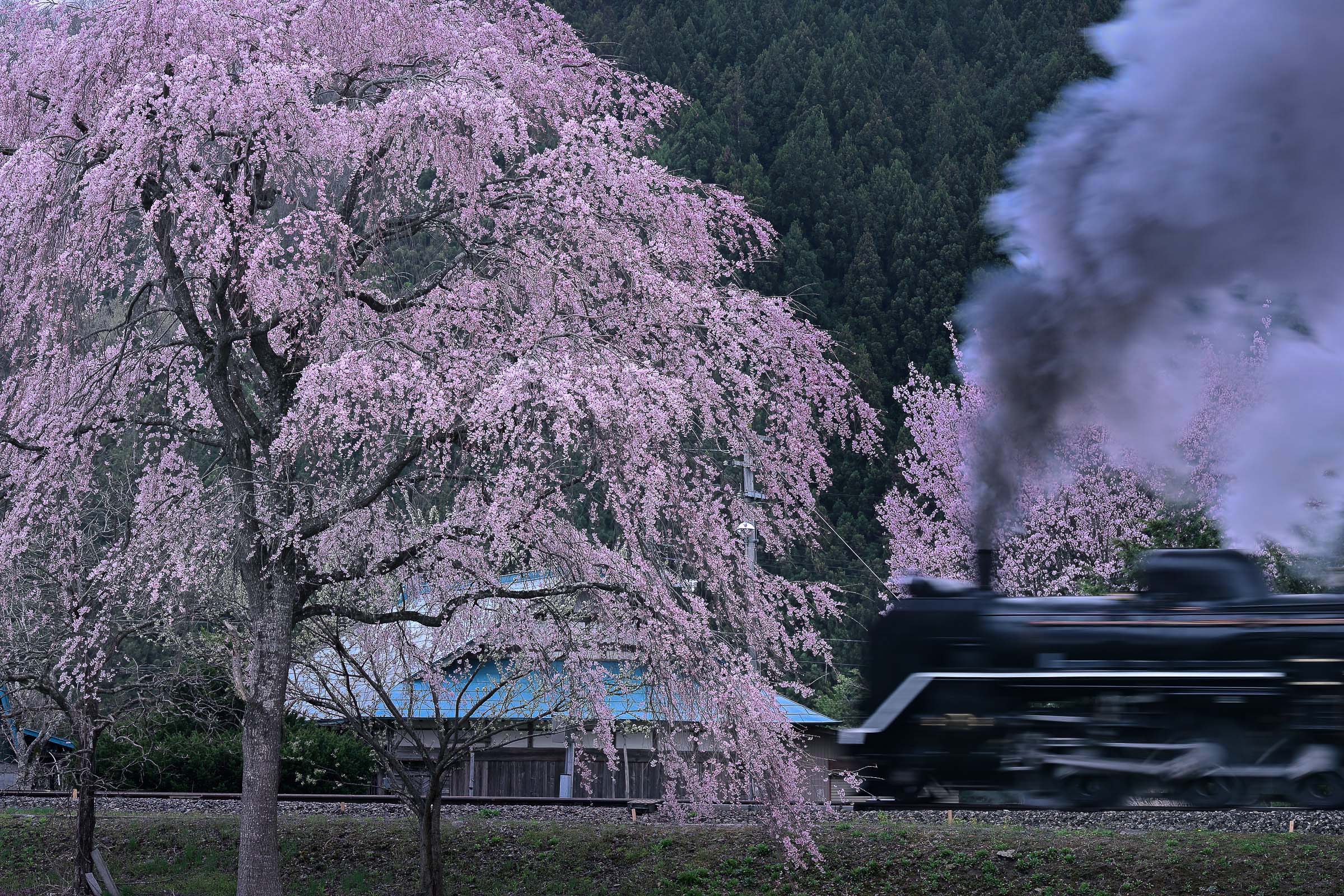 SL銀河の客車はキハ141系改造車(PDC)であり、動力をもった気動車である。大きな役割の一つとして、SLの負担軽減のための急勾配区間での後押しがある。トンネルが連続する仙人峠越えの最深部、SLの煙は控えめである。裏方でPDCは力いっぱい押している。