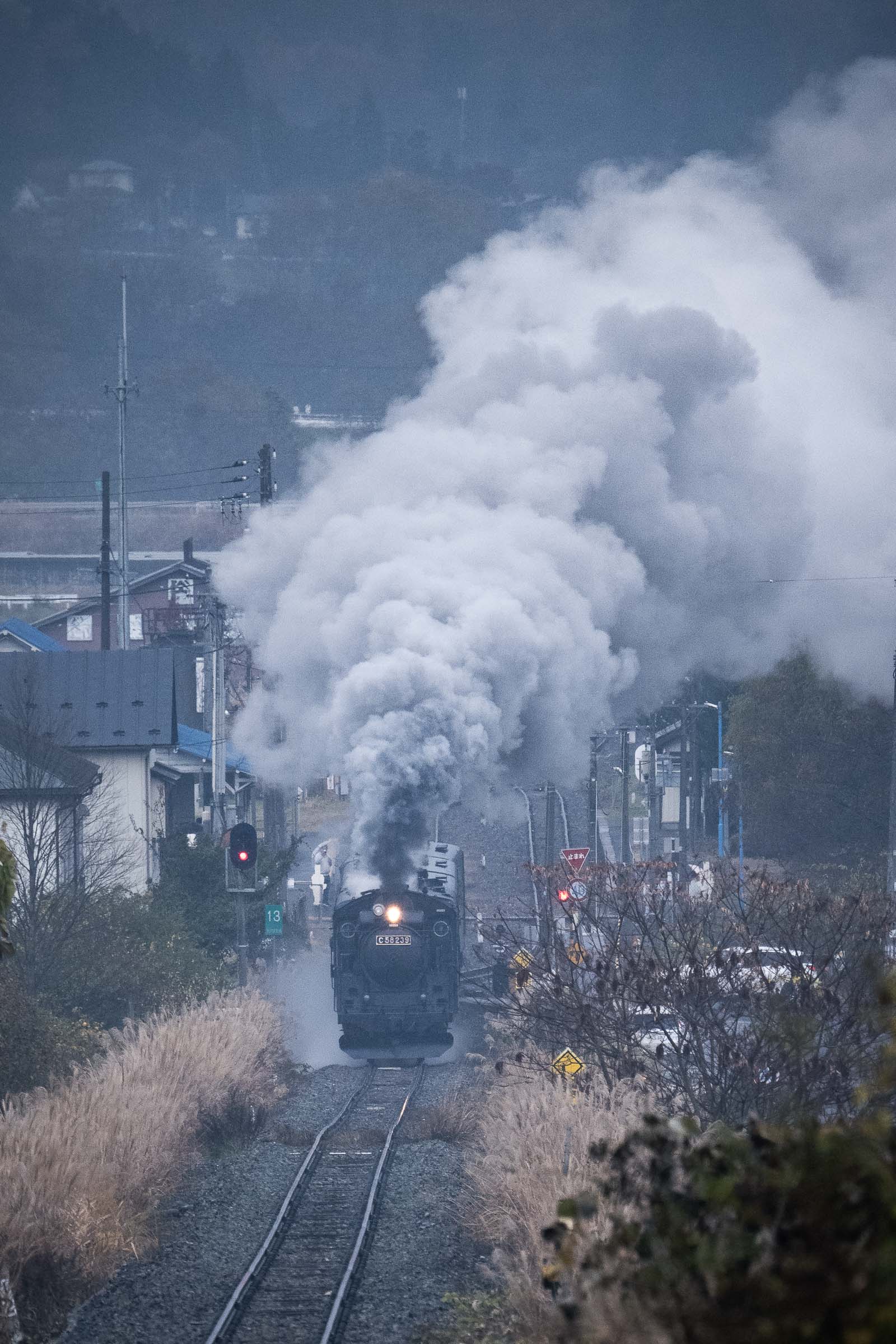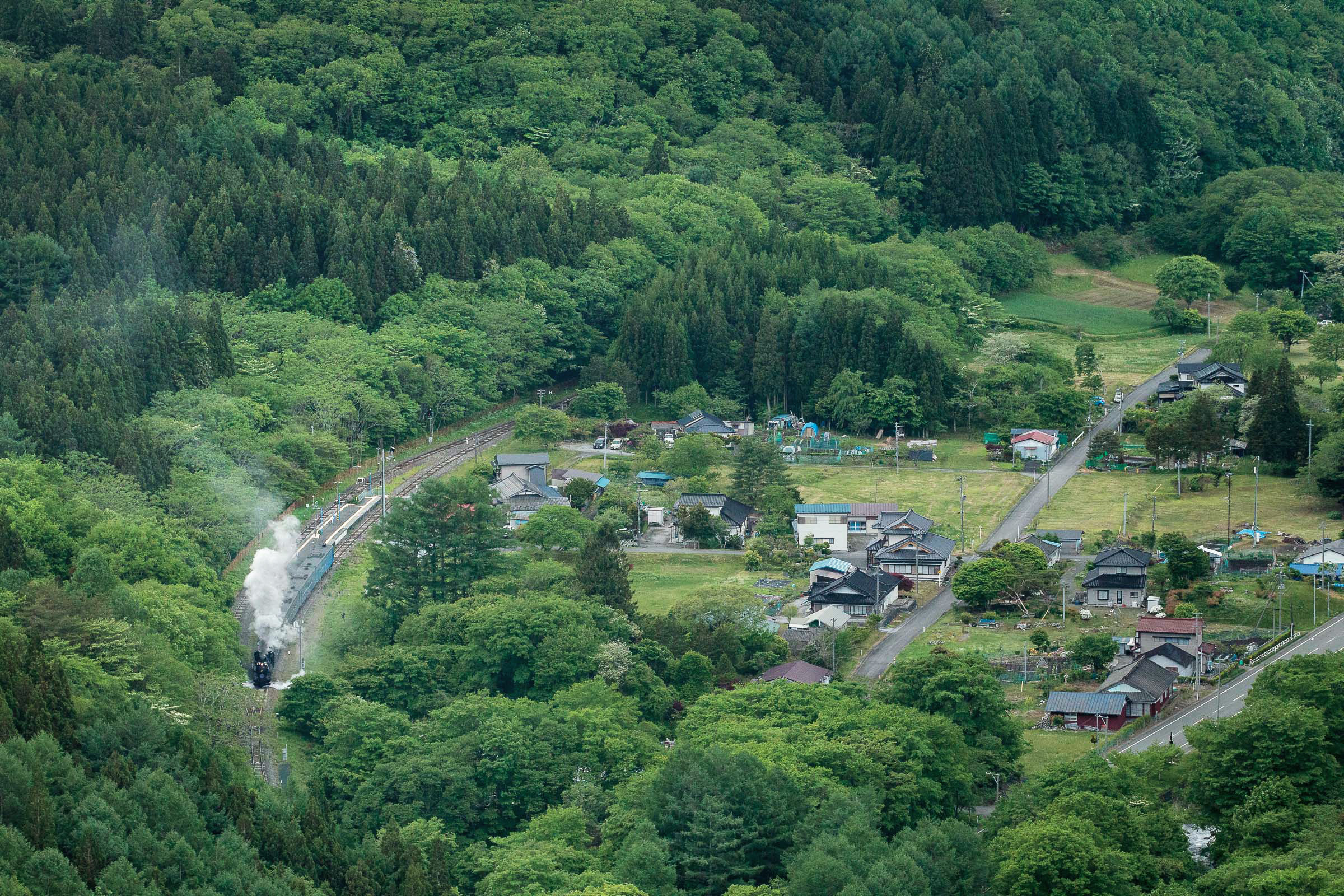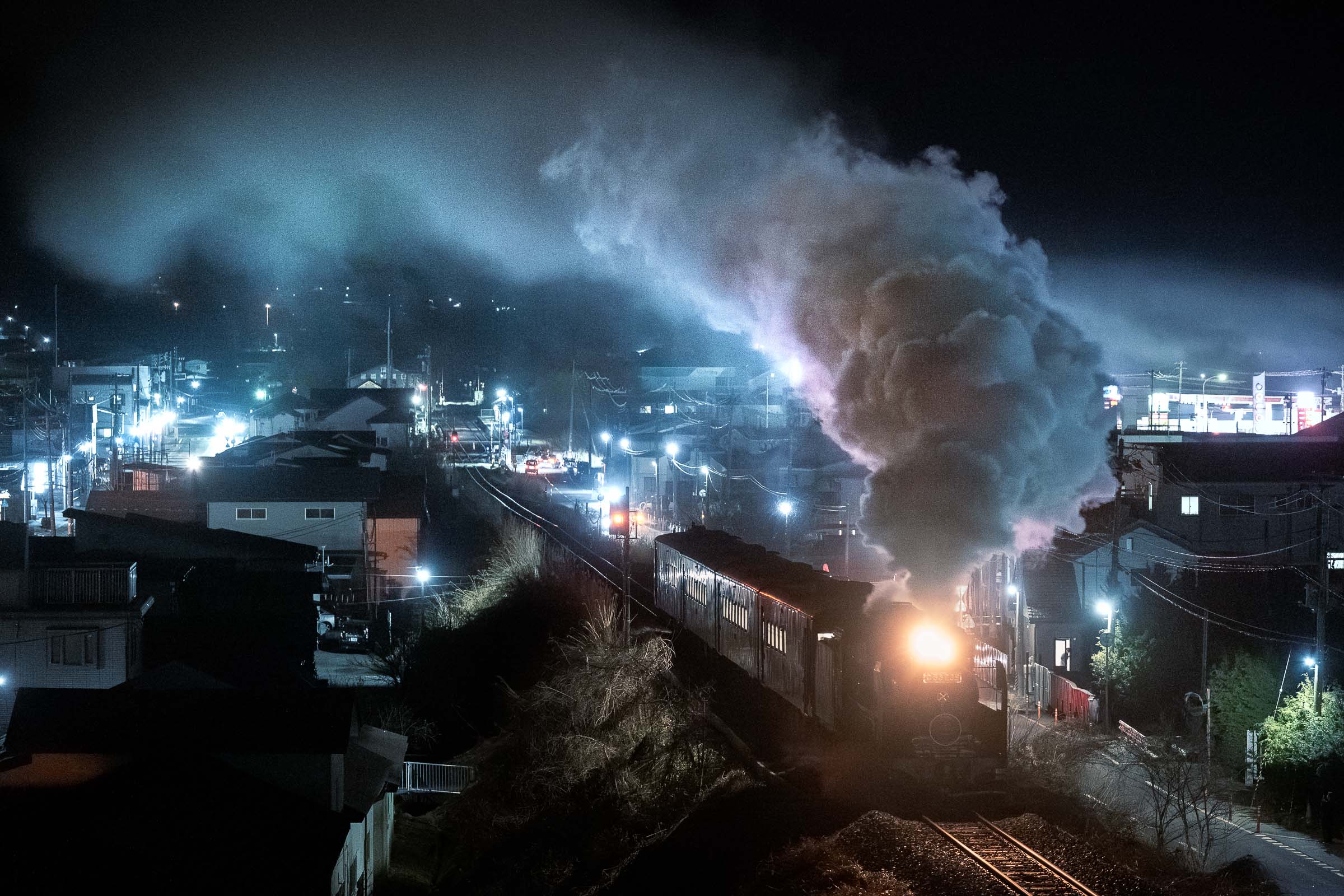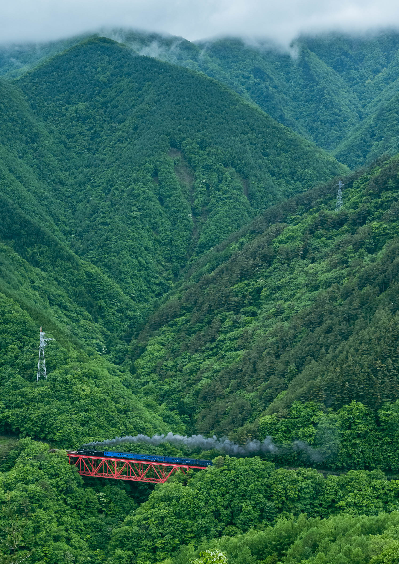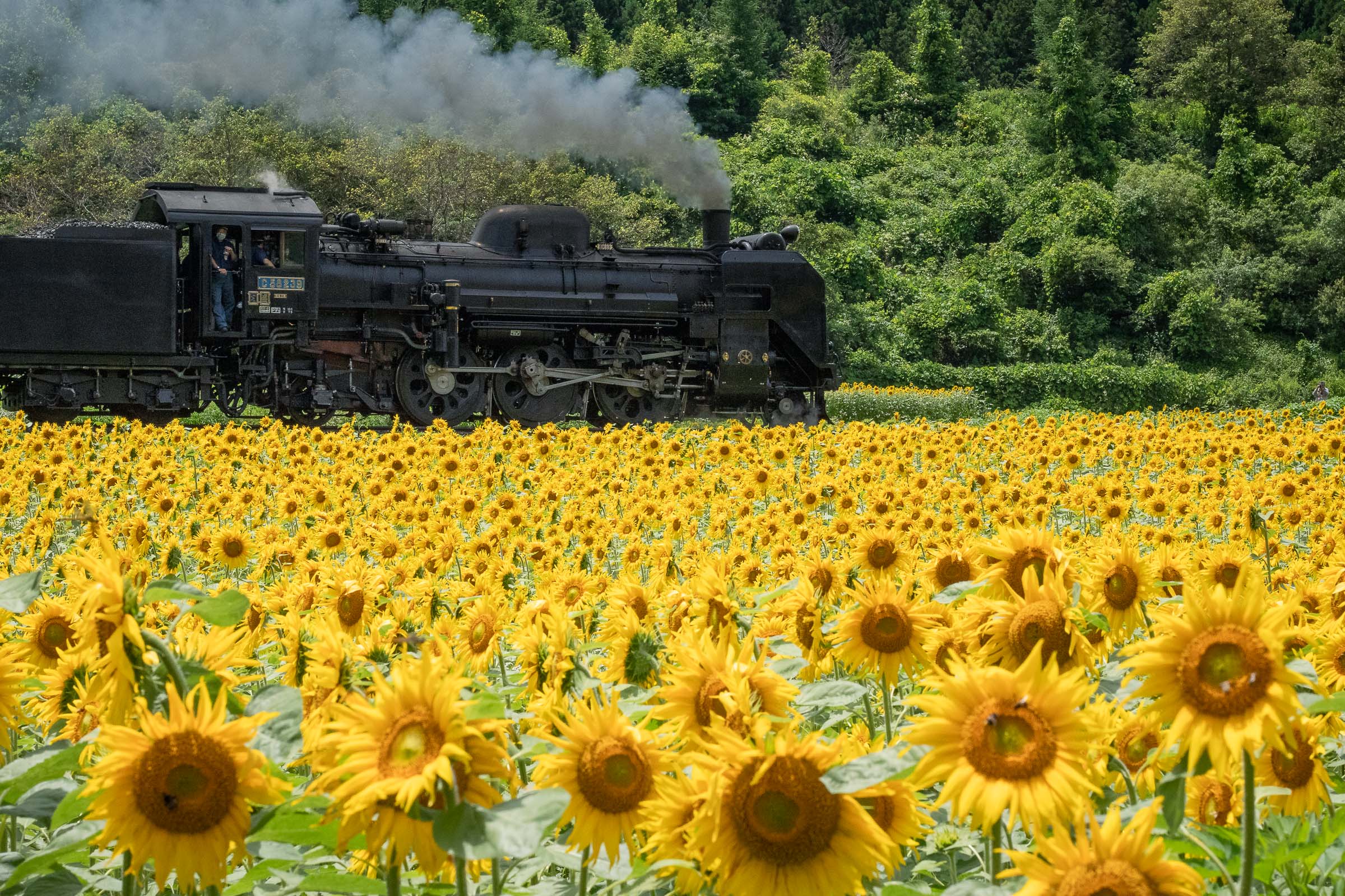 SL銀河の客車はキハ141系改造車(PDC)であり、動力をもった気動車である。大きな役割の一つとして、SLの負担軽減のための急勾配区間での後押しがある。トンネルが連続する仙人峠越えの最深部、SLの煙は控えめである。裏方でPDCは力いっぱい押している。