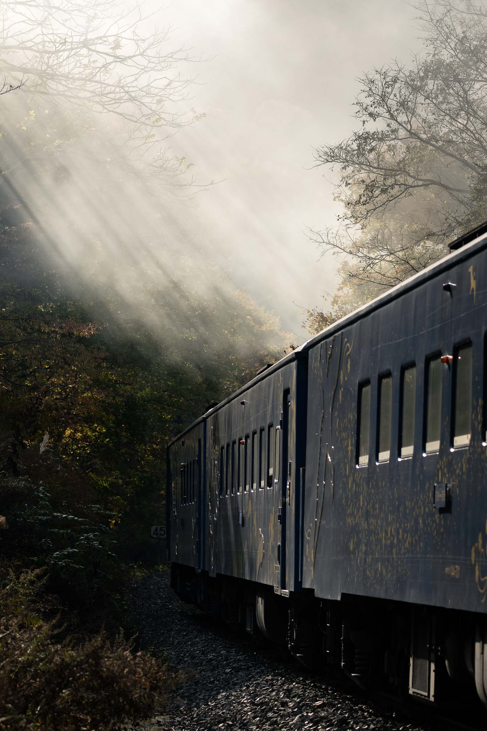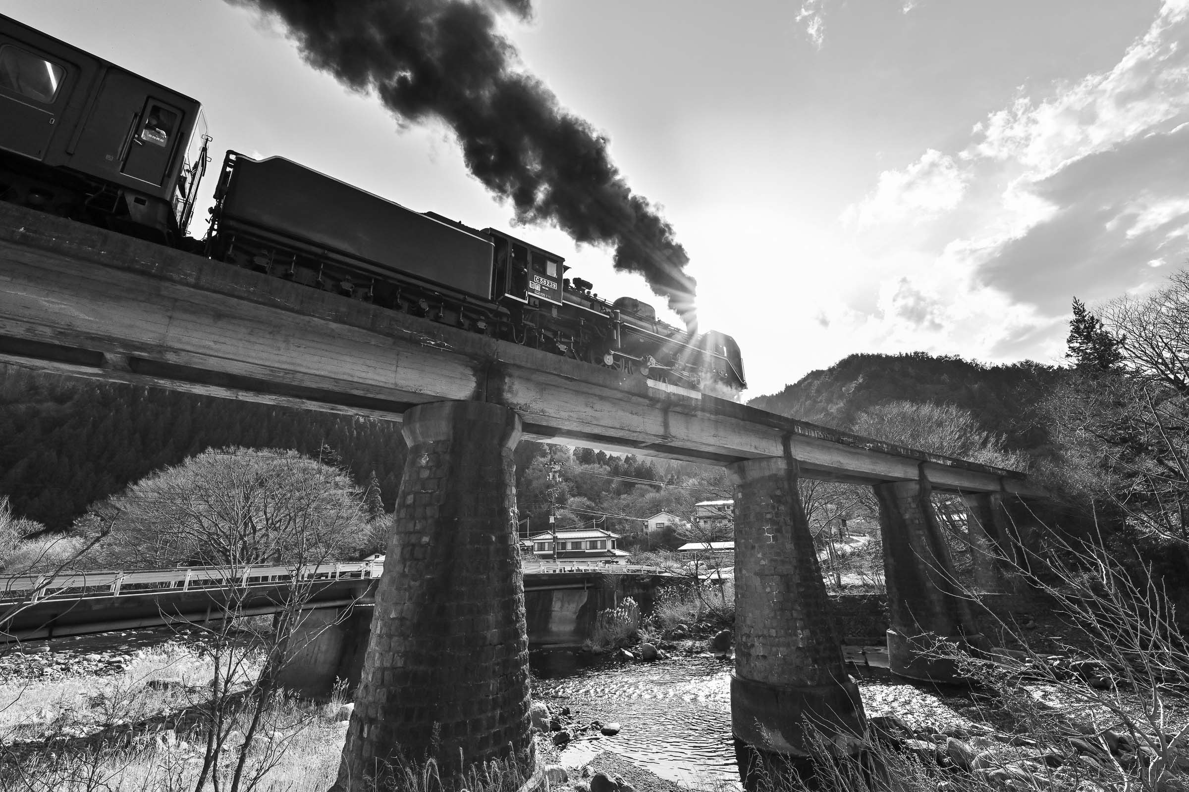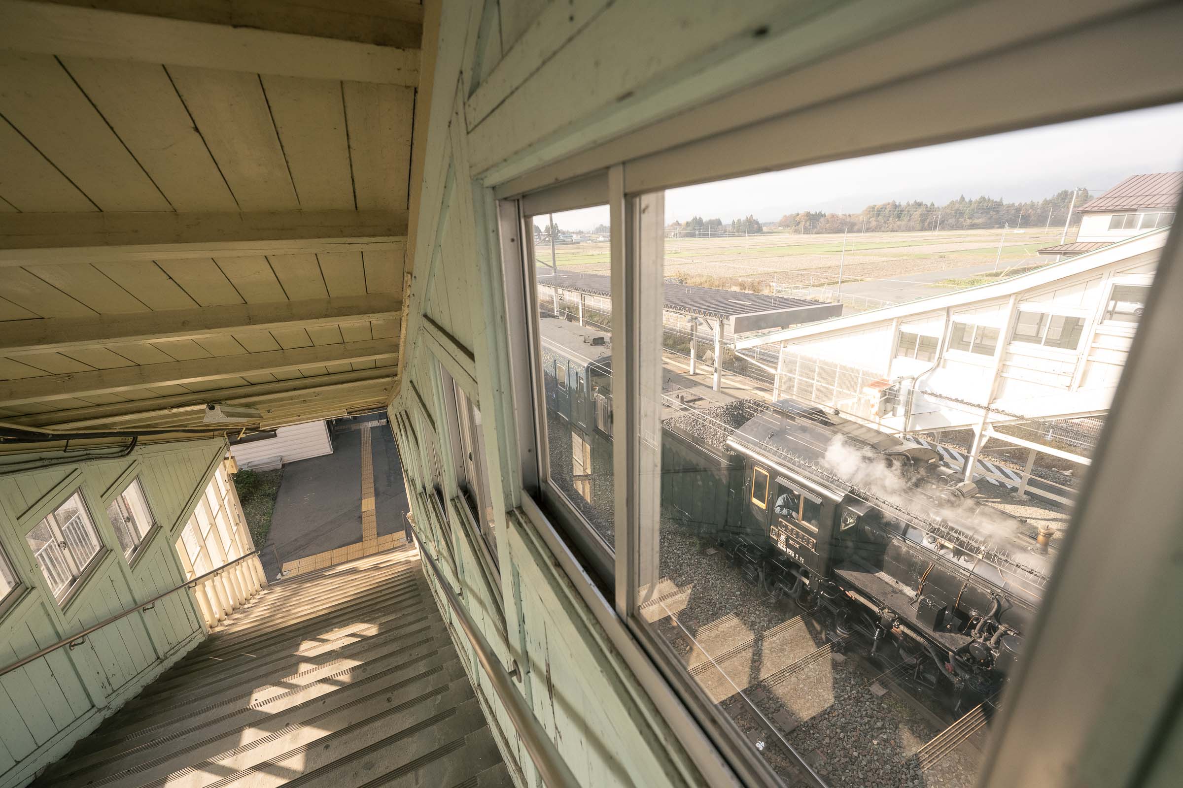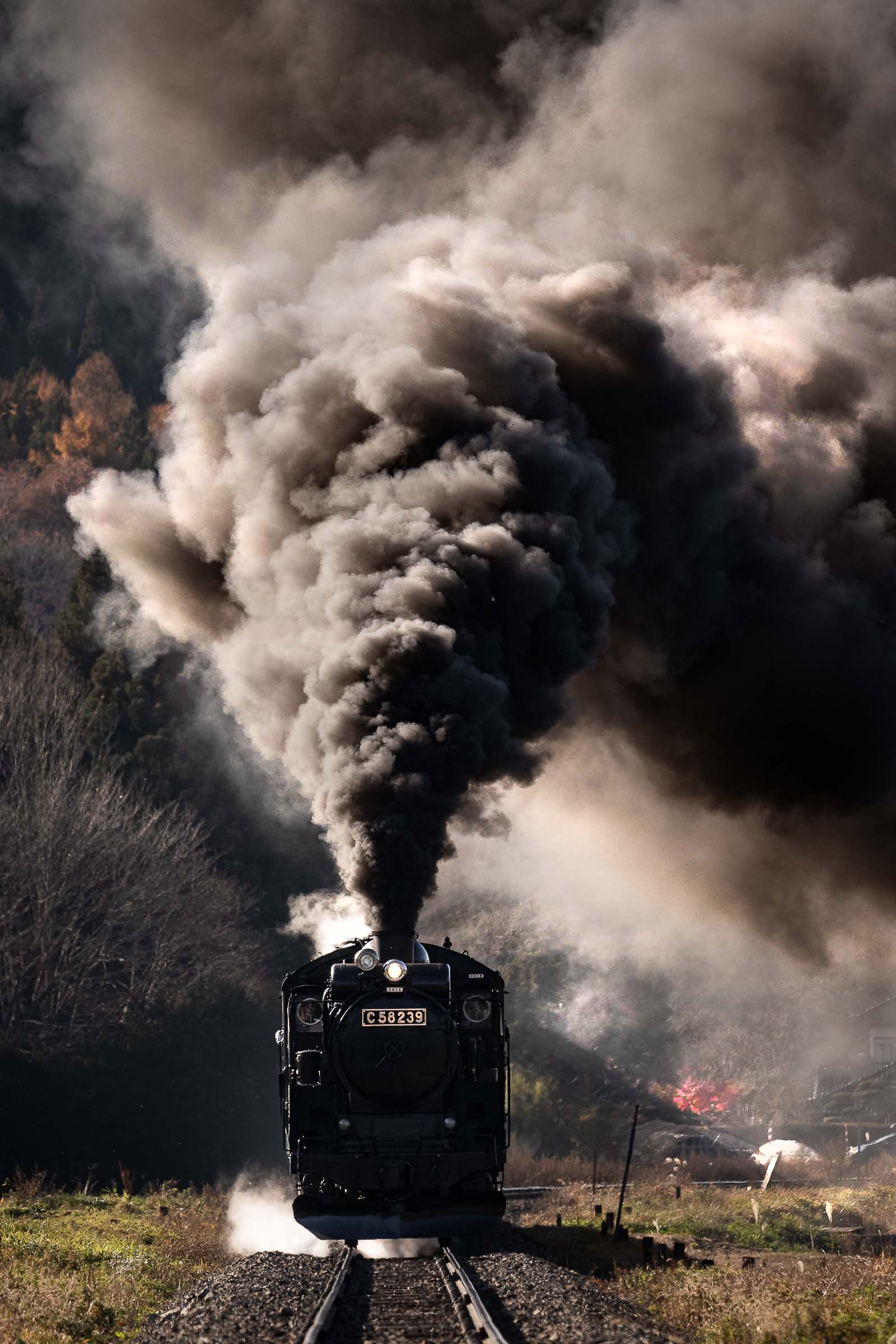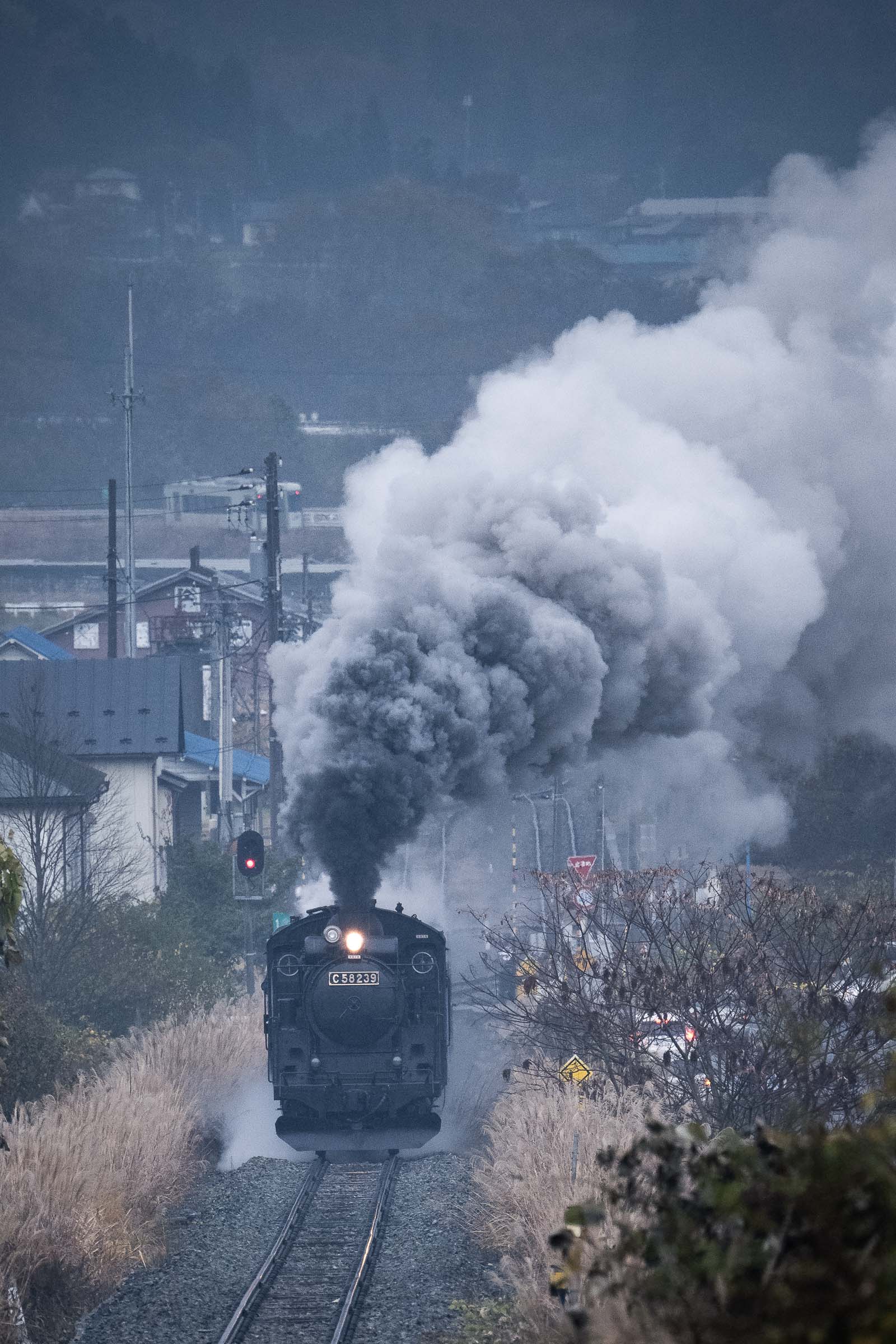 SL銀河の客車はキハ141系改造車(PDC)であり、動力をもった気動車である。大きな役割の一つとして、SLの負担軽減のための急勾配区間での後押しがある。トンネルが連続する仙人峠越えの最深部、SLの煙は控えめである。裏方でPDCは力いっぱい押している。