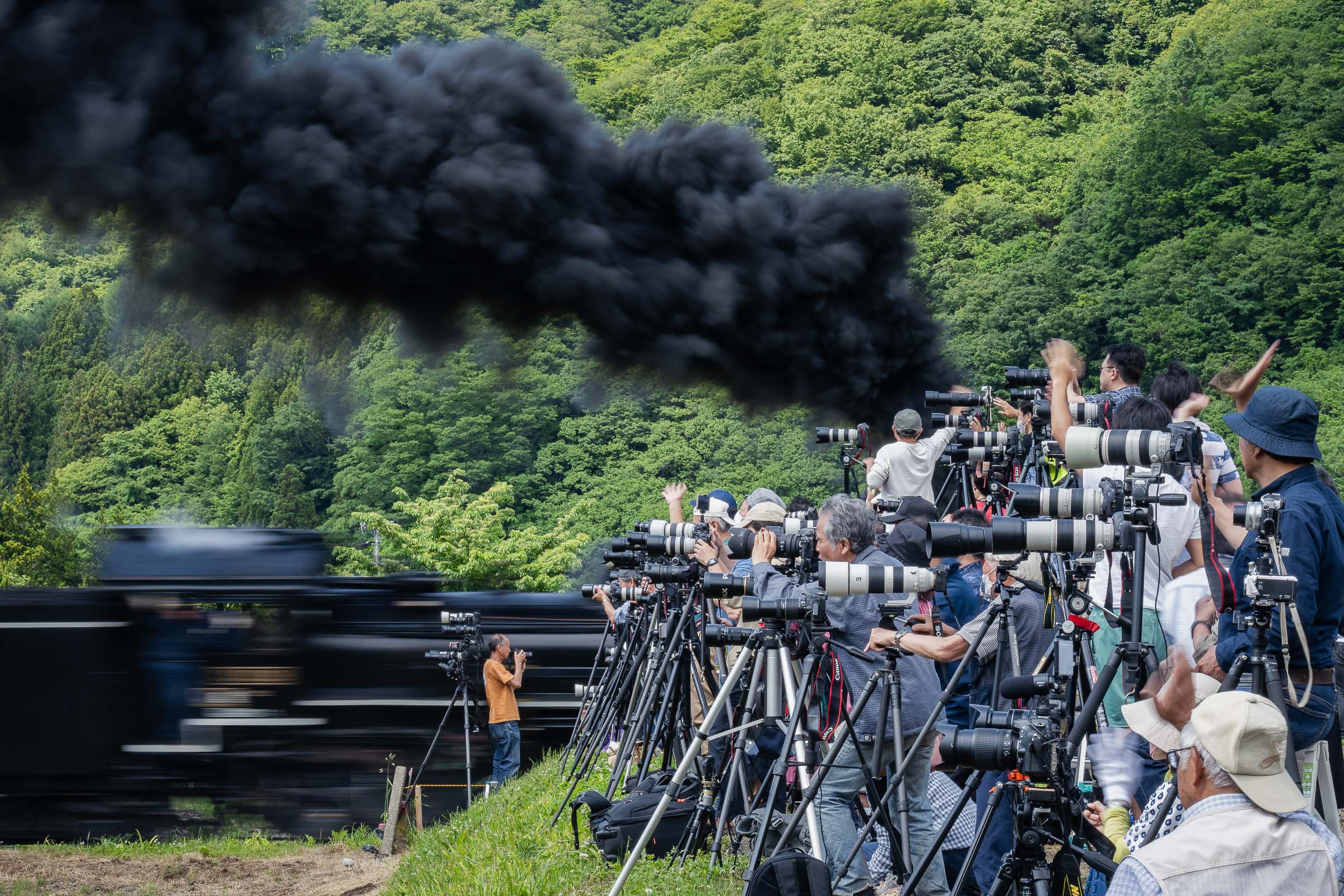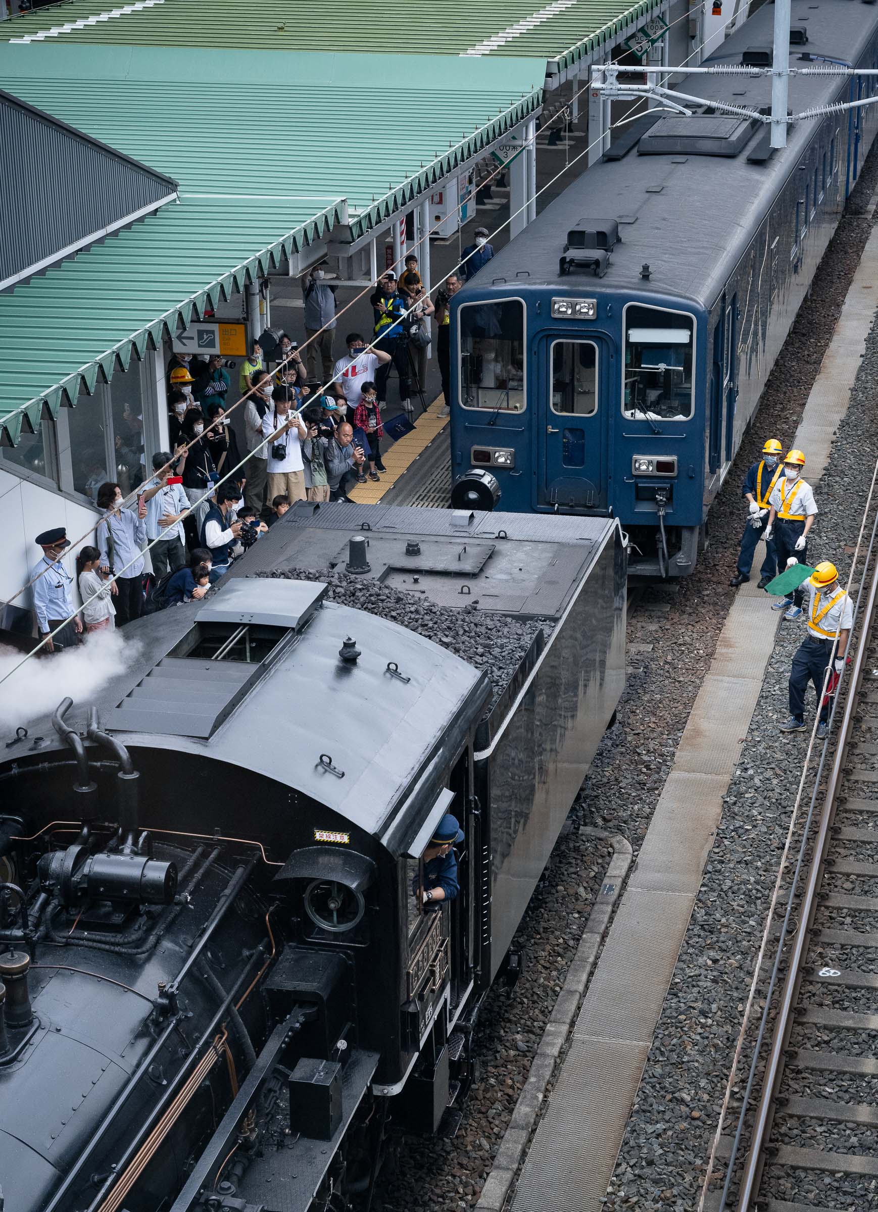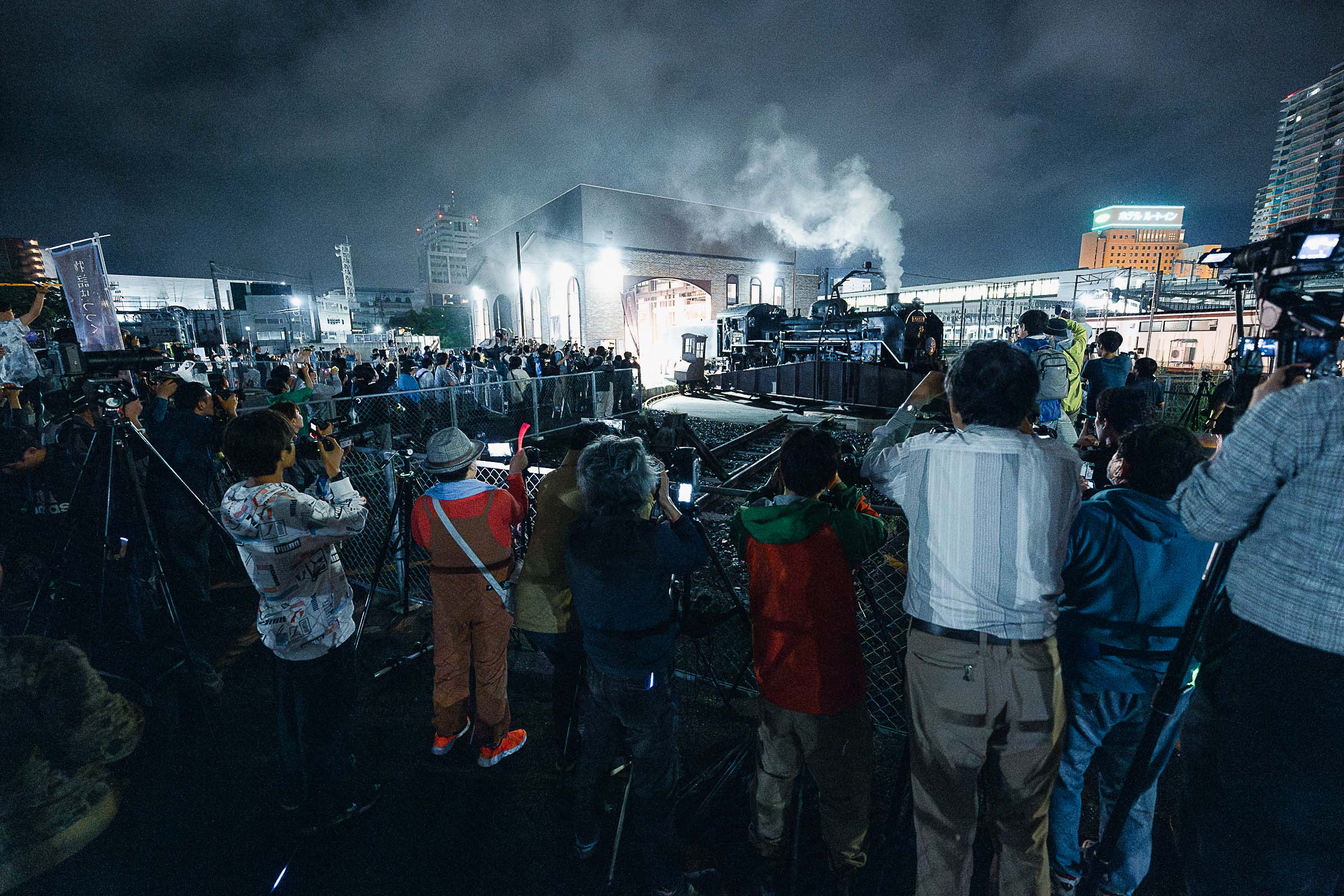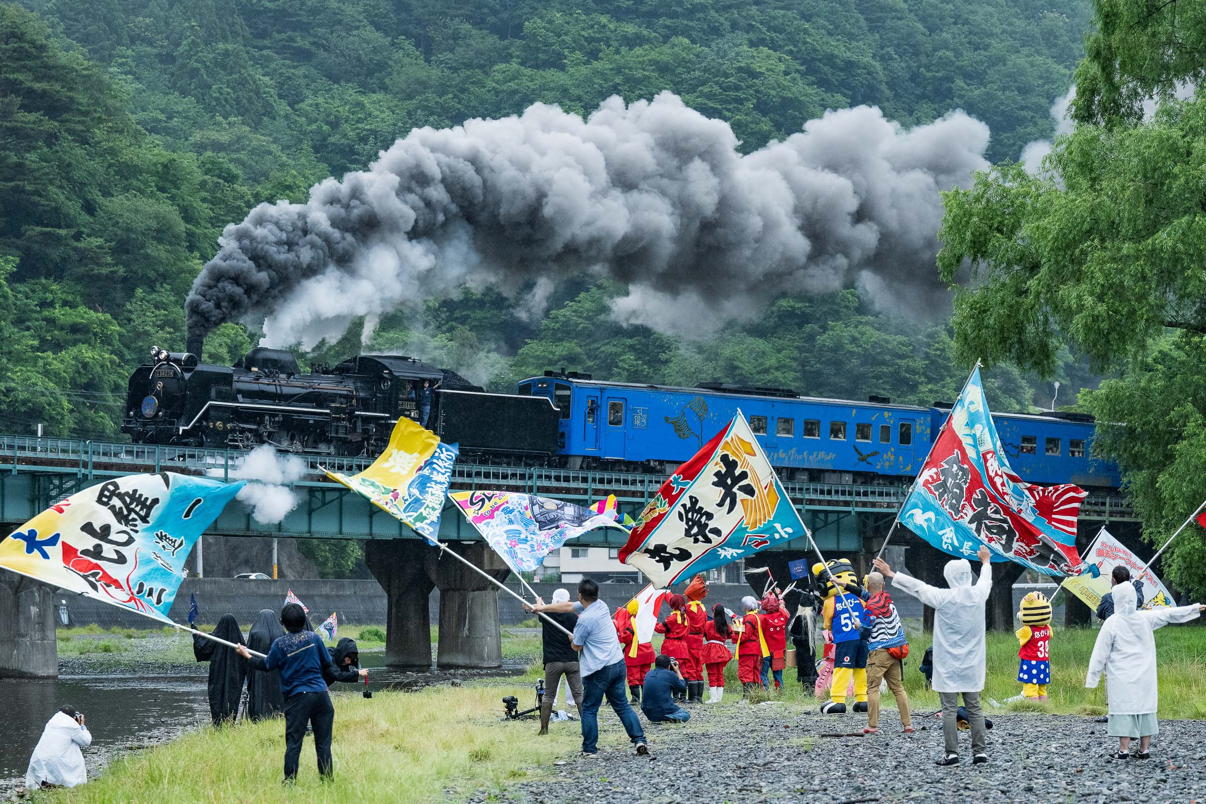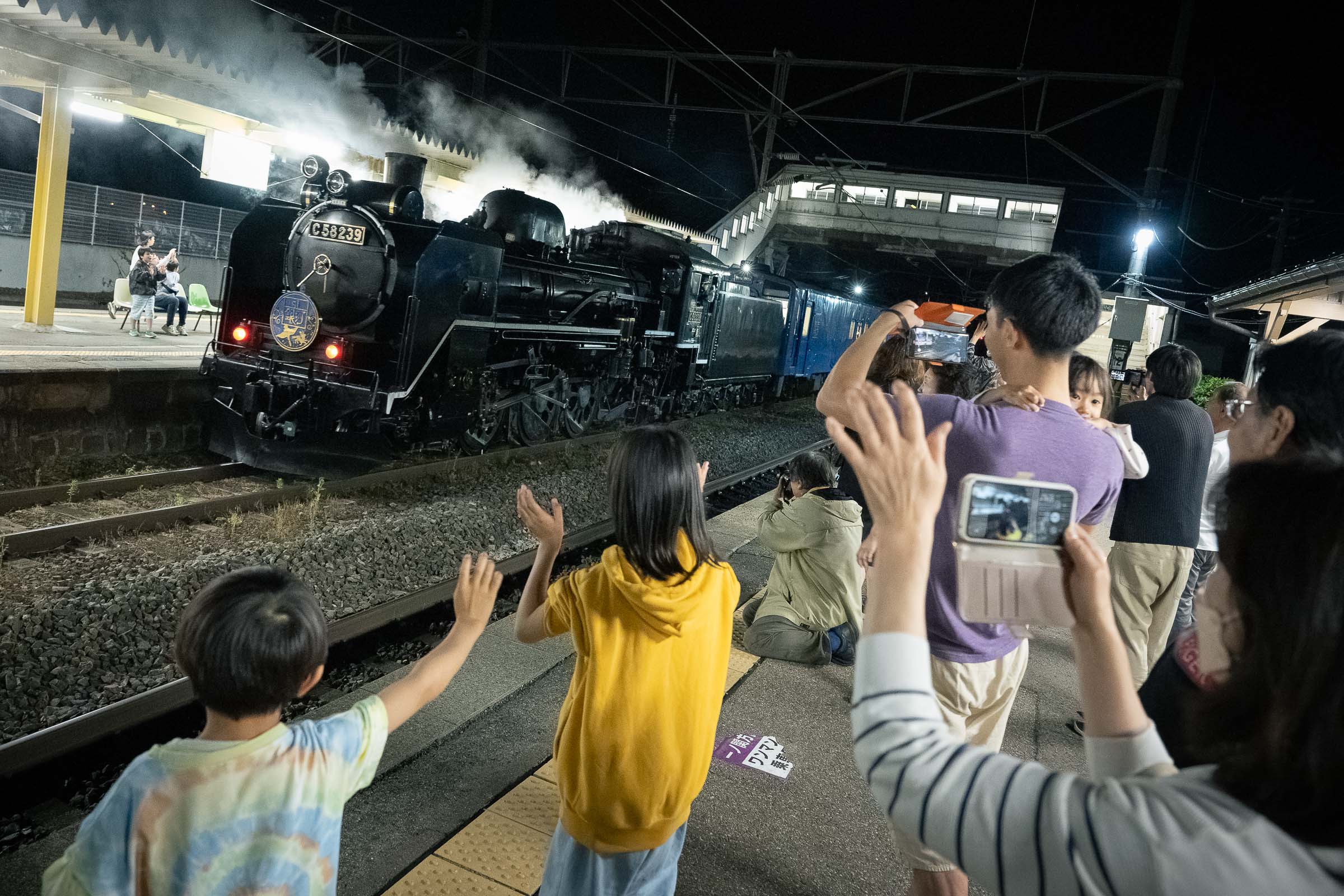 お別れは3分間。無数のペンライトが揺れていた。長い汽笛が2発、めがね橋を去った。ありがとうの声と拍手に見送られて。