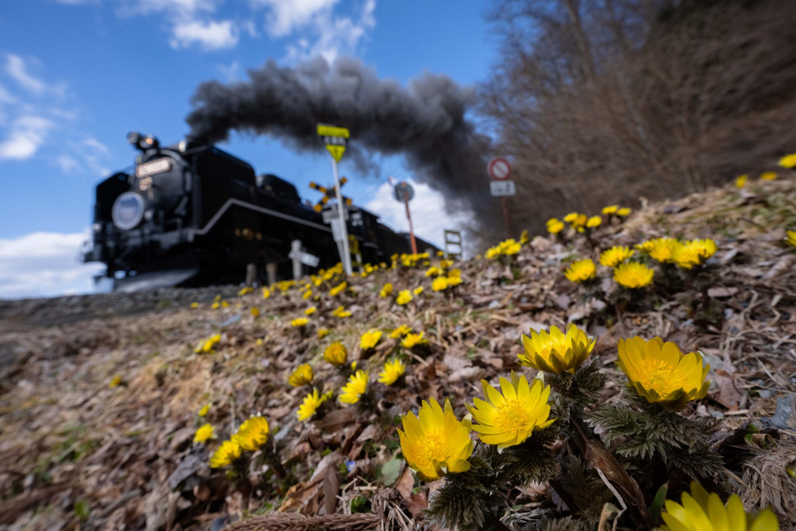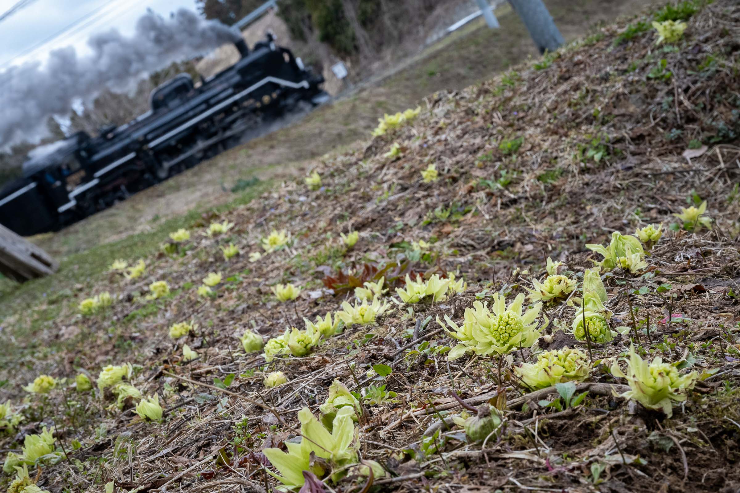 福寿草。汽笛とともに春を告げる。