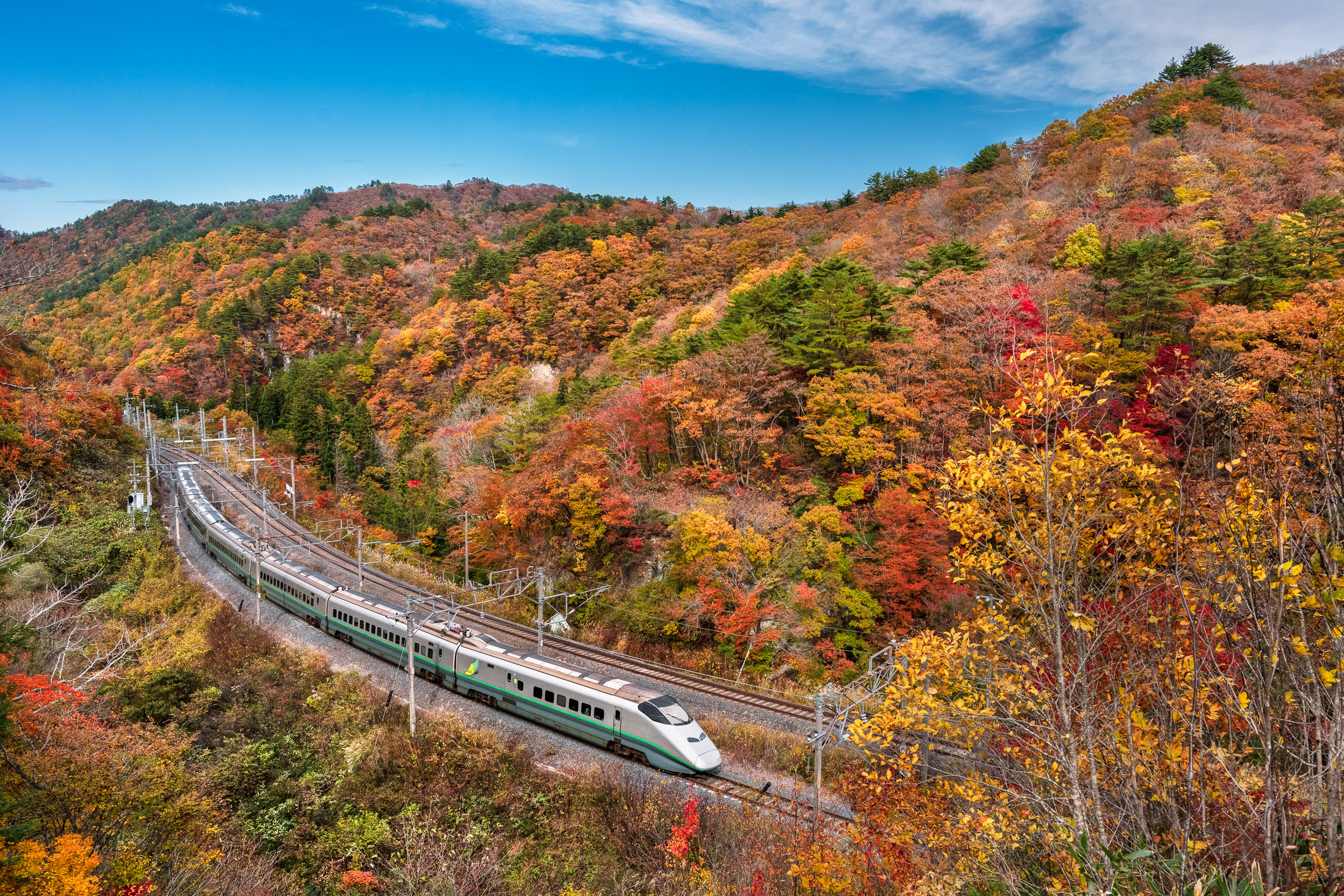 2025.11.2 山形線 峠ー大沢 最近真面目に追っている被写体は、E3系つばさ(銀つば)である。2025年内で、山形新幹線での運行終了が発表されたE3系。 もはや手遅れなのもいいところだが、秋が深まるにつれて撮影に通う頻度が増し、最近の頭の中は銀つばのことでいっぱいだ。この日は紅葉を狙い、峠駅に向かった。板谷峠で最初に色づく峠駅周辺の紅葉はいまがまさに盛り。 今年は比較的当たり年のようで、山全体が息を呑むほどの色に包まれていた。偶然にも銀つばのスペシャリスト御一行に出会い、そのまま一緒にお立ち台へ。 “お立ち台”と言っても人の姿はあるはずもなく、いるとすれば森のクマさんくらいかと心配していたが、幸い出くわすことはなかった。木々のかからないピンポイントの立ち位置にカメラを構え、本番を待つ。 背景には青空が広がるものの、薄日が差したり引っ込んだりと気まぐれな天気にヤキモキ。 少しでも光線が差せば、紅葉の色は映えるはず。通過直前、おまじないの歌に祈りを込めているとわずかに露出が回復。 間もなく銀つばは、錦秋の峠を軽やかな足取りで駆け下っていった。 2025年11月12日 公開 コメントはこちらのフォームからお願いします。https://docs.google.com/forms/d/e/1FAIpQLSeXKZciUensfGALbPszYFnM1y8MZRxsLKzDB5UOWiowgDPi0g/viewform?usp=publish-editor ワンショットに戻るフロントページに戻る