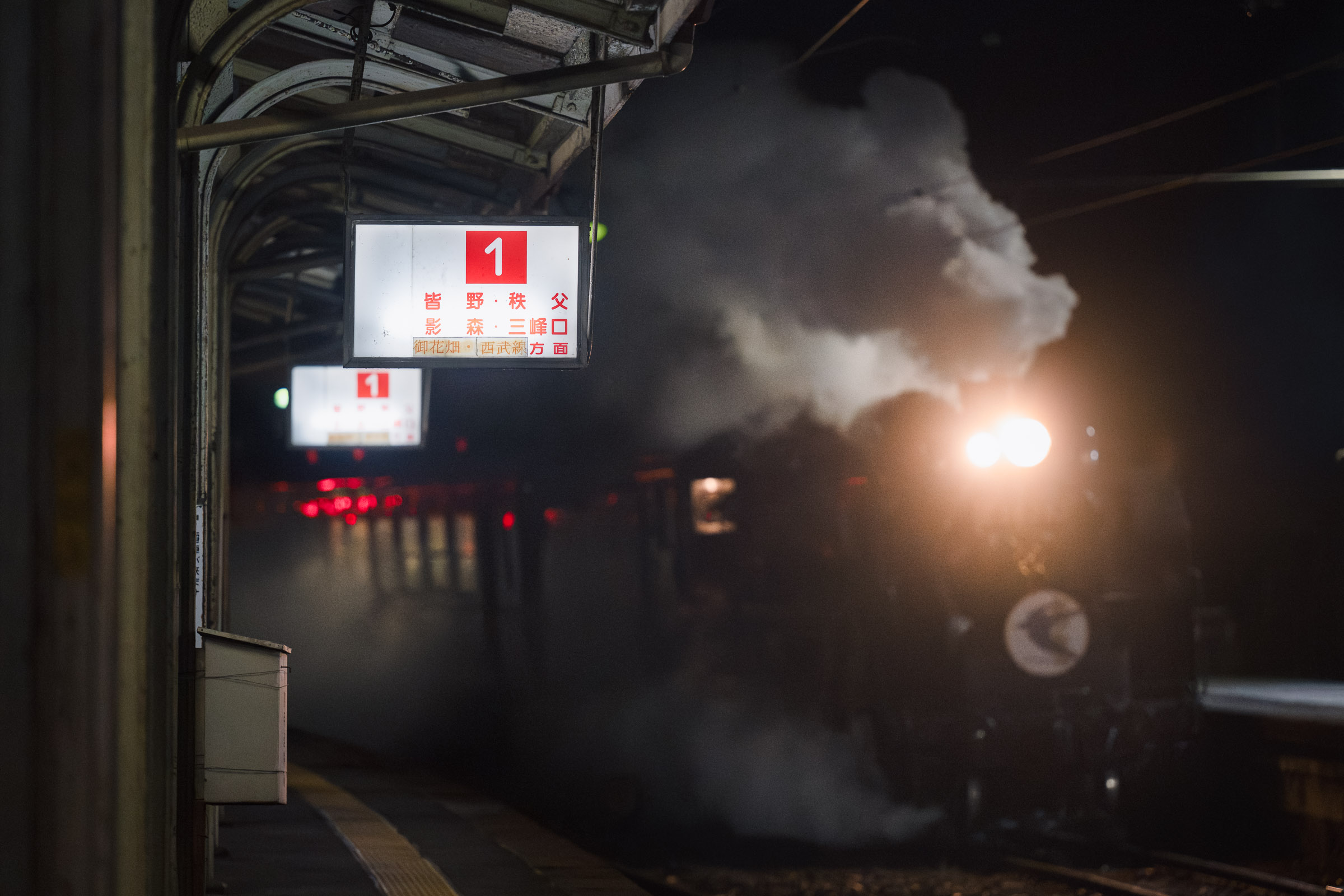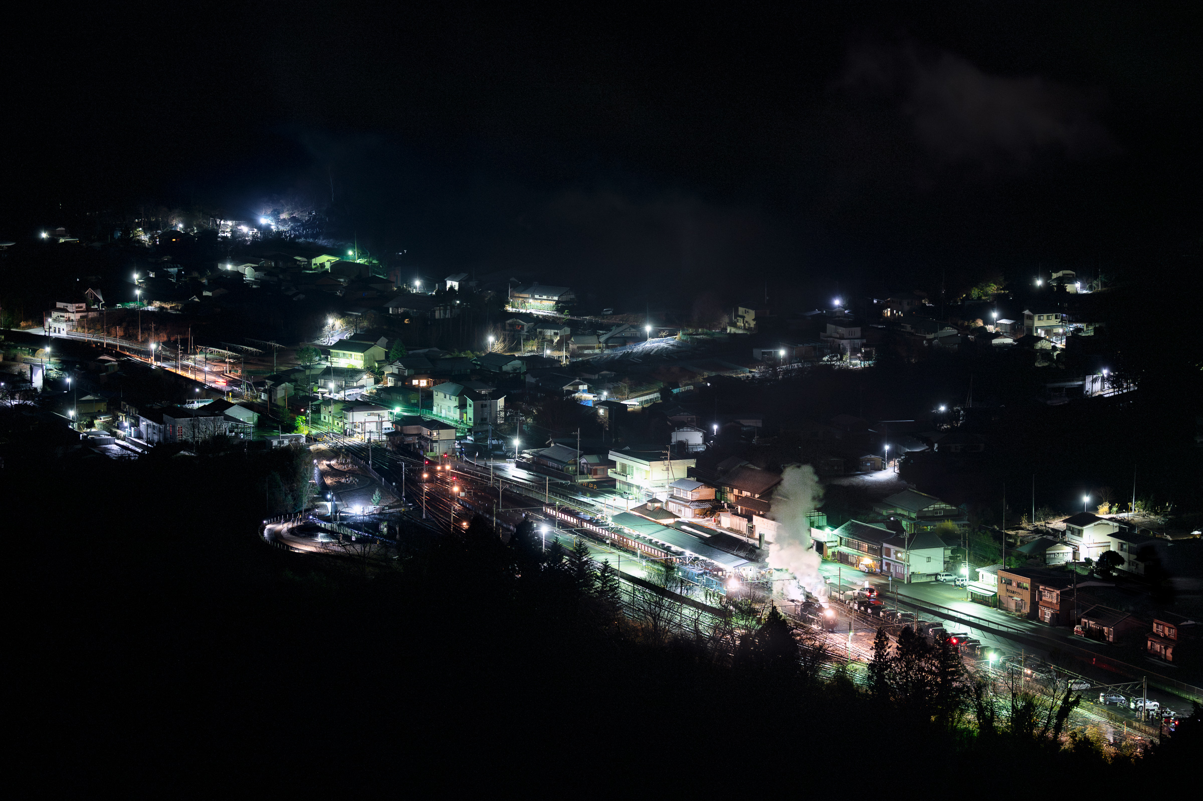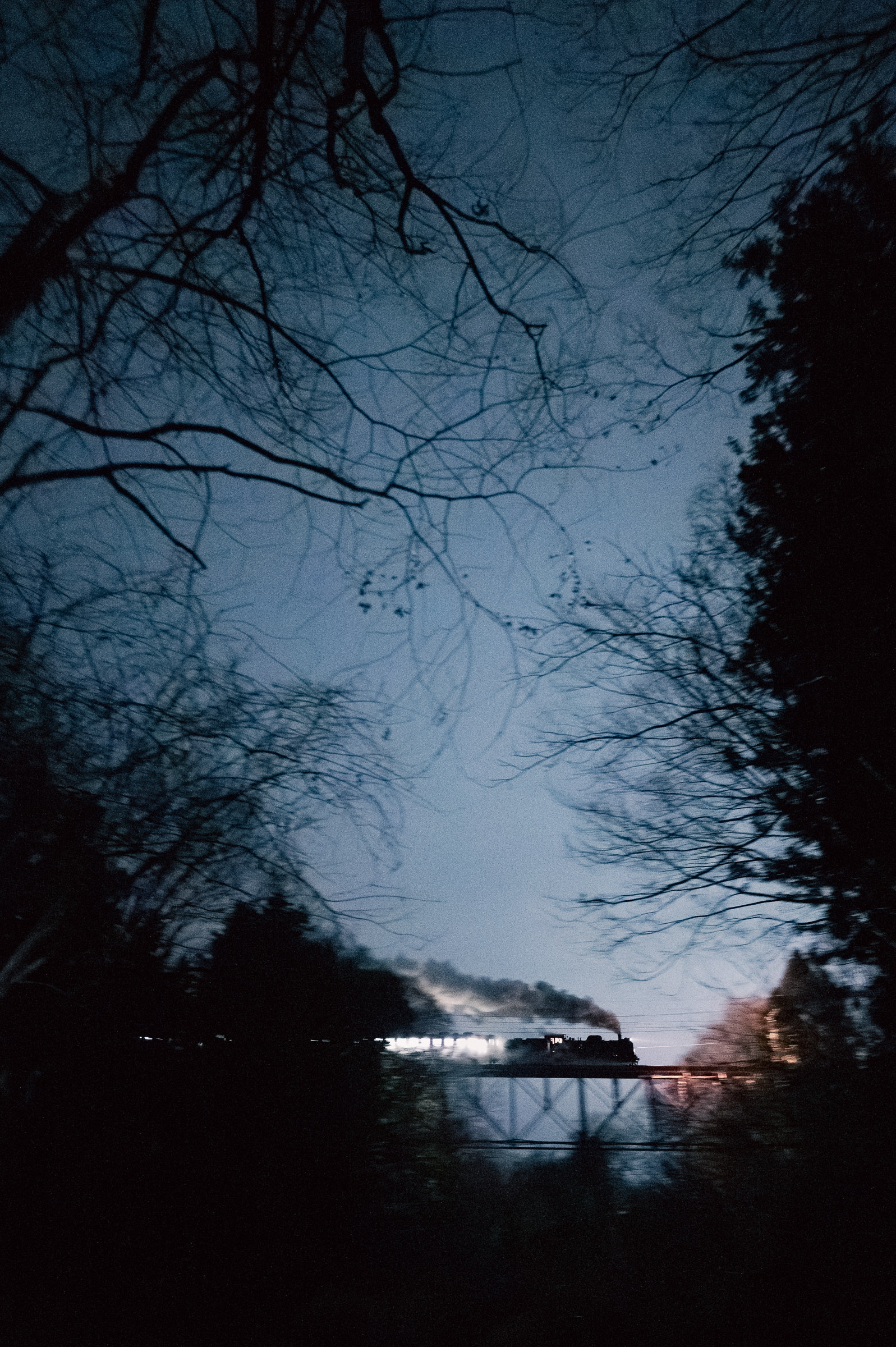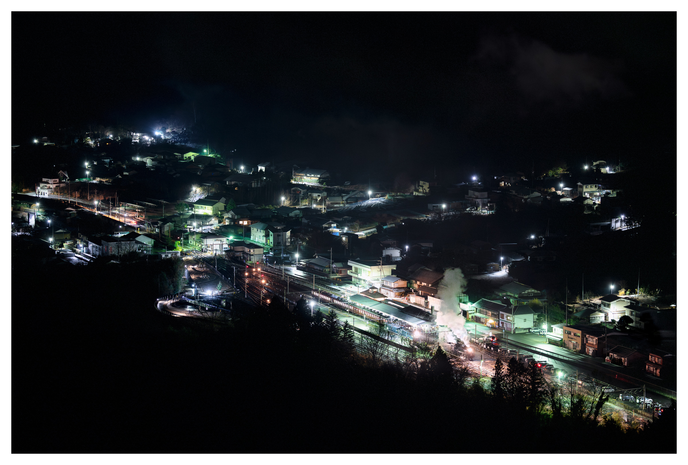 2025年12月13日から14日にかけて、SL夜行急行「第51三峰号」が運転された。c58 363による終夜運転で、熊谷~三峰口~熊谷を往復する行程である。2024年3月に秩父鉄道で初めてのSL終夜運転が行われて以来、今回が2回目の実現となった。前回の撮影が非常に満足のいく内容だったこともあり、今回も参戦を決めた。辛くも楽しい、夜通しの追っかけが幕を開けた。 撮影日:2025年12月13日~14日枚数:7枚 始まりは広瀬川原から。前照灯が灯り、まもなく出発。 広瀬川原で出区を見送ると、いつの間にか雪が降ってきた。往路一発目はシルエットポイントへ。夜を駆ける、ロマンチックな旅の始まり。 白いドレンのベールが晴れた直後に待っていた光景。絶妙なタイミングで現れた対向車が、暗闇に一瞬のドラマを描いた。 少し省略して三峰口へ。残念ながら期待していた雪景色は見られず、一部の路面が雪でつるつるになっているだけだった。夜鳴きそばを啜った後は、急ぎ足で登山して駅を俯瞰。真横にデキ重連を並べた撮影会を終えると、入換が始まった。 冬木立のシルエットが浮かぶ。 楽しい一夜をありがとう。 楽しい一夜をありがとう。 2025年12月23日 公開 コメントはこちらのフォームからお願いします。https://docs.google.com/forms/d/e/1FAIpQLSf4bimt44BeCCxAbnUeGZaibJmsrqBygI9U_ExoezkNjNEwWg/viewform?usp=publish-editor ワンショットに戻るフロントページに戻る